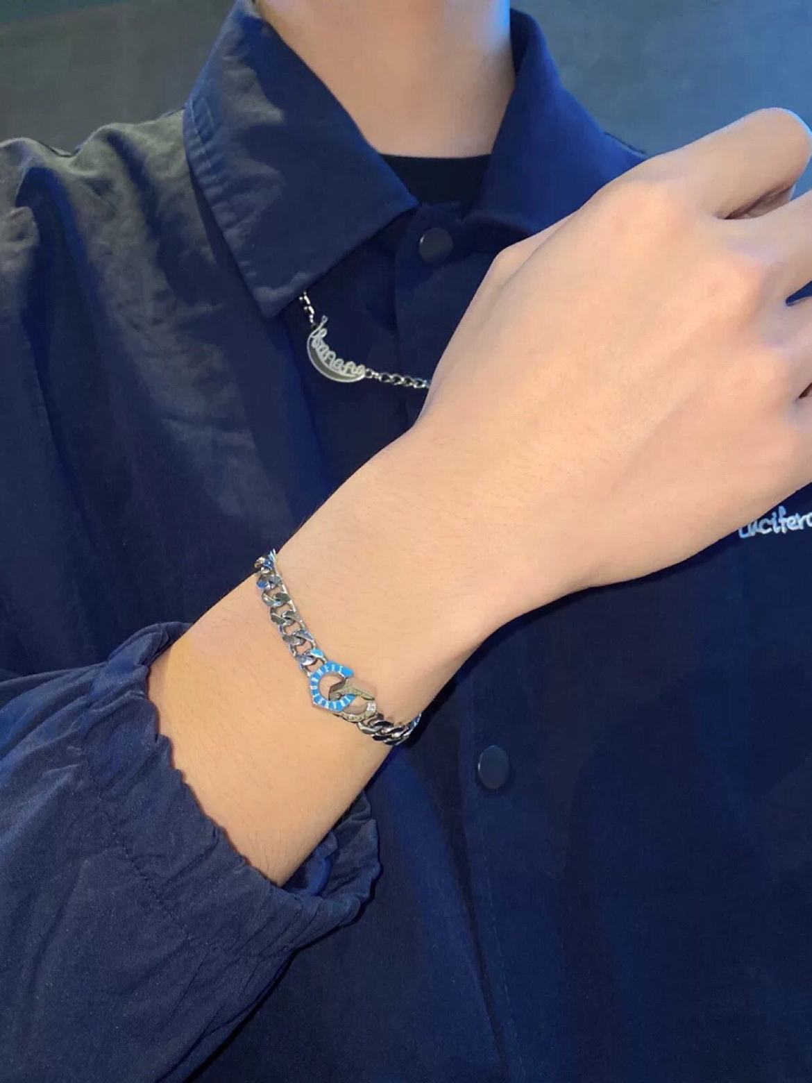 潮色绘变形金刚联名款古巴手链,酷劲十足,有光泽感和分量感。链扣是新颖的螺母扣,戴上尺寸刚好合适男生的手。上手真的很百搭,不会显得很单调。搭配最简单的衬衫就很潮了。也适合男女生日常搭配,款式百搭,通勤可戴。 (图片来自网络,侵删)