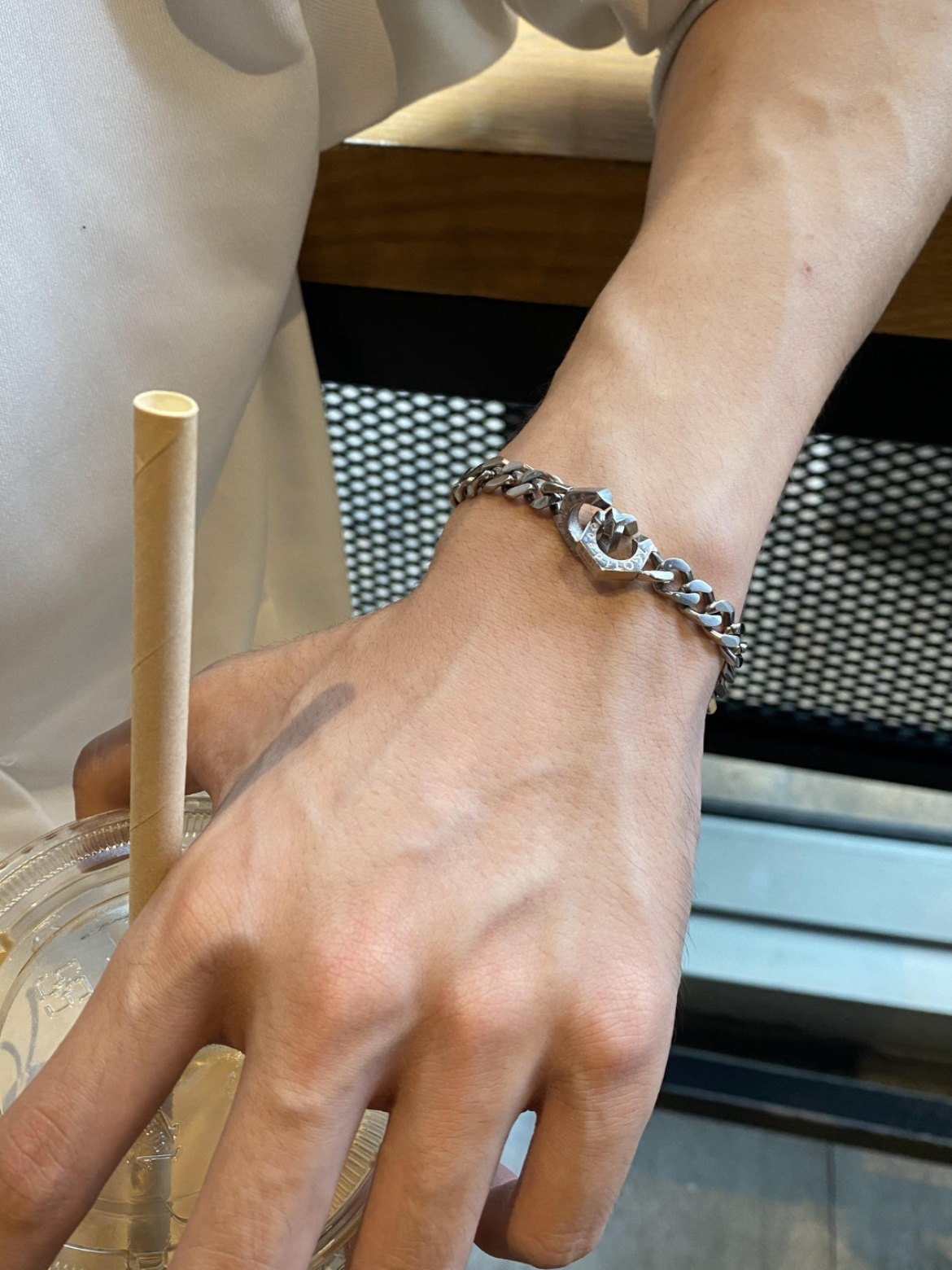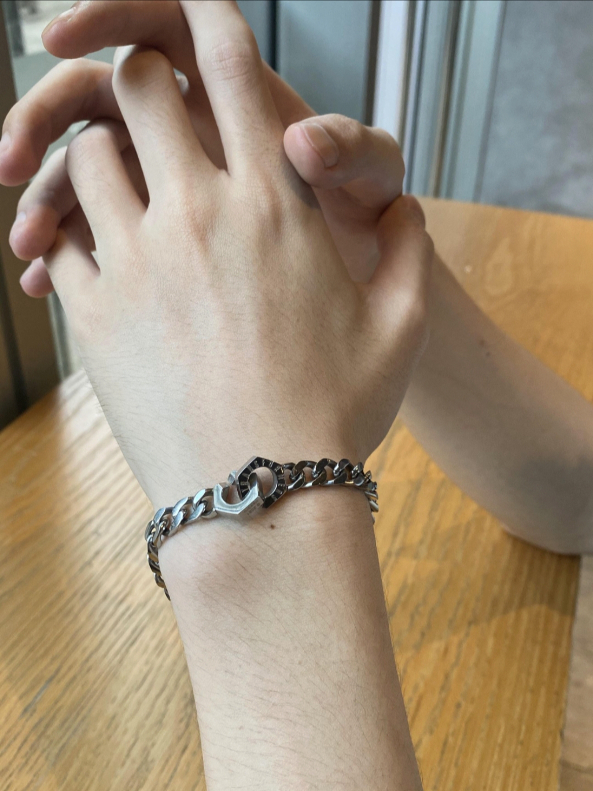这款古巴手链适合不喜欢太过累赘的男生,毕竟这是潮流百搭的一款设计,极简工业感搭配复古风,搭配戒指和腕表,帅气感爆棚。当配饰成为你个人特征的一种体现的时候,就是将潮流转化为独特的个人符号了。快来创造属于自己的搭配风格吧! (图片来自网络,侵删)