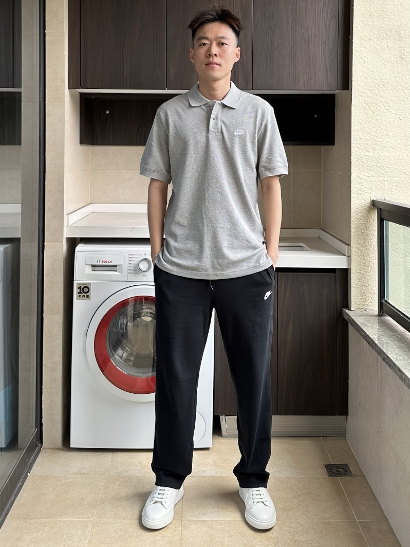 如图所示:推荐实用日常的一身🐾 黑灰两色Polo衫,百搭万能,适用任何场景 直筒休闲卫裤,想怎么搭配就怎么搭配 不挑脚型,棉质透气又舒服🌿 衣服:175/125 图上穿的S(一点偏大) 裤子:175/125 图上穿的M🪸