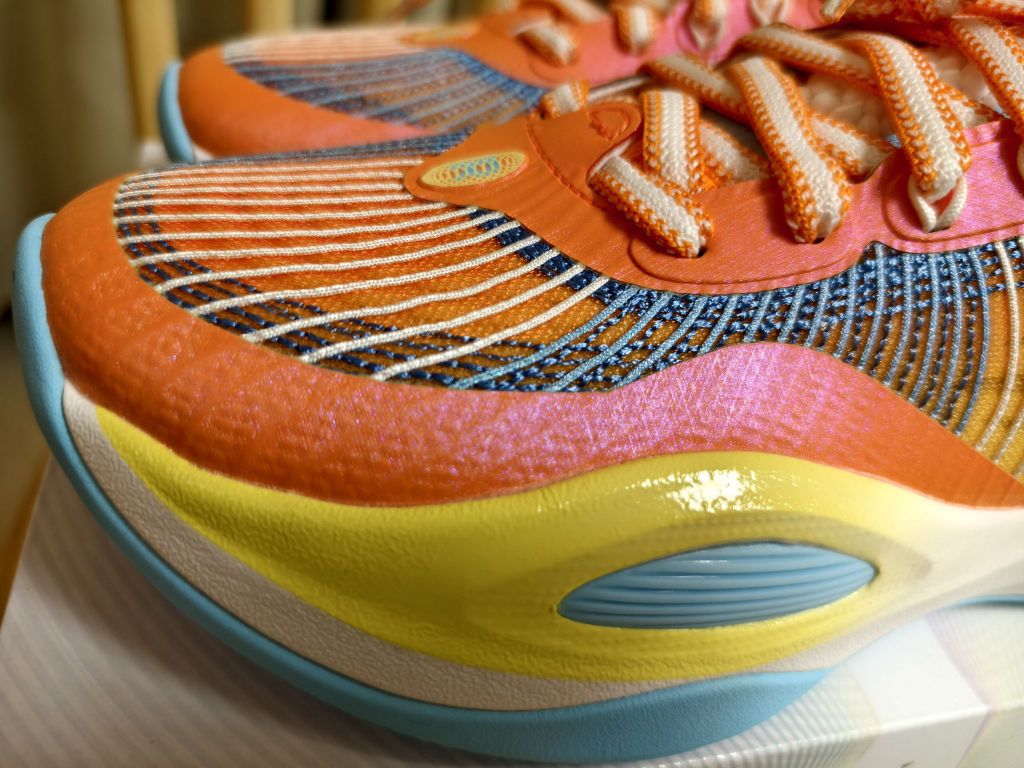 配色给鞋子的外观加成不少,确实太好看了,尼龙抗扭片让鞋子有了较好的抗形变和支撑,中底回弹,鞋底防滑很好但可能没有那么耐磨,鞋面强度好,后跟有防掉跟设计,有内靴设计包裹性很好,但高脚背和宽脚就多加考虑了,除非买大一码,不然会比较勒了,侧边上包的防侧翻同样是制约宽脚的地方,防侧翻效果很好,建议鞋楦再加宽点吧