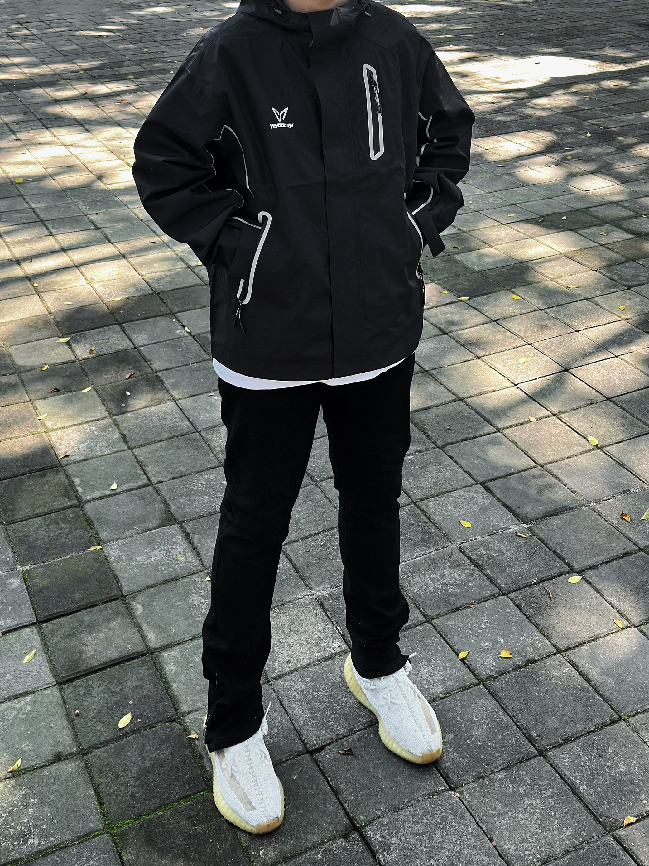 冲锋衣是少见的鲜明配色,加上连帽设计,上身清爽好看又利落~这种品味是挡不住的,健身、户外运动休闲都好穿的,早晚转凉都需要一件。大大的落肩+阔身版型裁剪,没有什么限制,很潇洒。面料防风防水,下小雨躲一下没啥问题,上身还很透气,功能性也是没谁了,柔软又挺括,造型感十足。 (图片来自网络,侵删)