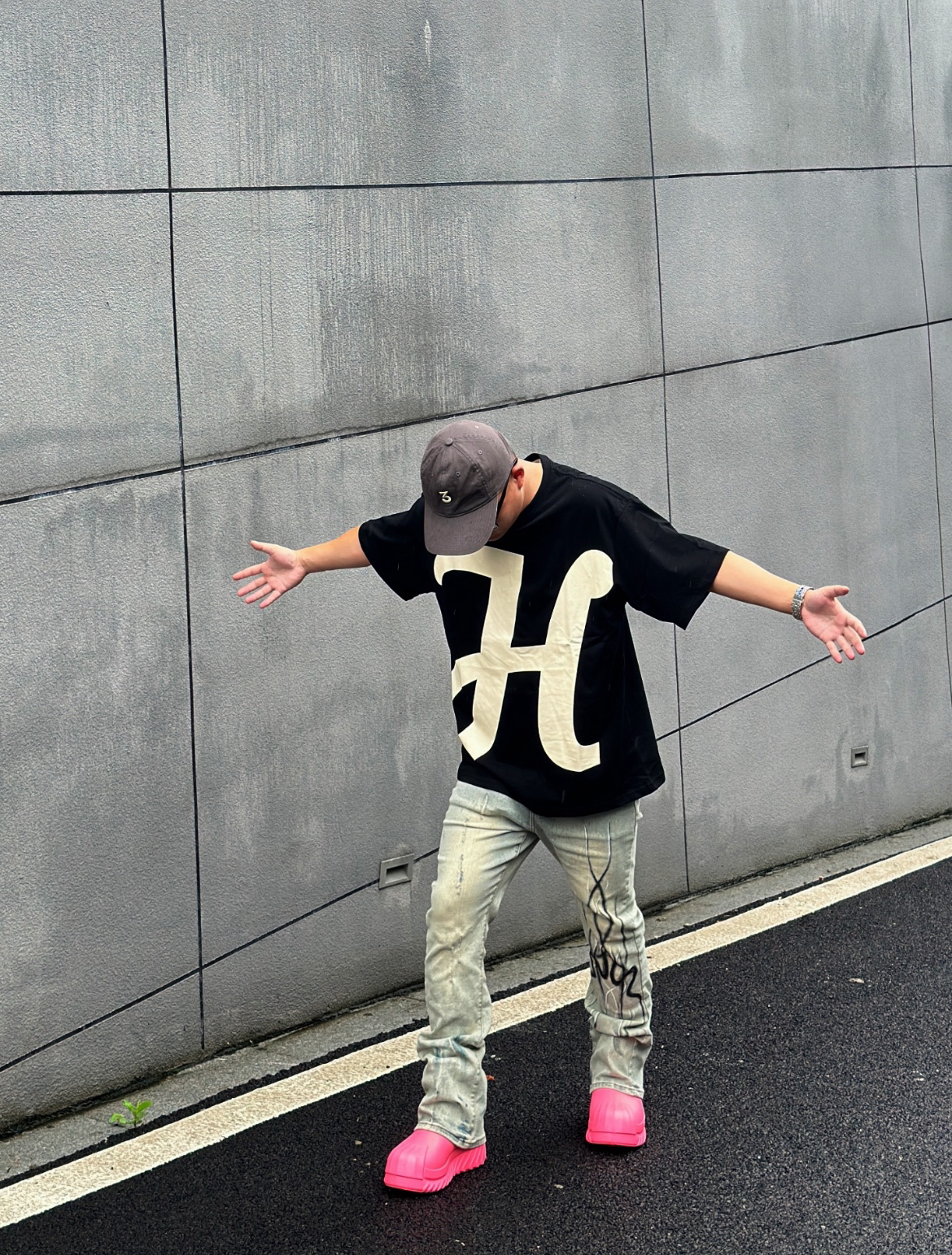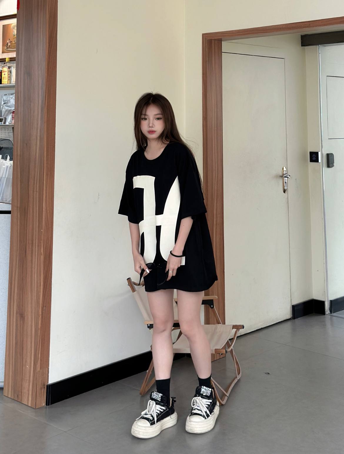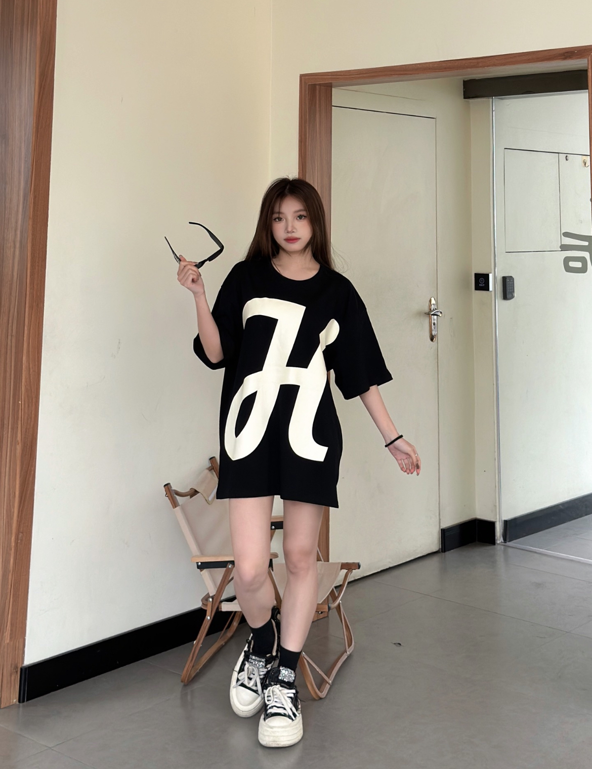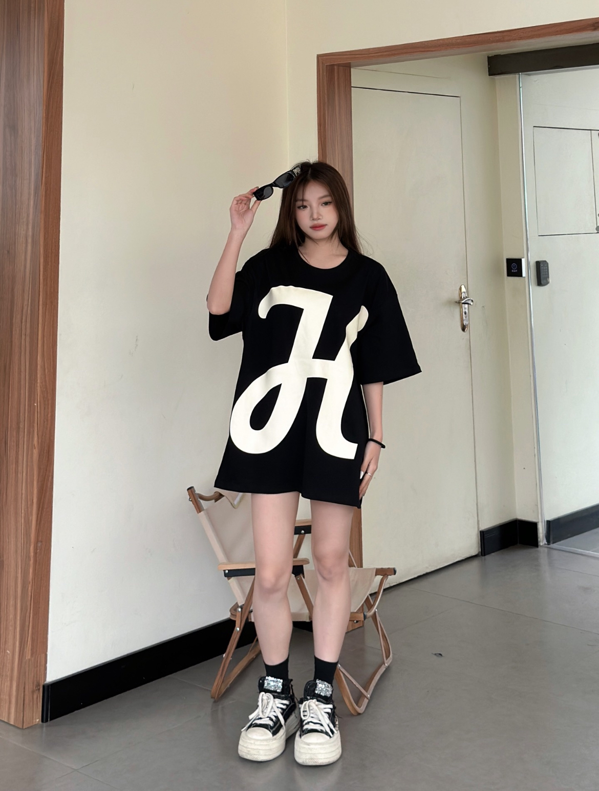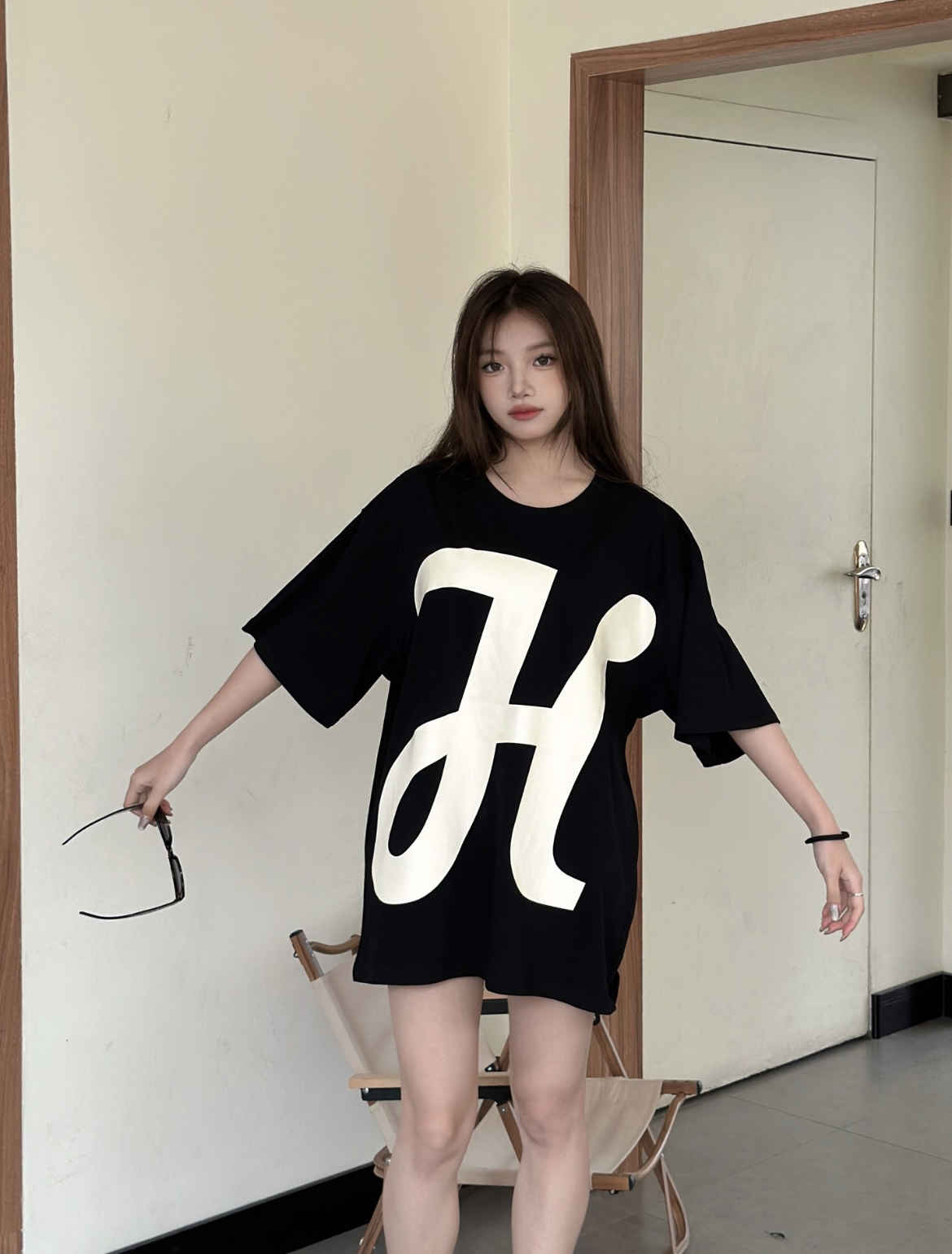 这款大H字体印花采用的是纯棉的材质,百搭透气又休闲的感觉,黑色底色搭配上大写白色H简直就是太赞啦! 印花个性十足。棉的材质穿起来很舒服,宽松的版型,尽显休闲简约风!