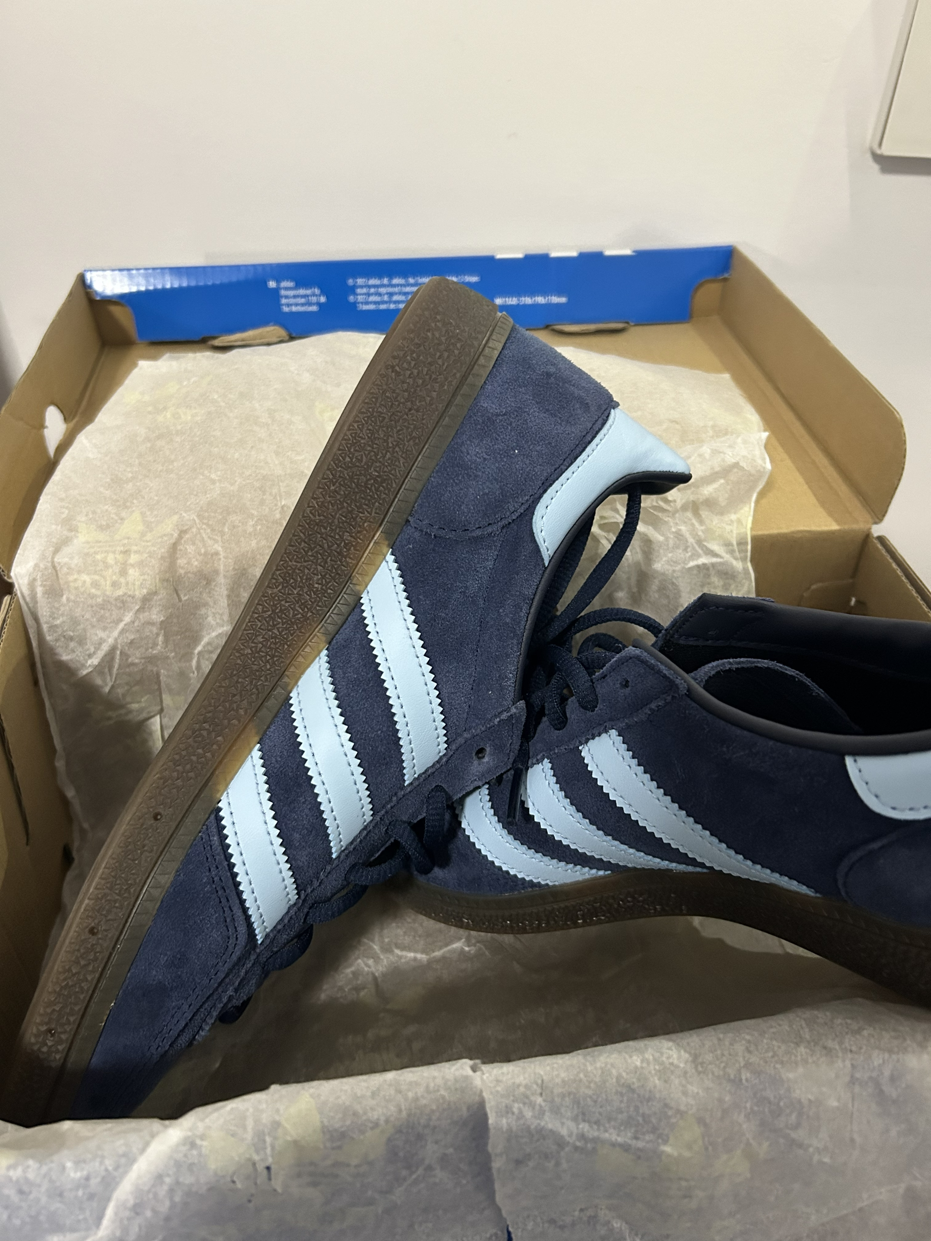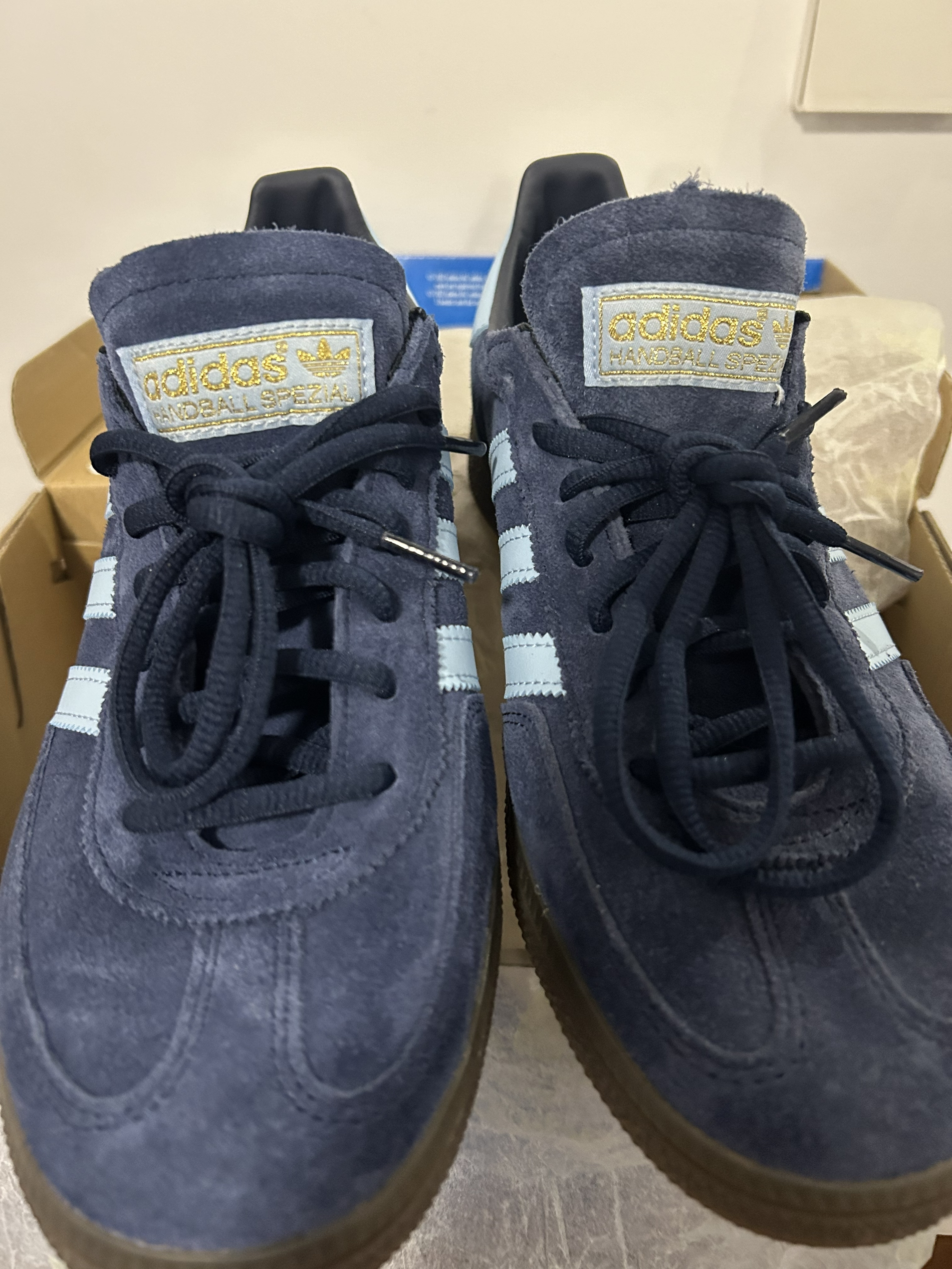 本篇笔记关联了【王安宇同款】 adidas Originals Handball Spezial 薄底鞋 T头鞋 德训鞋 板鞋 简约百搭复古轻便防滑耐磨 藏蓝/浅蓝等商品,为用户提供真实的使用体验和购买参考。
