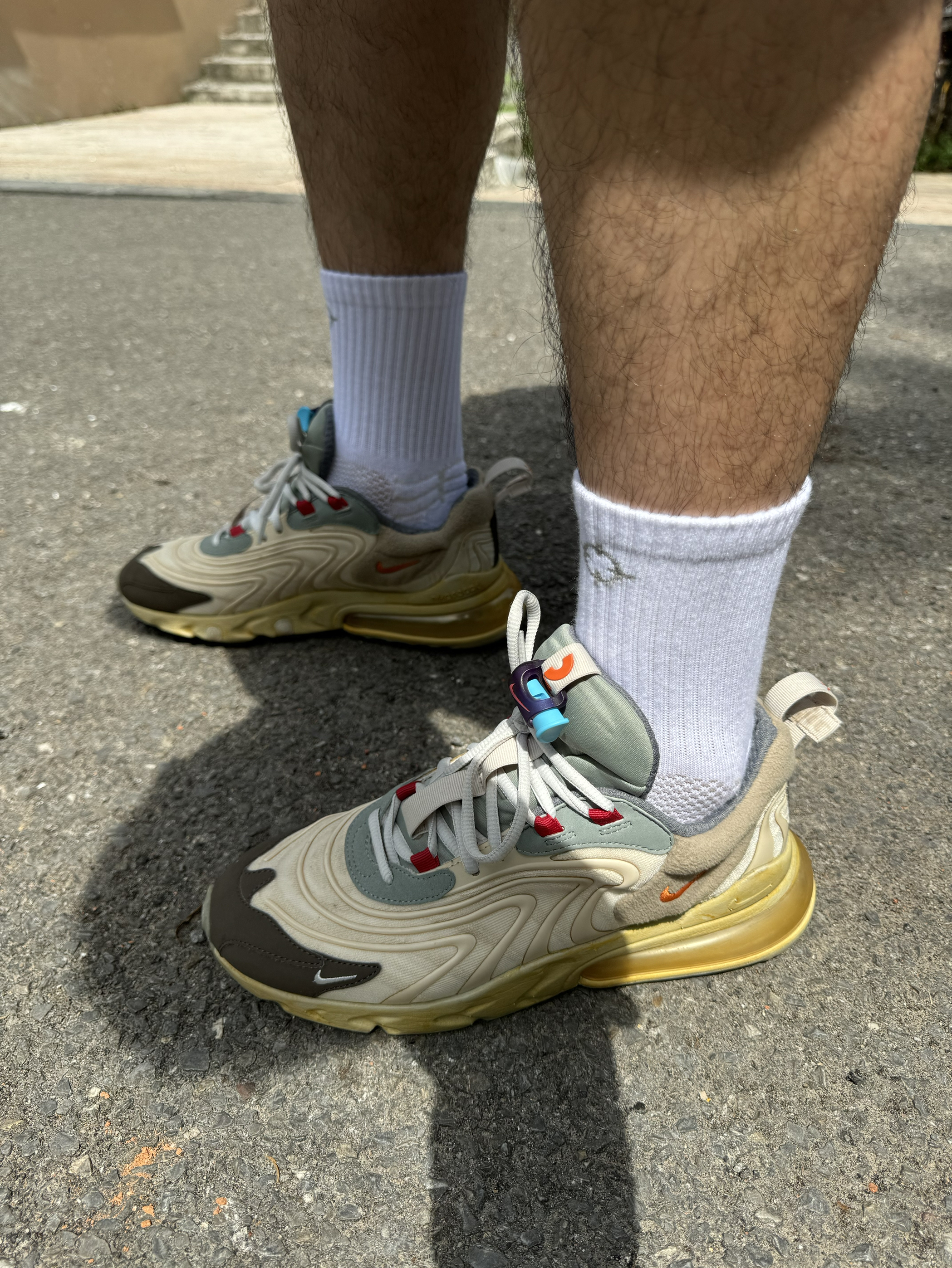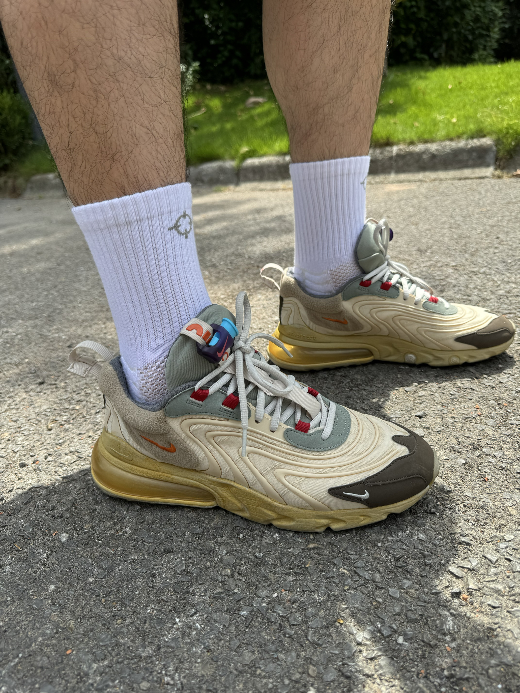 增高最少4厘米,前掌react,后掌max270,颜值和脚感并存。无论是日常穿搭还是打完球后换上放松双脚都不错。而且还是travis scott联名款上街撞鞋几率低,有预算的朋友还是可以考虑一下。