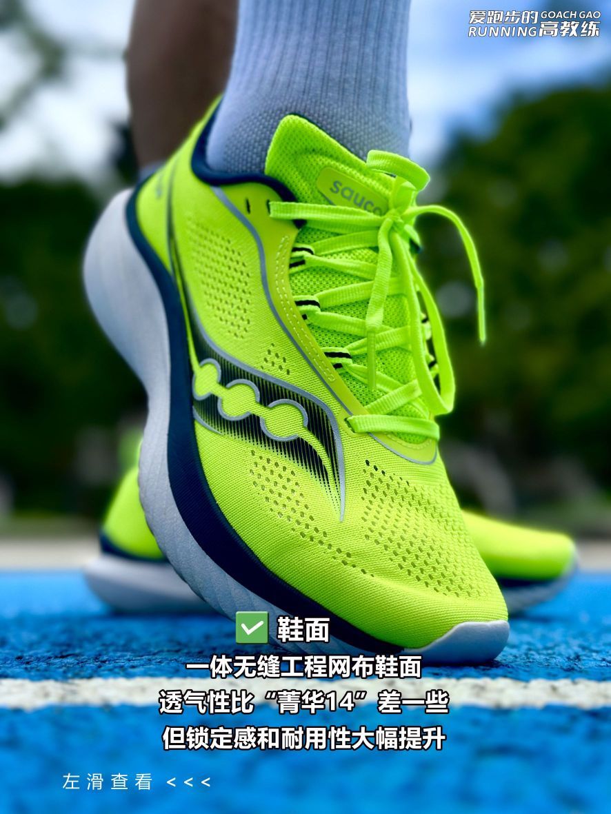 本篇笔记关联了Saucony/索康尼 Kinvara 15 菁华 缓震透气 回弹 网布 体考 训练 轻便 竞速 马拉松薄底 支撑 包裹性 跑鞋 荧光绿/兰色等商品,为用户提供真实的使用体验和购买参考。