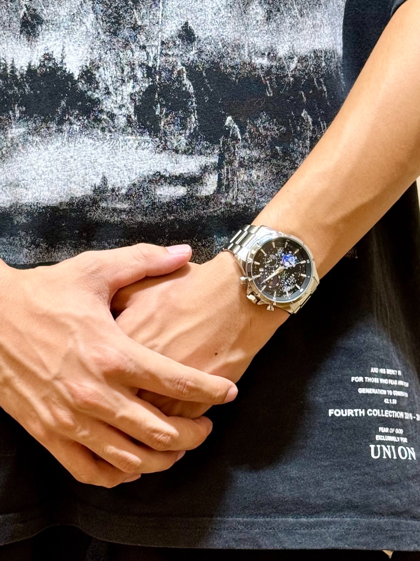 Hello匹斯来啦! 今日分享⌚️尊时星光高颜值腕表 整体的配色设计我超喜欢! 银色➕黑色的表盘设计简约大气很耐看👍 我很喜欢他的表盘设计,设计很惊喜,内部还有繁星点缀,超可! 三眼六针的多功能表盘设计不仅功能性很强而且还很好看🤩 我日常搭配休闲装或正装都很好驾驭住哦~ 喜欢的宝子不要错过哦✨ #出行潮酷的宝藏腕表 #男生必备腕表 #分享高品质男表 #晒晒高级感机械表 #通勤机械腕表 #解锁男士腕...