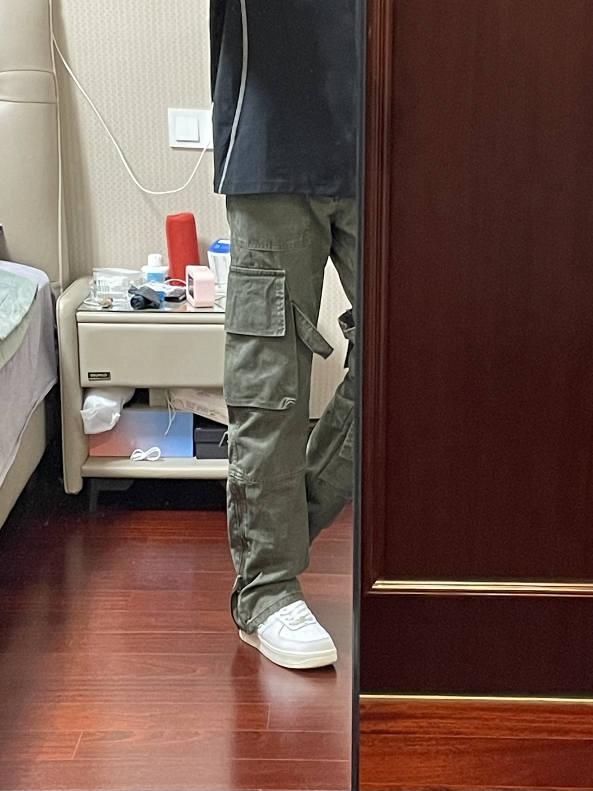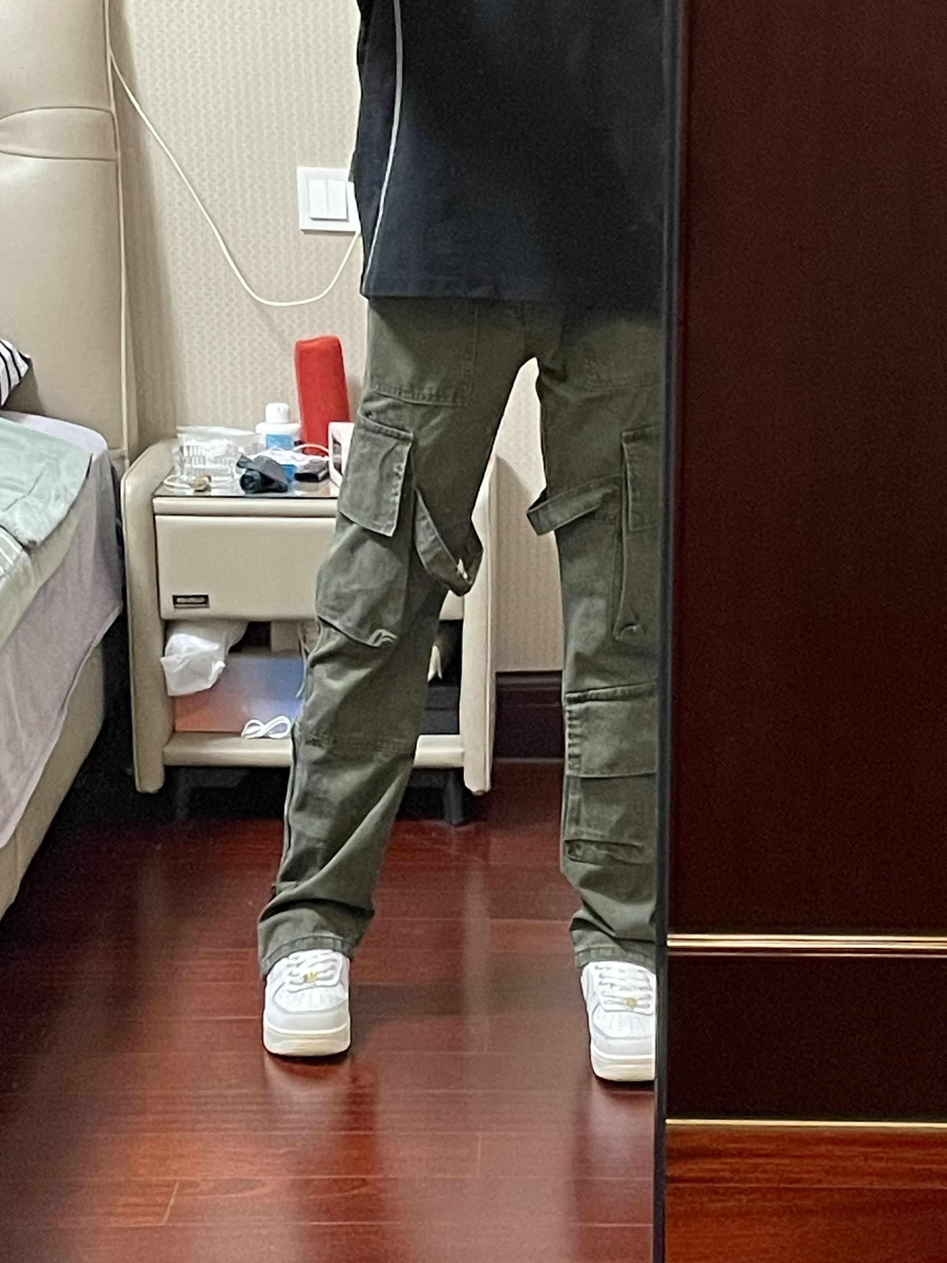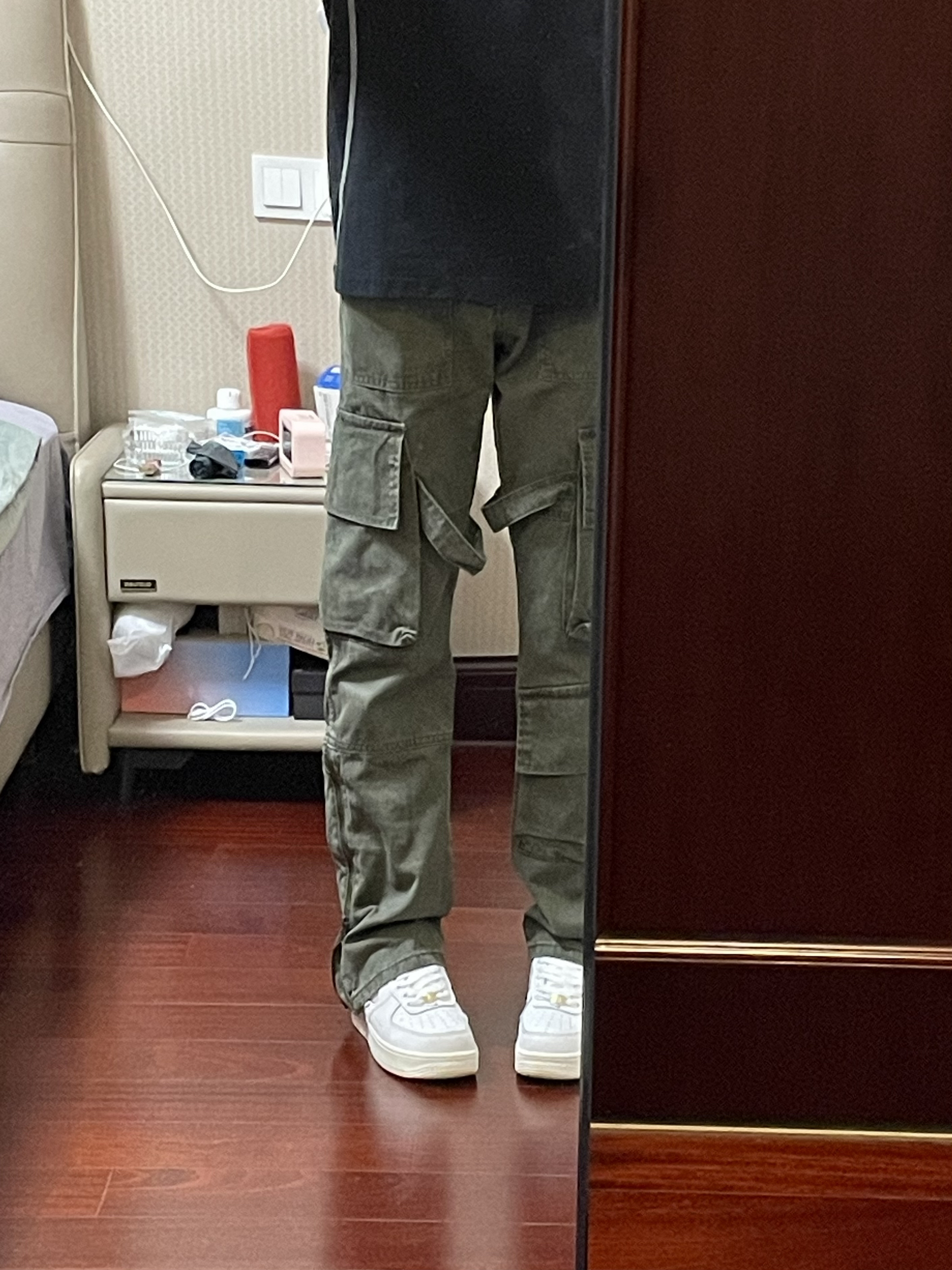 这款军绿色水洗工装裤真的太帅了,裤脚有拉链裤腿内侧还有绑带外加多口袋的设计,我真的爱死这件工装裤了,直筒版型上身效果很好看显高显腿长,微微的修身显瘦,这种款式男女穿拍照都很出片,谁穿谁帅!