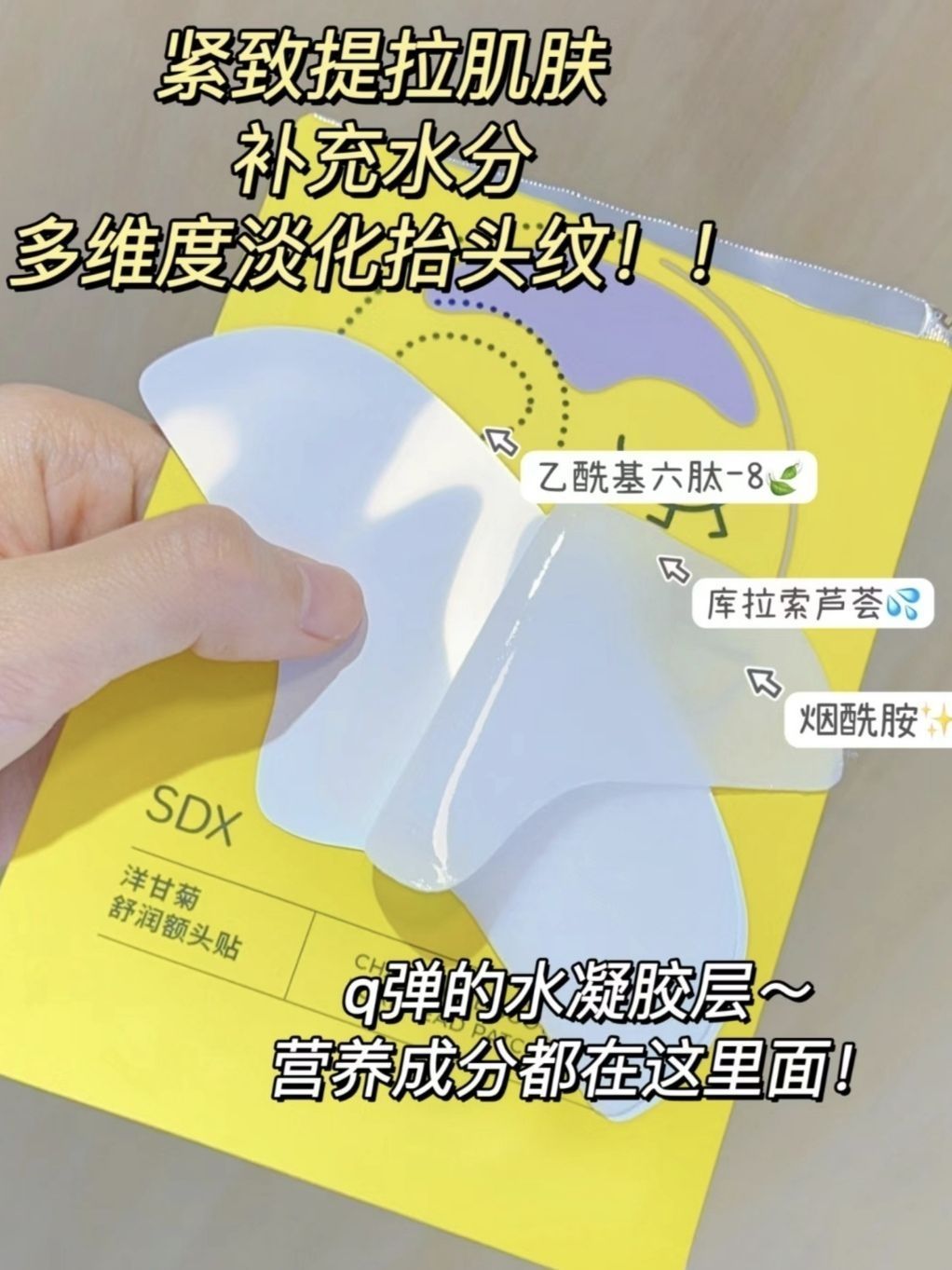 过了25➕真的是个分水岭 尤其男生表情比较用力压力一大容易皱眉 导致抬头纹越来越深 看起来又老又油腻… 真的很影响女神第一眼的印象 不想年纪轻轻被叫大叔的😍 快来试试这个SDX抬头纹贴 额头的专属淡纹面膜不用担心再有抬头纹啦! “对症下药”才能有效淡纹 成分就是它淡纹快准狠的诀窍 ✔️乙酰基六肽-8 ✔️根源淡化抬头纹 ✔️库拉索芦荟 深层补水彭弹额头🌈烟酰胺 提亮额头暗沉 精准对抗额头纹路,半条...
