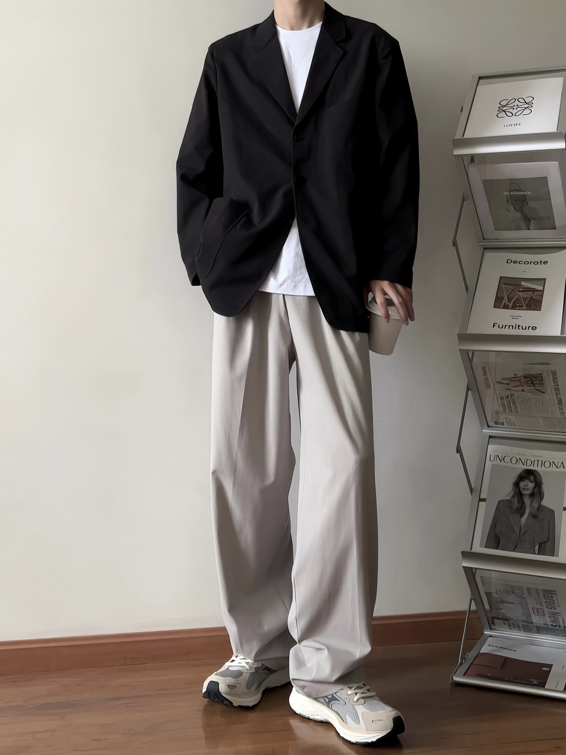 不得不说 深灰休闲西裤确实是夏天通勤神裤诶!! 真的蛮喜欢的 工作穿的也很舒服哈哈 宽松还比较透气 我好喜欢‼️