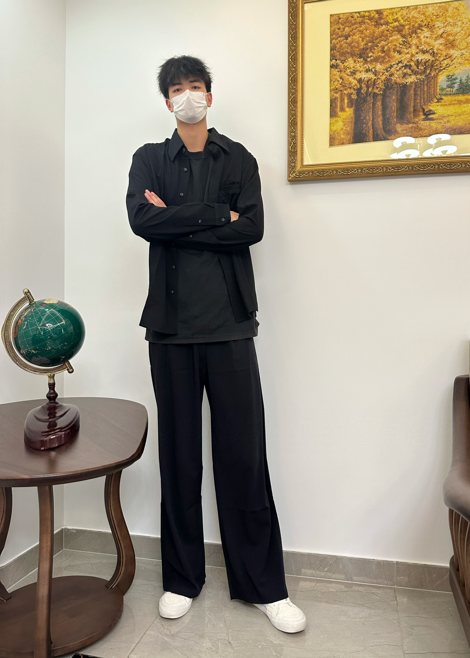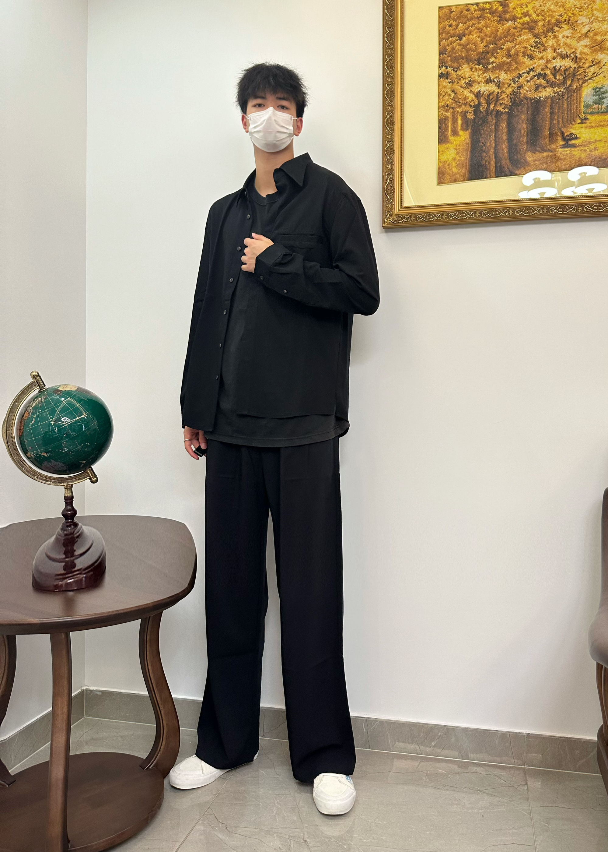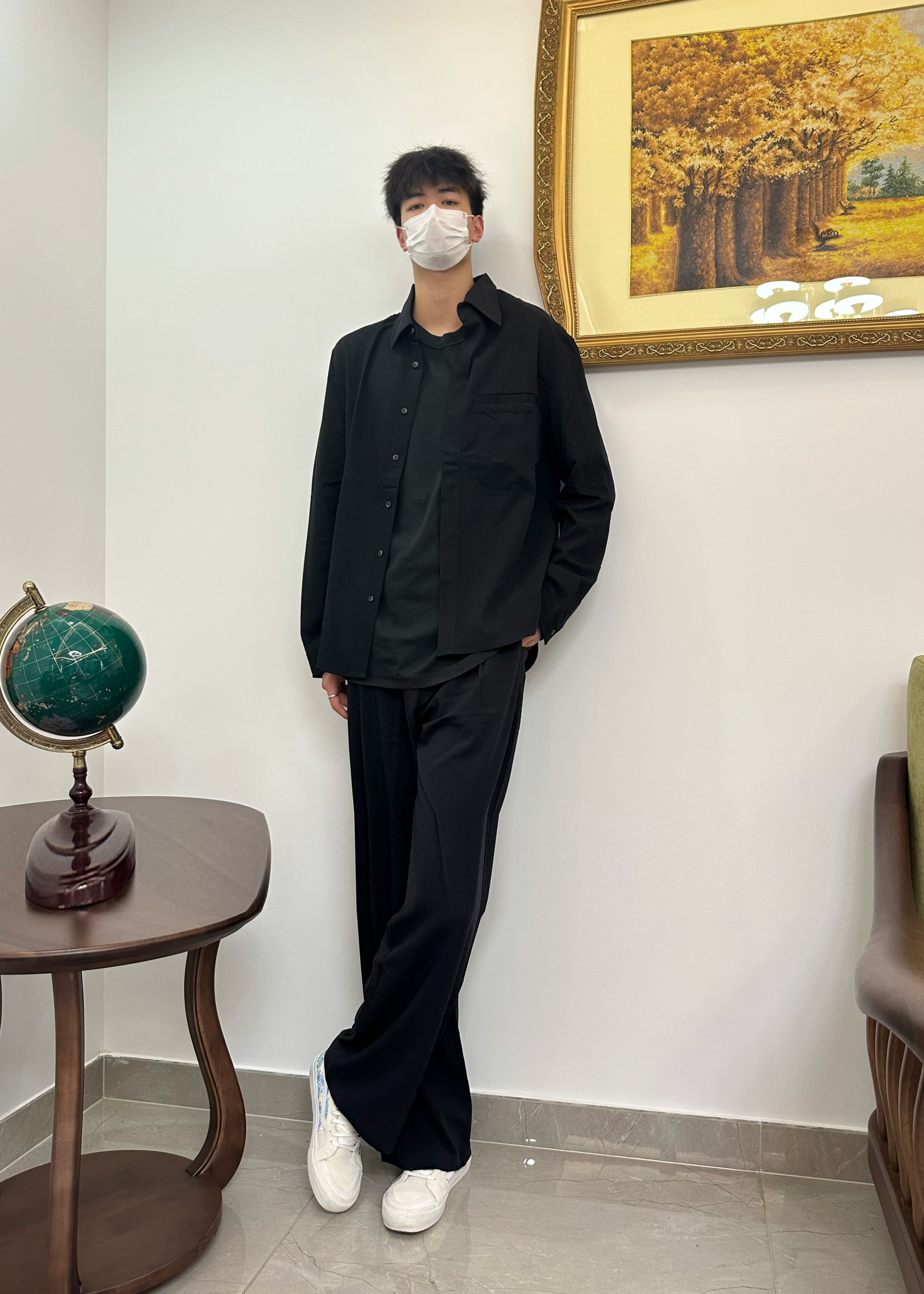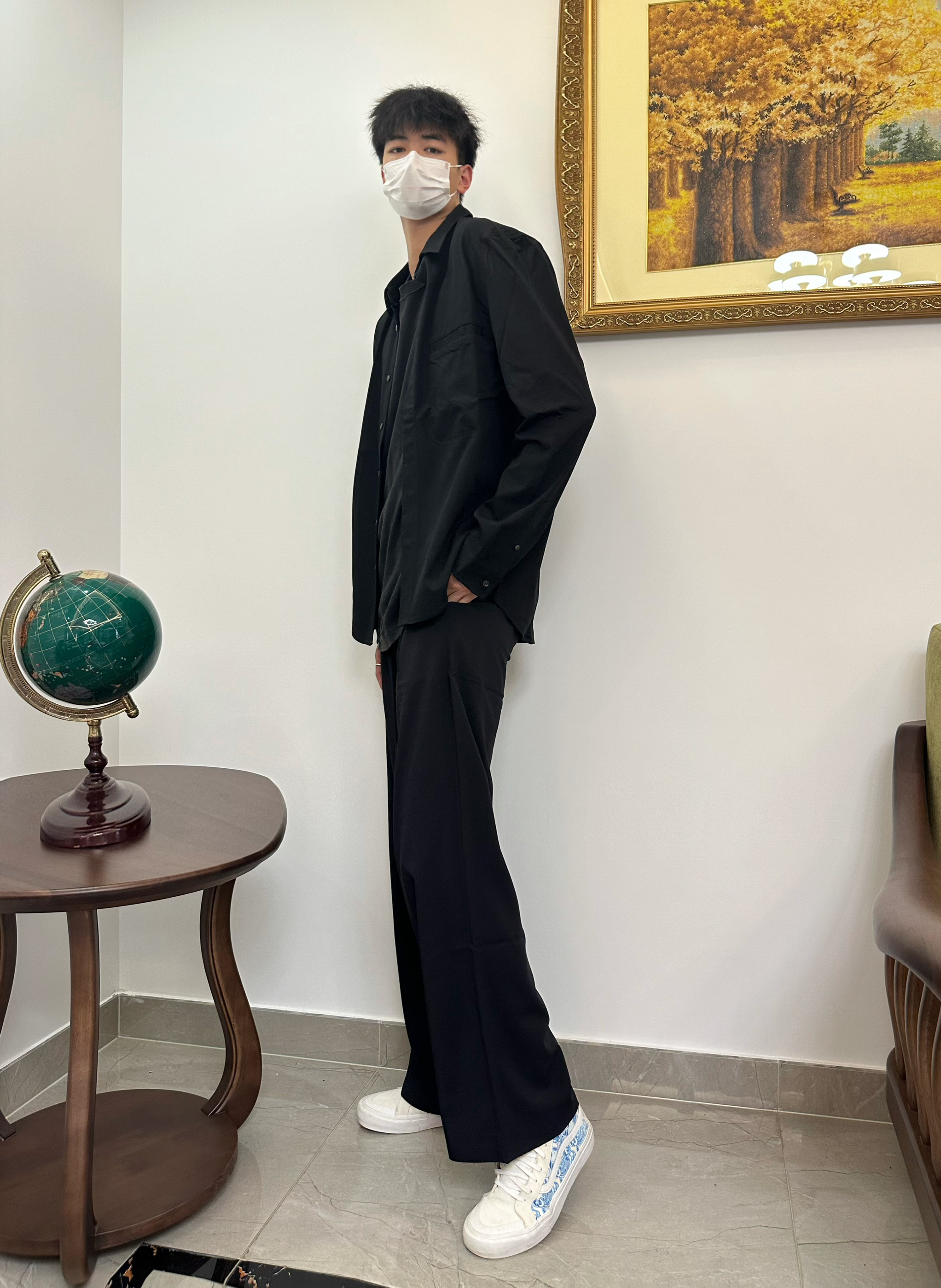 👔 RIVER STONE 流石复古经典长袖衬衫 这条衬衫穿起来是真帅 肩部自带垫肩的感觉有点小高级 👖 RIVER STONE 流石竹节休闲裤 👟 Vans SK8 Hi 本人 185/75 👔 2xl 👖 xl