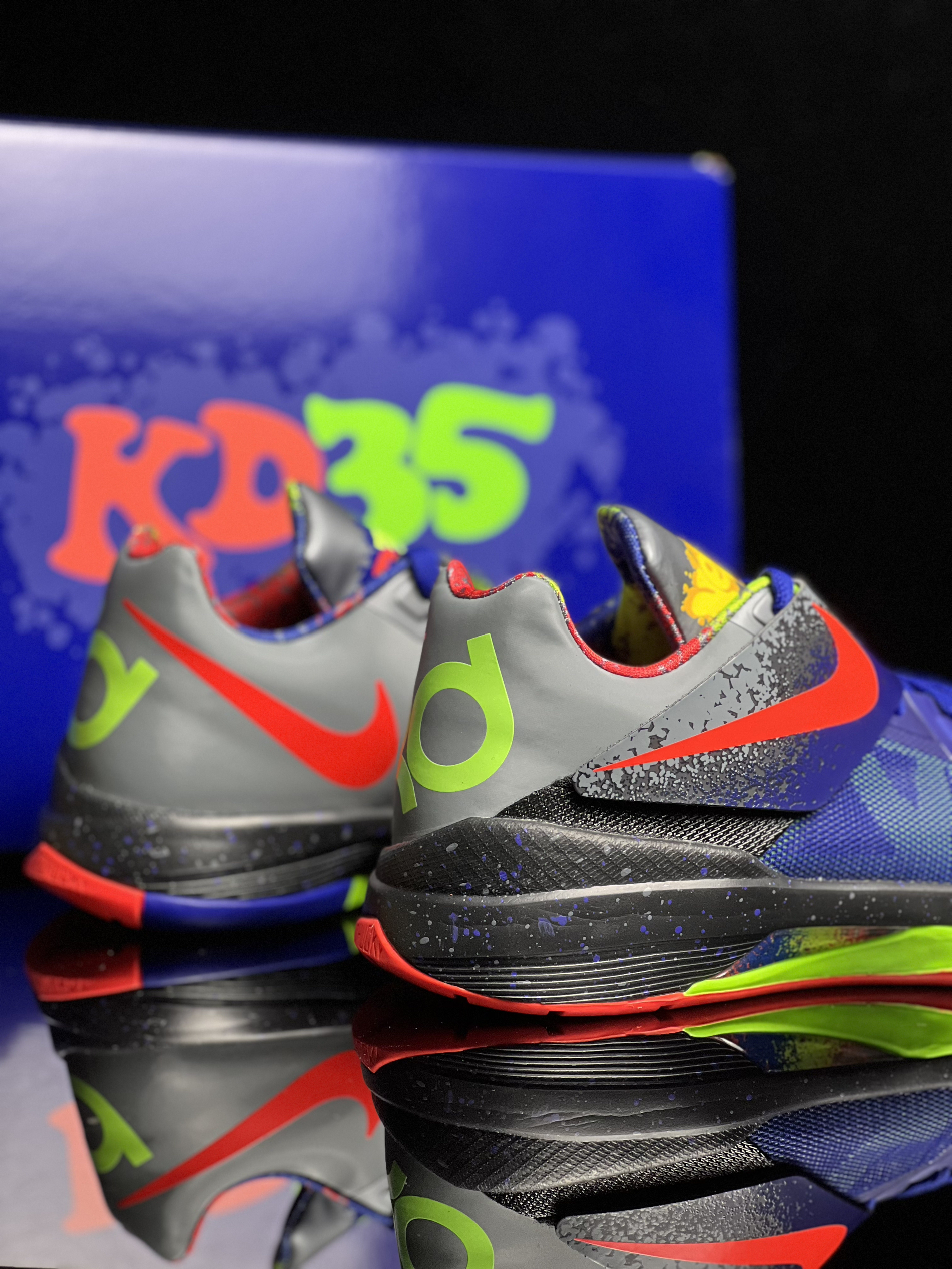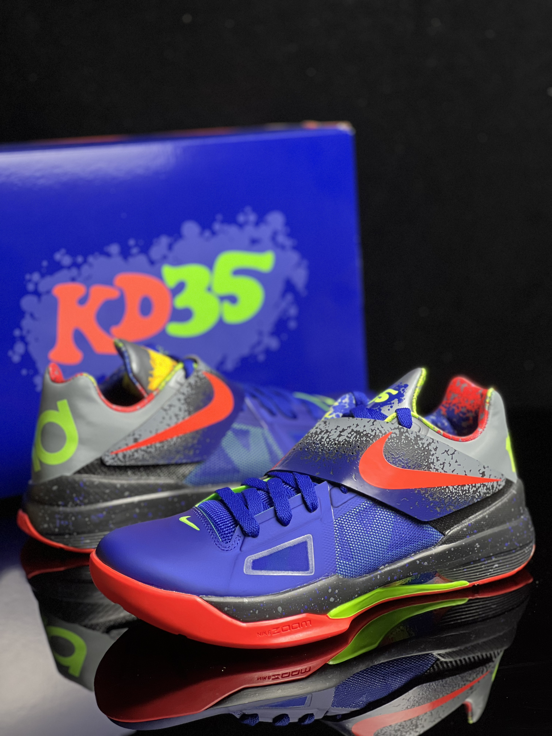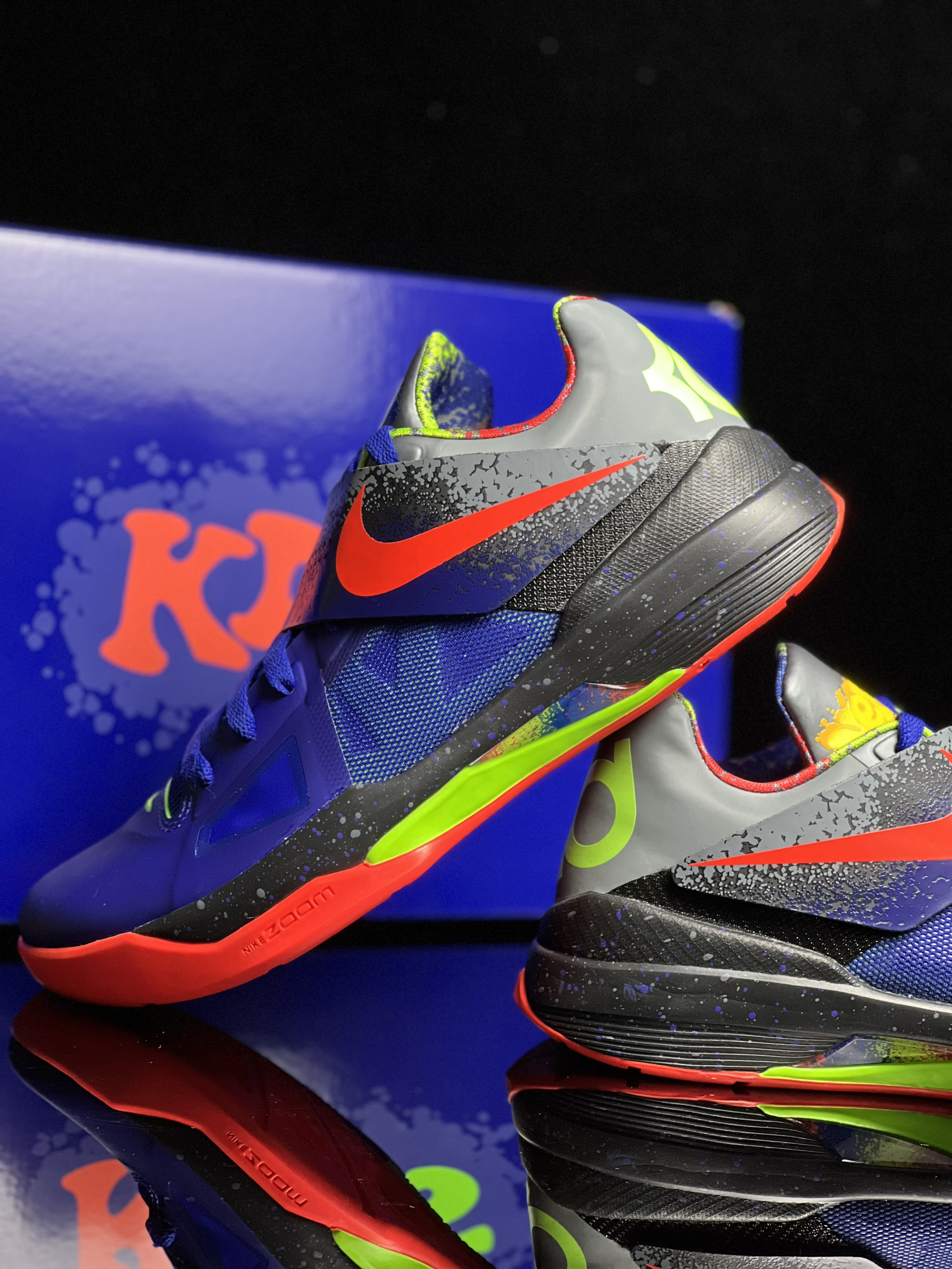 Nike KD 4 时尚百搭 減震耐磨透气低帮 篮球鞋男女同款 蓝红 经典再现!蓝红色KD4也太酷了吧!绑带鞋面包裹感很好,荧光绿logo点缀效果也不错! 鞋底防滑耐磨,贴地感很好!尺码正常选择就可以,值得分享的实战好鞋!