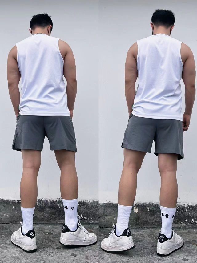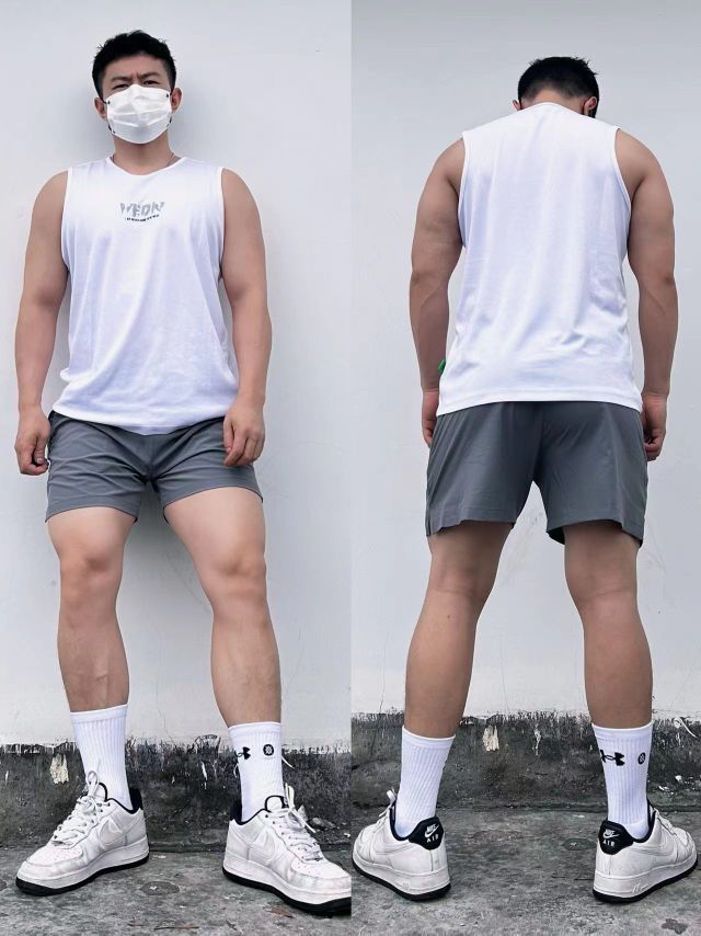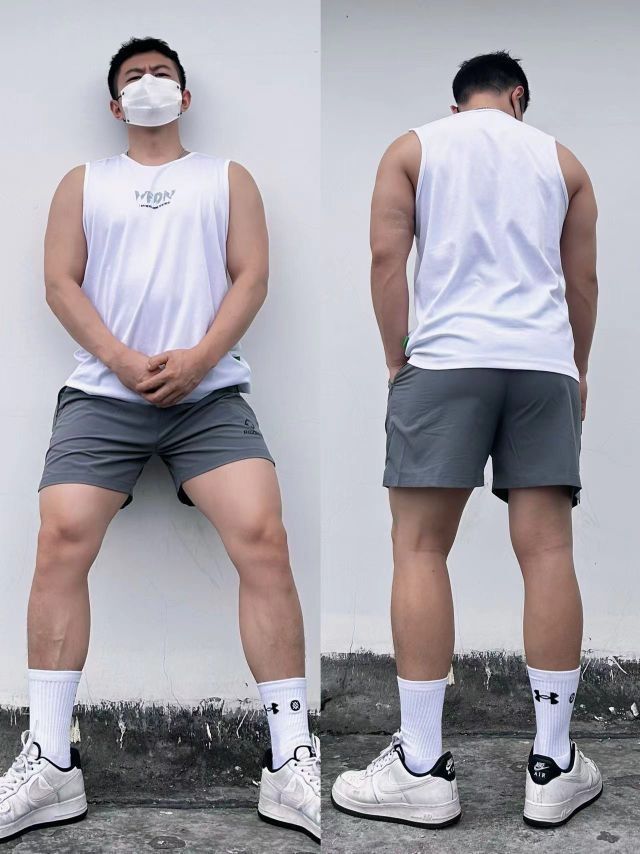 🦵🏻练腿日当然需要一条合格的运动短裤🩳 - 短裤真的深的我心 🔵外层是透气网眼的设计,速干透气好,运动强度再大,也不会觉得特别闷!![666] - ⚪️内层是白色高弹,能很好的包裹肌肉!! 🔆搭配一件白色运动薄款卫衣,青春活力体育生风格拉满