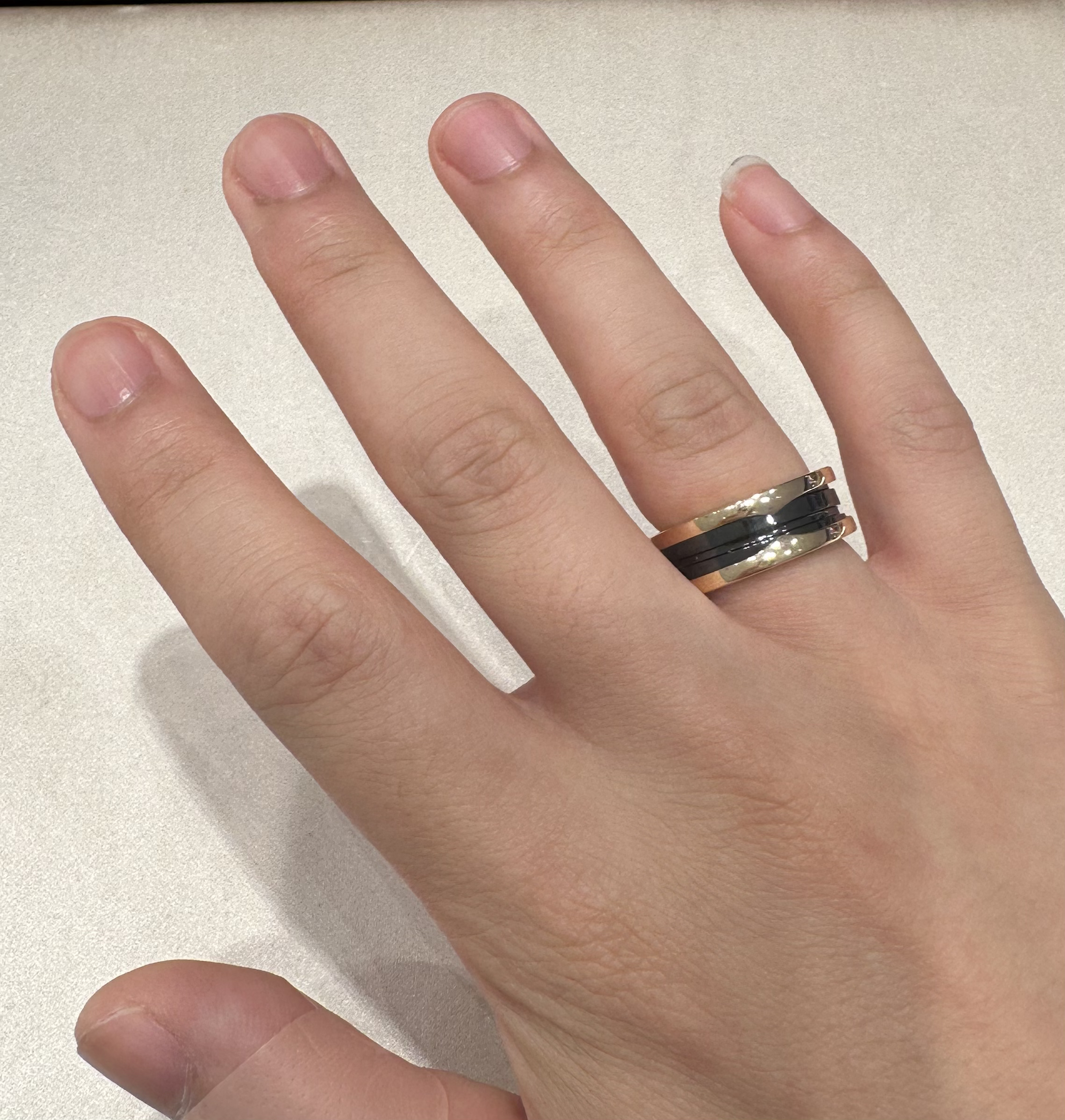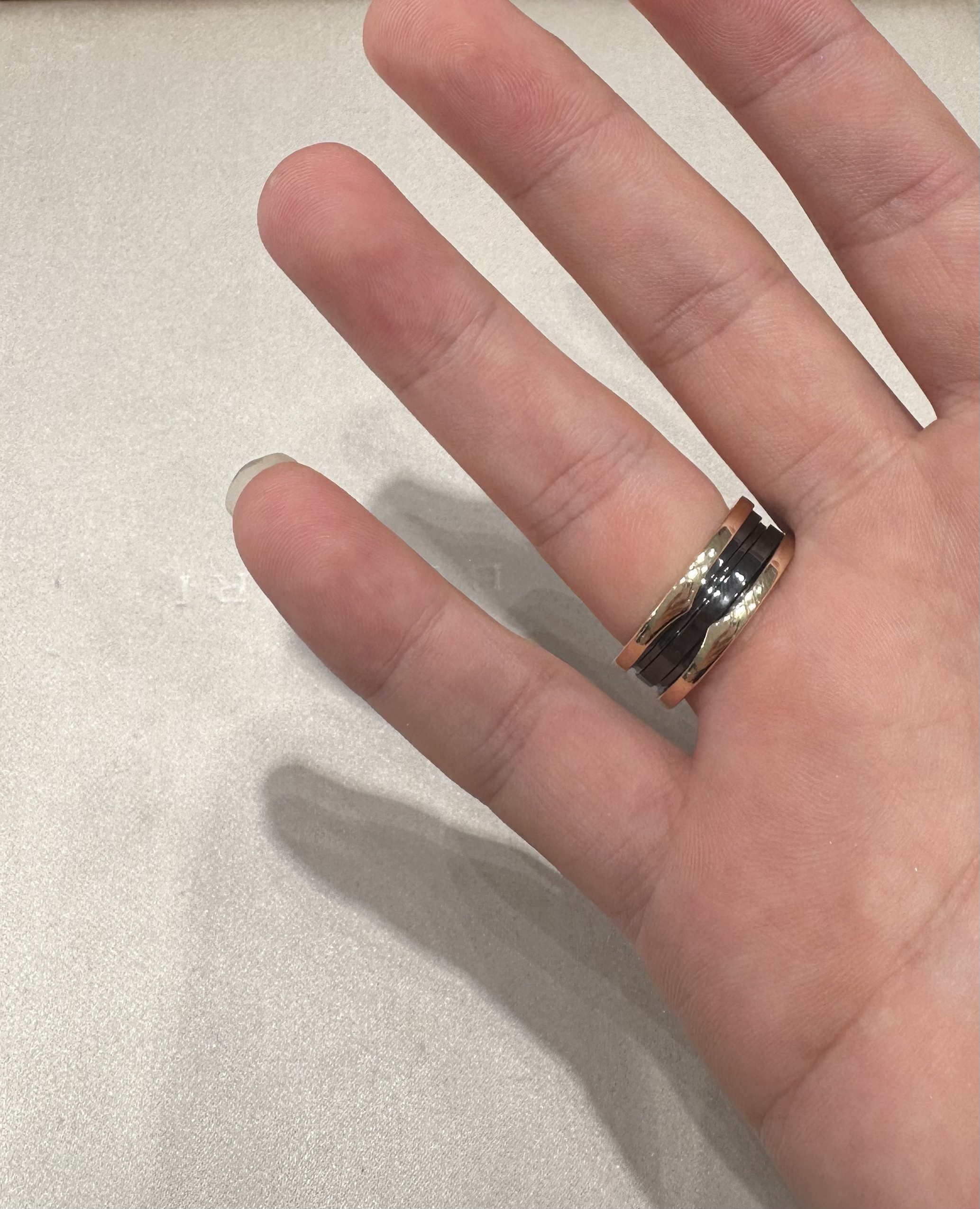 本篇笔记关联了Bvlgari/宝格丽 B.ZERO1系列陶瓷双环窄款玫瑰金戒指 AN855962 黑色等商品,为用户提供真实的使用体验和购买参考。