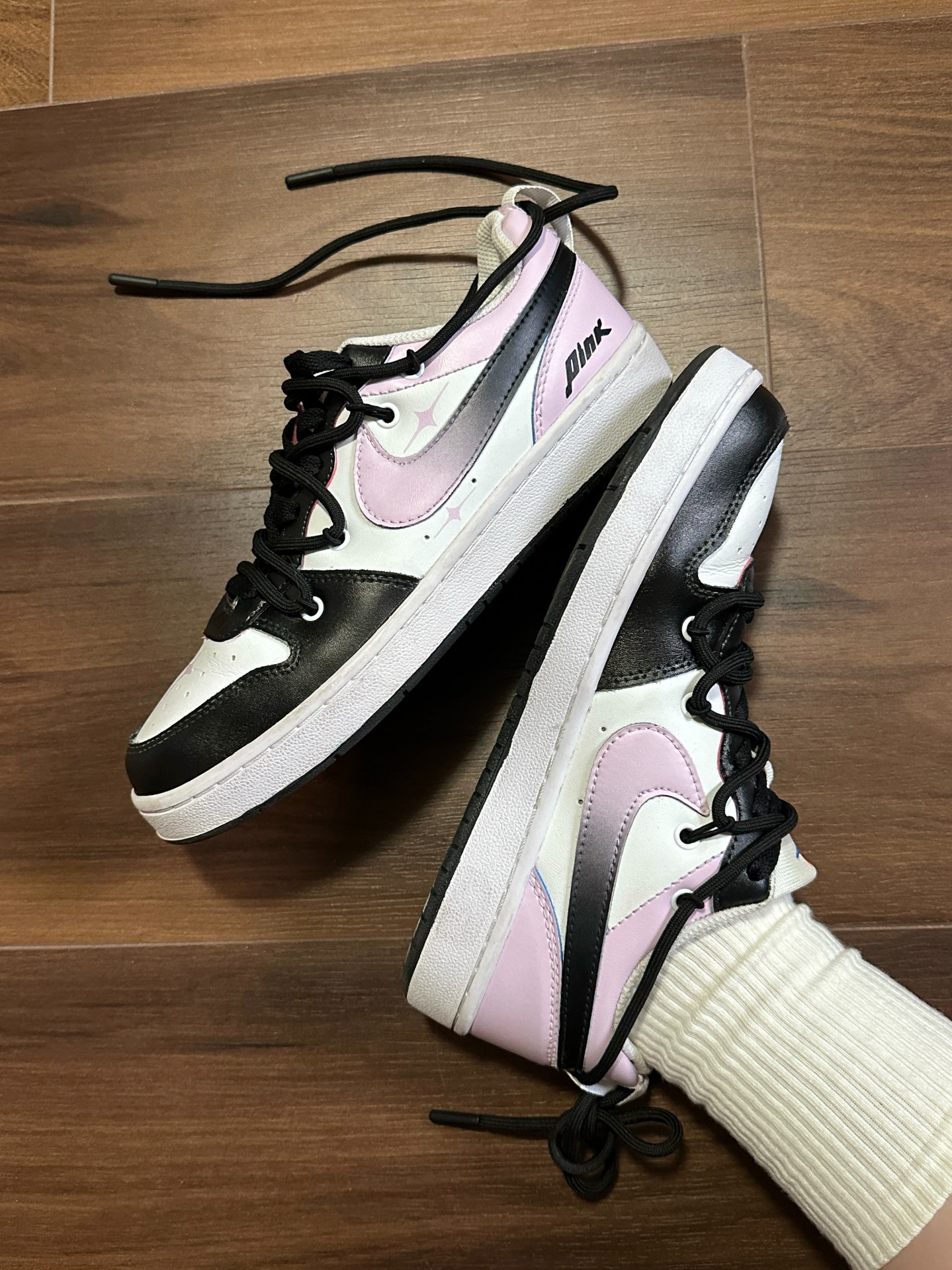 现在的定制球鞋越来越厉害了!什么风格都有😎这双『粉玫瑰』太有个性💗特别适合喜欢Y2k千禧年风格的辣妹🤩 渐变色的Swoosh可以说是回头率💯双鞋带改造很有限量款的feel~Nike的板鞋都很舒服,唯一的缺点就是穿久了鞋头会有褶皱,改善的方法就是不穿的时候里面放上鞋盾或者放团纸支撑一下😉 #万物皆可改 #夏日鞋柜大公开 #爱的定制礼选这双 #y2k千禧风格鞋子 #谁还没双黑粉色Nike #分享百...