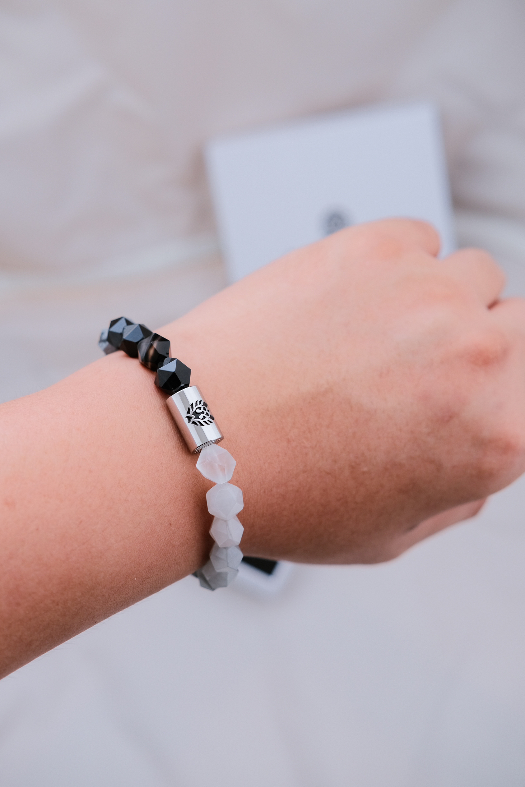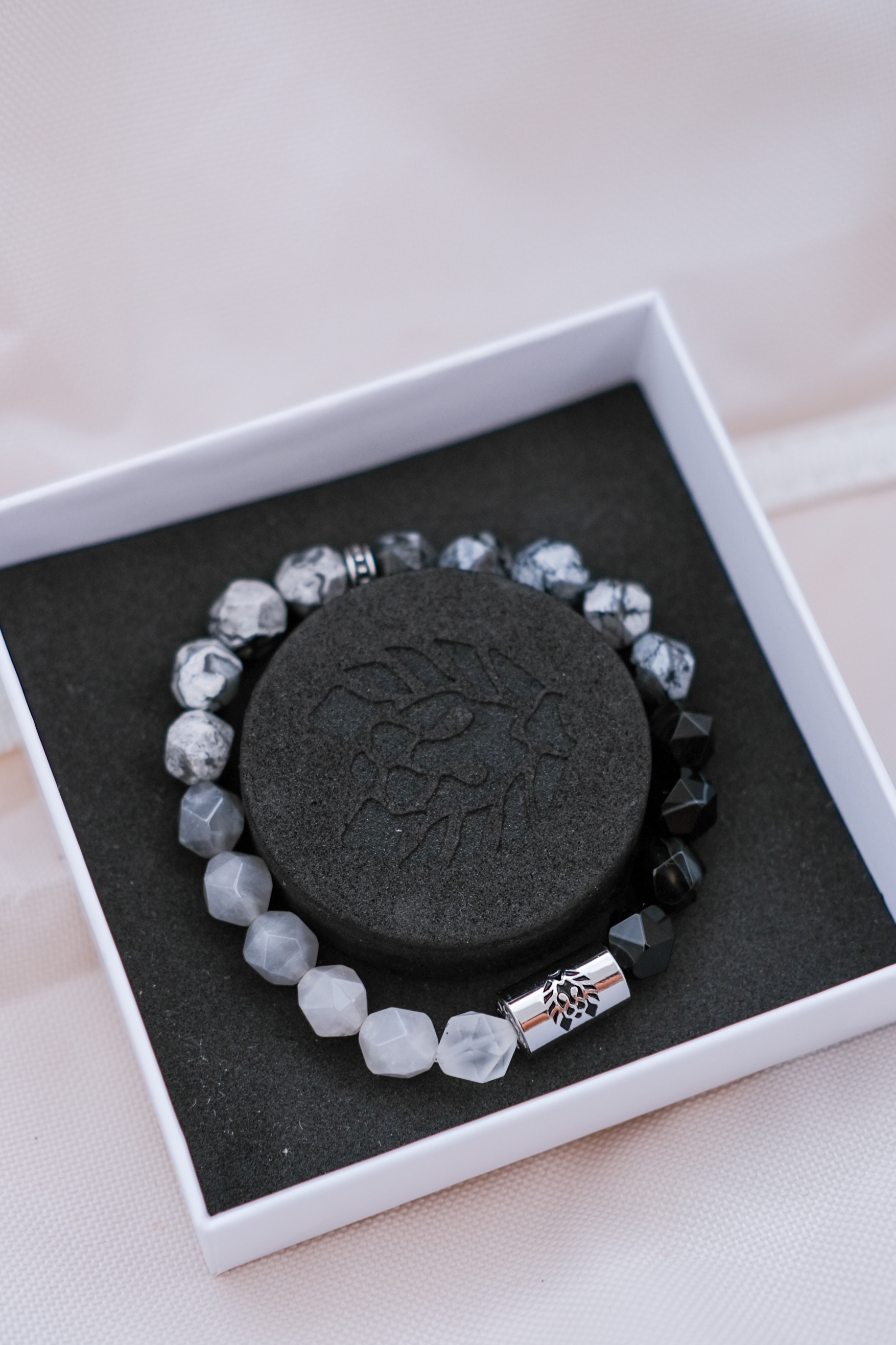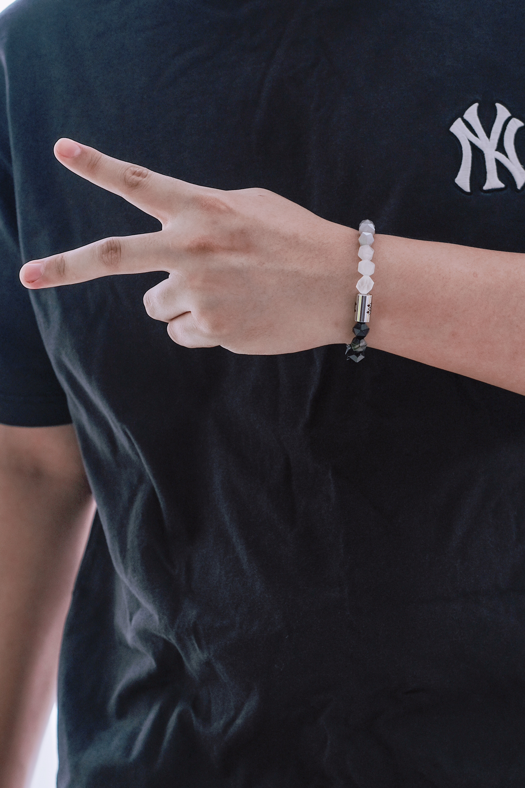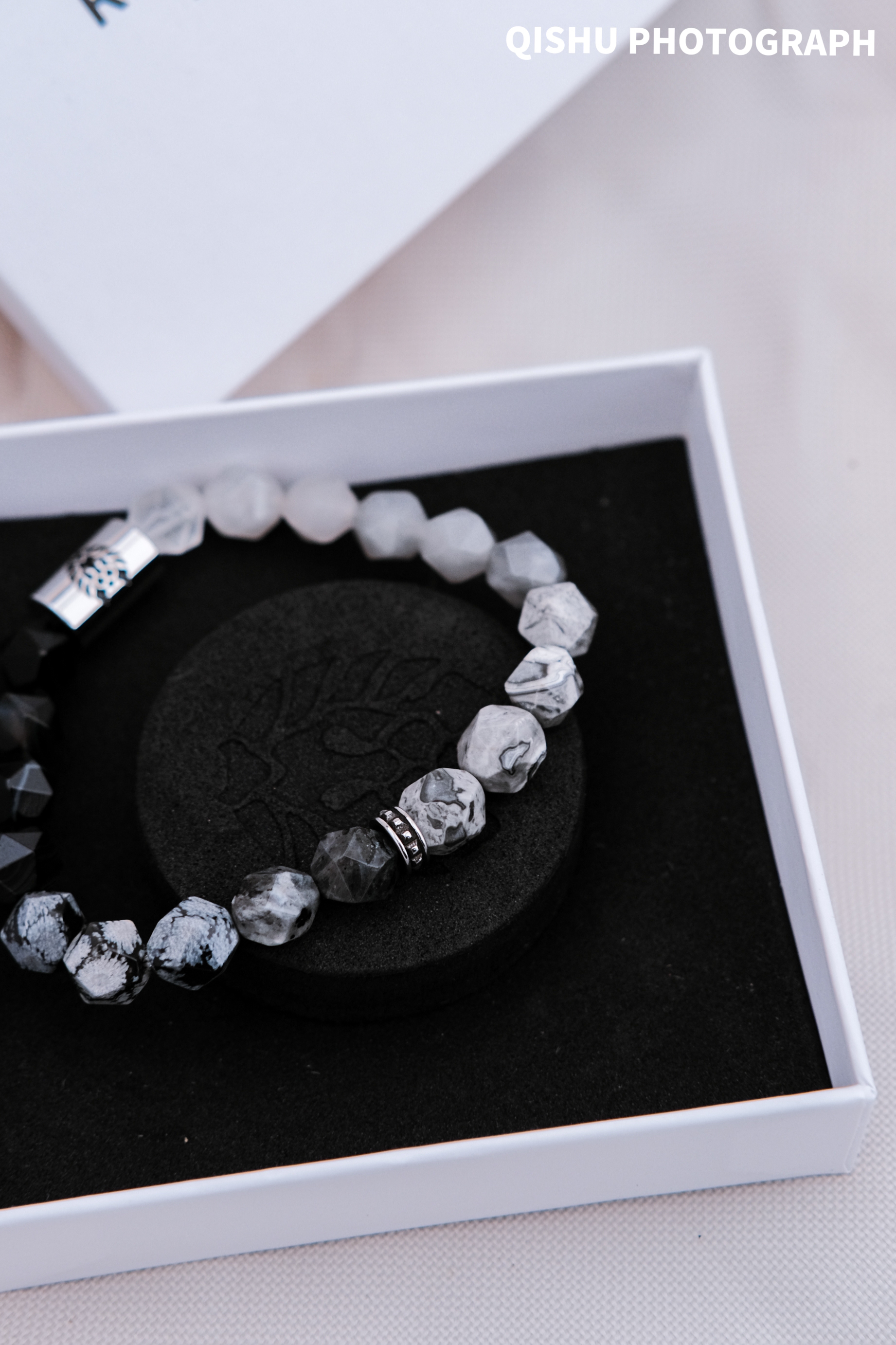 黑灰渐变设计,自带光泽hin有质感,有种大理石的感觉 串珠的切割hin漂亮。加上金属点缀,现代工业风与国风相融合~ 小众又有设计感,又酷又飒,还不易撞款!