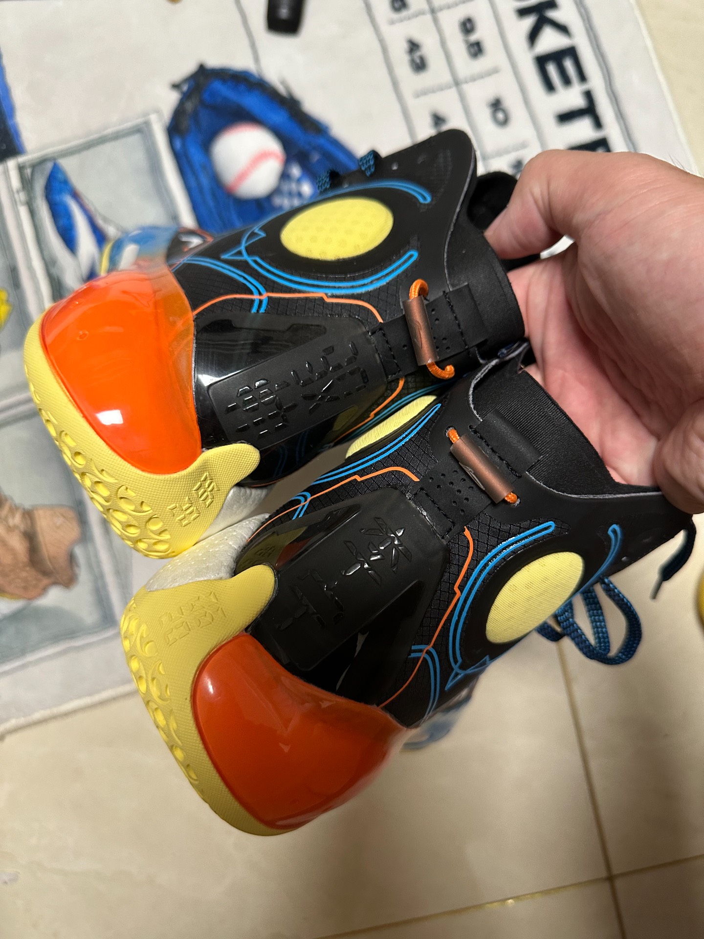 首先,14䨻是比较早用的coolshell鞋面,这个鞋面有一个优点就是刚性特别强,而且鞋带部分还有飞线,在包裹感和鞋强度都做到很好的一个效果,哪怕是像我这种大体重,实战跑起来也完全没问题。不过鞋楦瘦得比较窄,瘦脚和微宽脚穿没有太大问题。 中底采用全掌比较厚的高配䨻,这个䨻缓震极限很高,不论是小体重还是大体重都能得到很好的缓震释放,尤其前掌软不会卸力,实战起来滚动感觉还挺强的。不过䨻裸露比较多,打得...