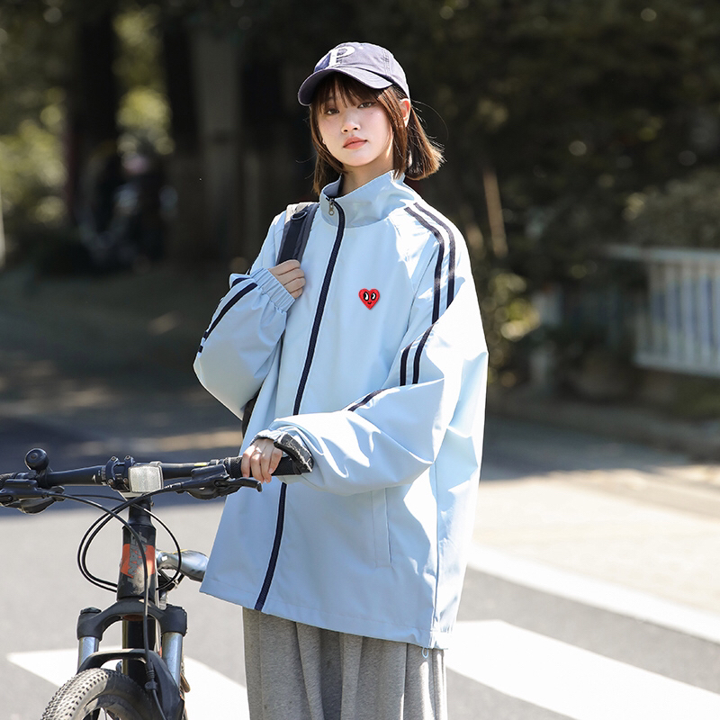 今天上身的冲锋衣是来自查尔斯桃心,奶呼呼的蓝色真的好绝,减龄又清新,侧边条纹又很有运动感,搭配休闲裤,真的帅气十足!