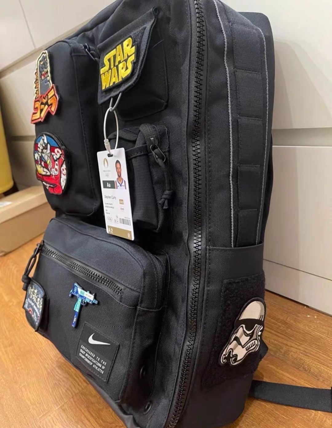 Nike大容量气垫双肩包 这款包容量非常大也有很多的收纳空间 口袋很多 书包内部的布局也非常好里面还有可以放的衣物网兜和放球鞋的隔层 而且书包的外部可以用来diy侧面侧兜还有魔术贴 还可以戴上挂饰还有徽章每一个都是独一无二的包