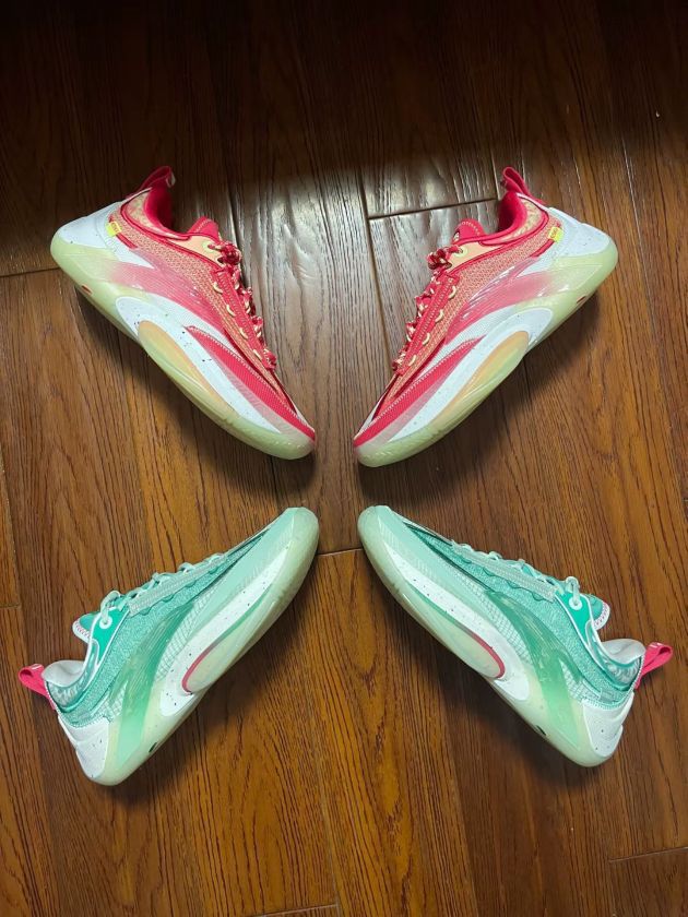 东方苍龙:翡翠绿色,红色点缀,颜值高,很清爽,包裹支撑没有问题,透气有所欠缺,中底软弹,鞋底抓地耐磨都很优秀,实战没问题。 大红苹果:胭脂红色,黄色点缀,颜值高,很喜庆,包裹支撑没有问题,透气有所欠缺,中底软弹,鞋底抓地耐磨都很优秀,实战没问题。 所以你的选择是?