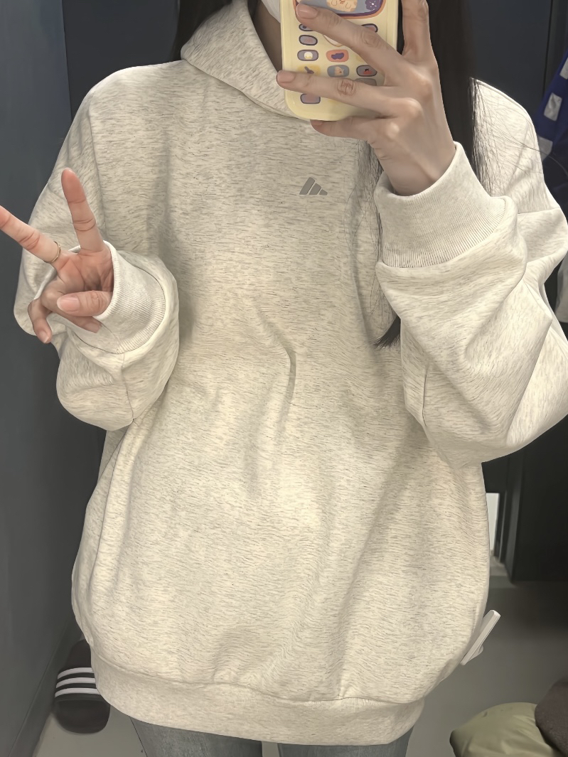 永远会被阿迪的卫衣狠狠拿捏🎐 虽然是男款但是我真的好喜欢!! 肥肥大大的版型 柔軟舒适的面料 内里有薄绒 胸口有个小logo 📭 简约感拉满(还有个深灰色能拿来当情侣款?