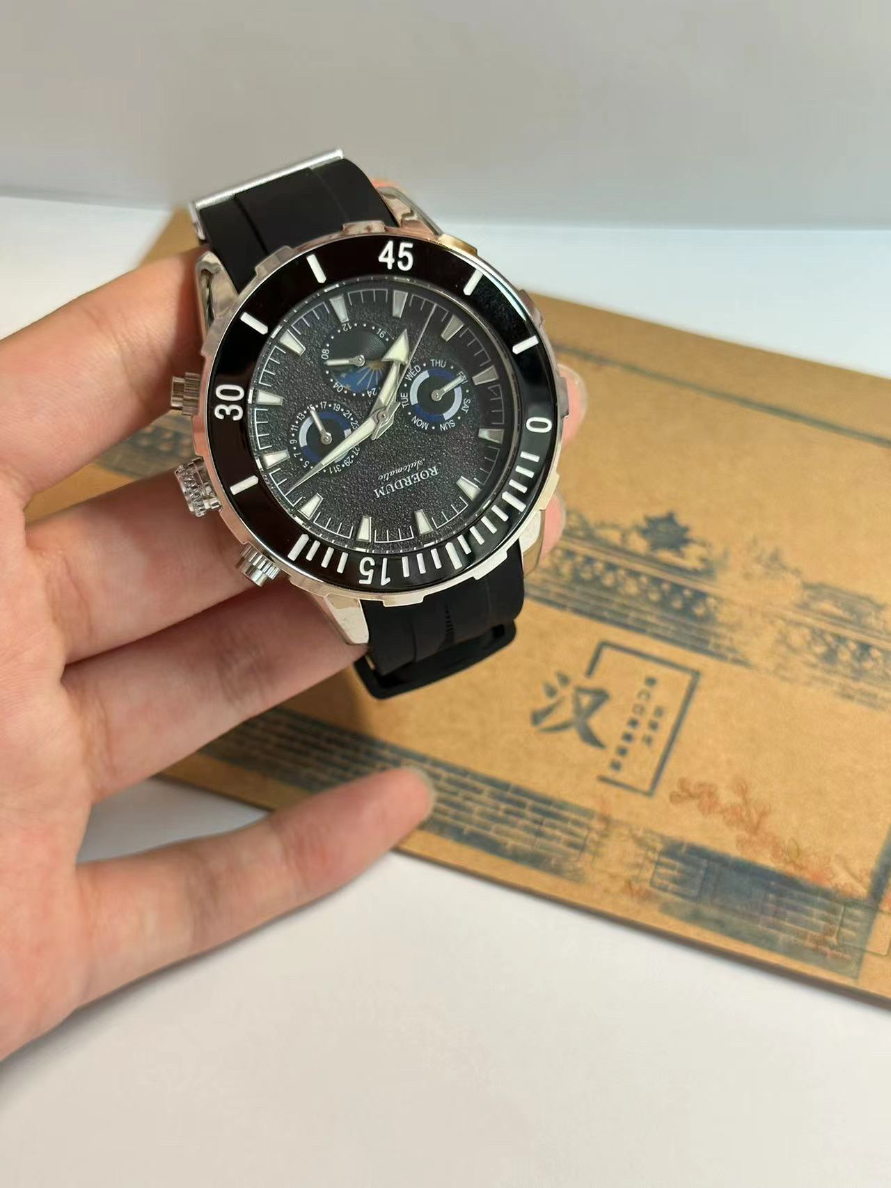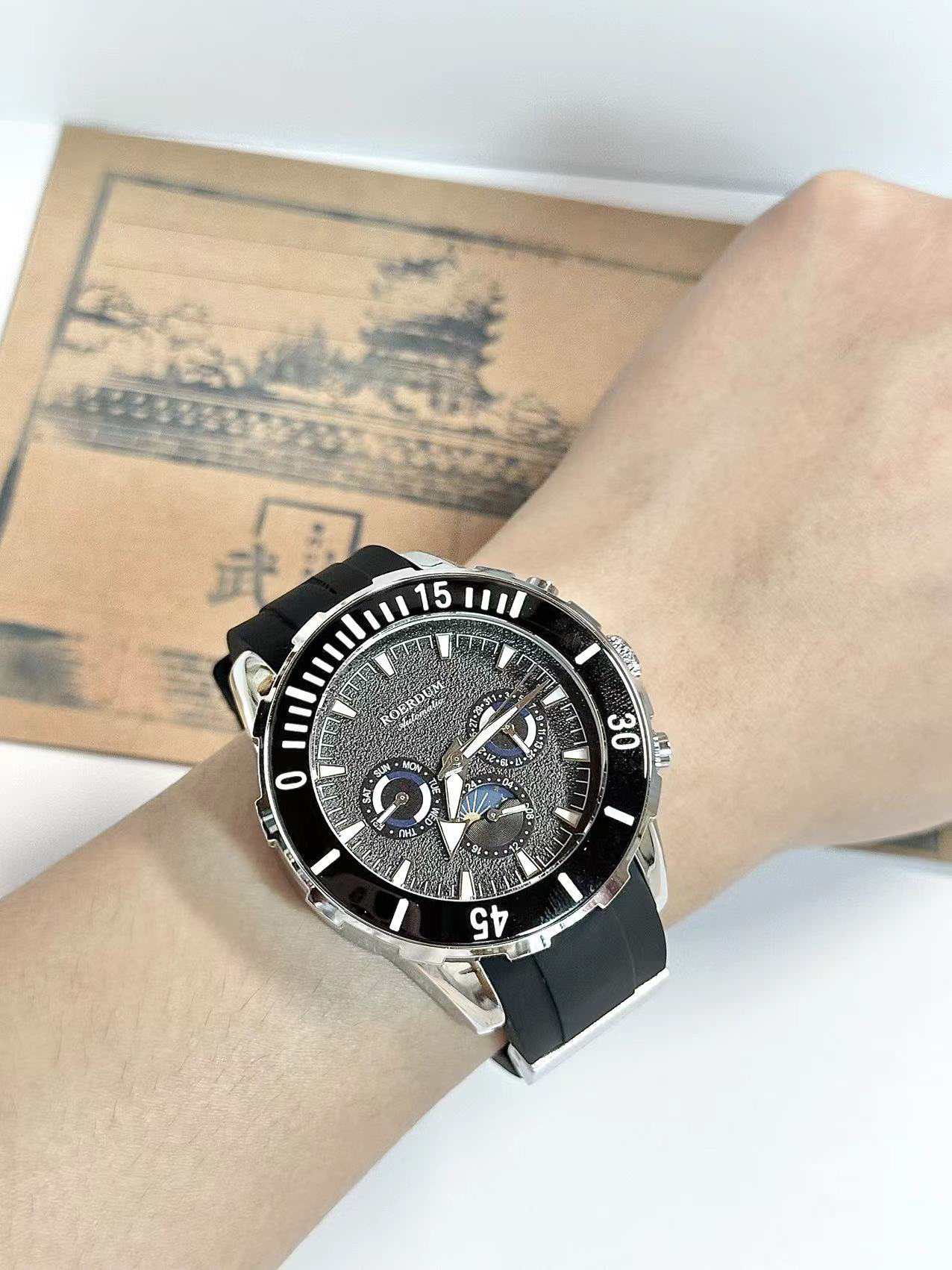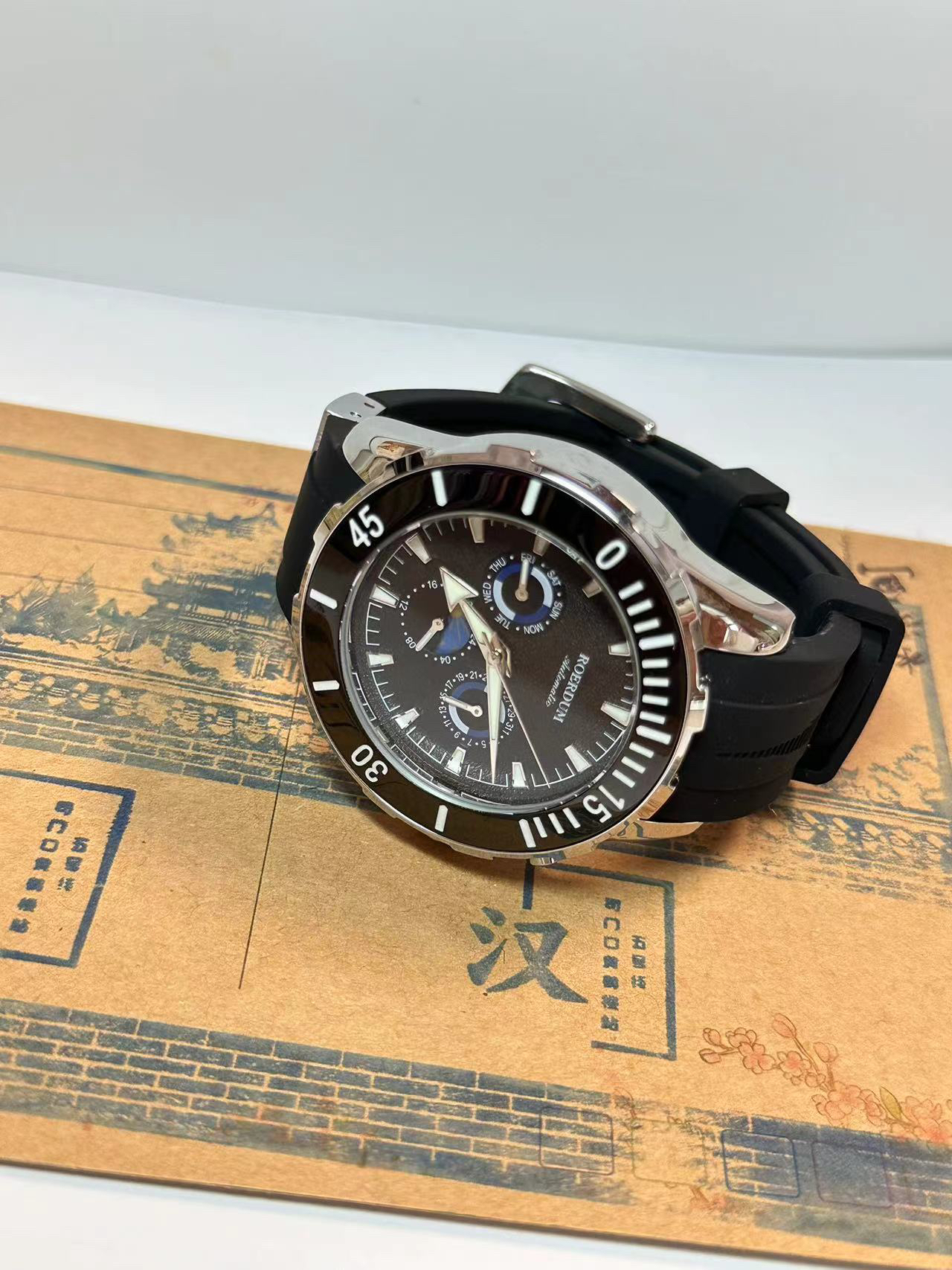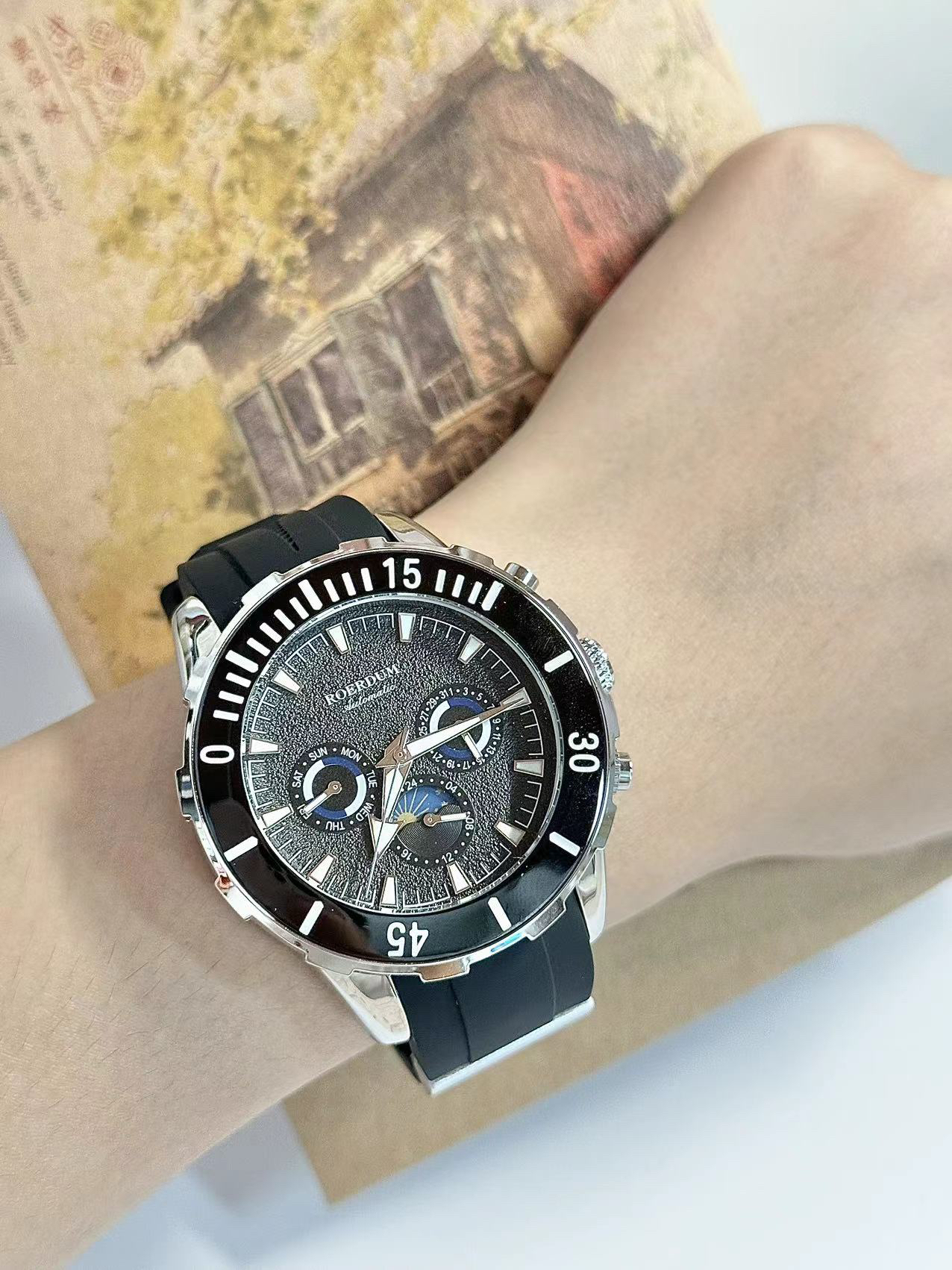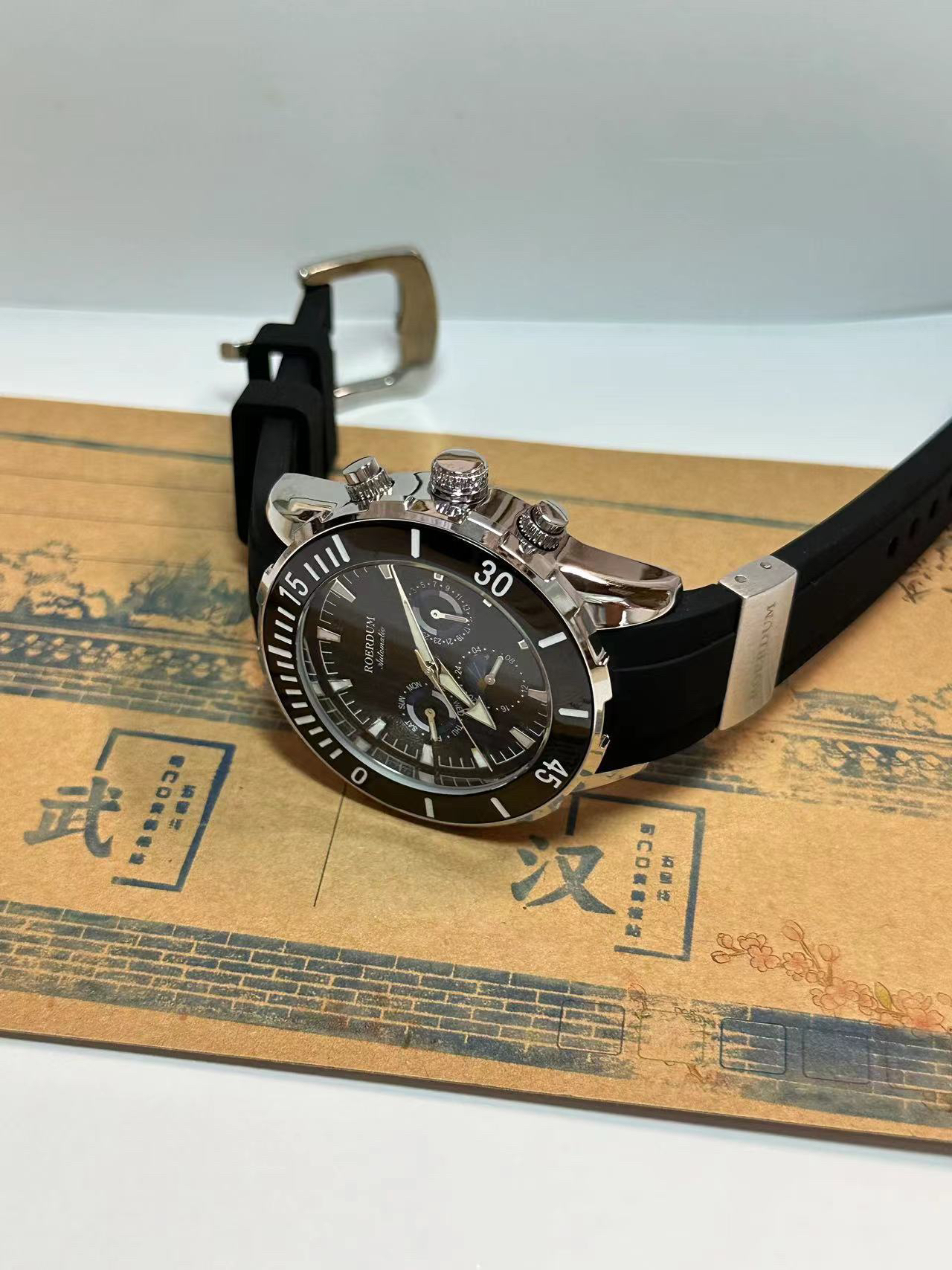 本篇笔记关联了ROERDUM/劳尔顿 潜行者 42mm硅胶表带三眼自动机械男士手表 黑带黑面等商品,为用户提供真实的使用体验和购买参考。