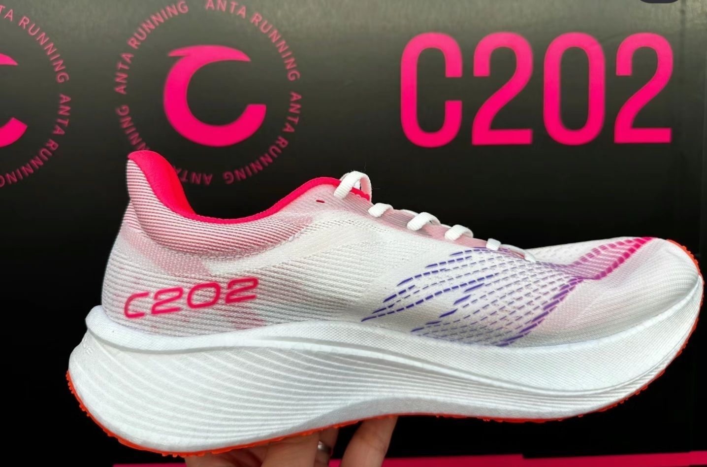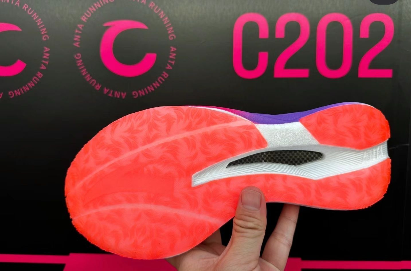 安踏 C202 5代:以碳板之名,行薄底之事! 安踏C202 5代:以碳板之名,行薄底之事【单只鞋重]:238g(44码) 【坡差]:8mm(不带鞋垫,前掌22mm,后掌30mm) 【中底材料]:氮科技中底镂空异构碳板 (二次模压的超临界中底泡棉脚感偏韧,耐久度很不错,即使是跑长距离也不会有碳板的异物感;这个镂空的碳板在纵向和横向的刚性,没有铲型碳板这么强,可以比较好的进行趾骨蹬伸和自然内旋落地,...