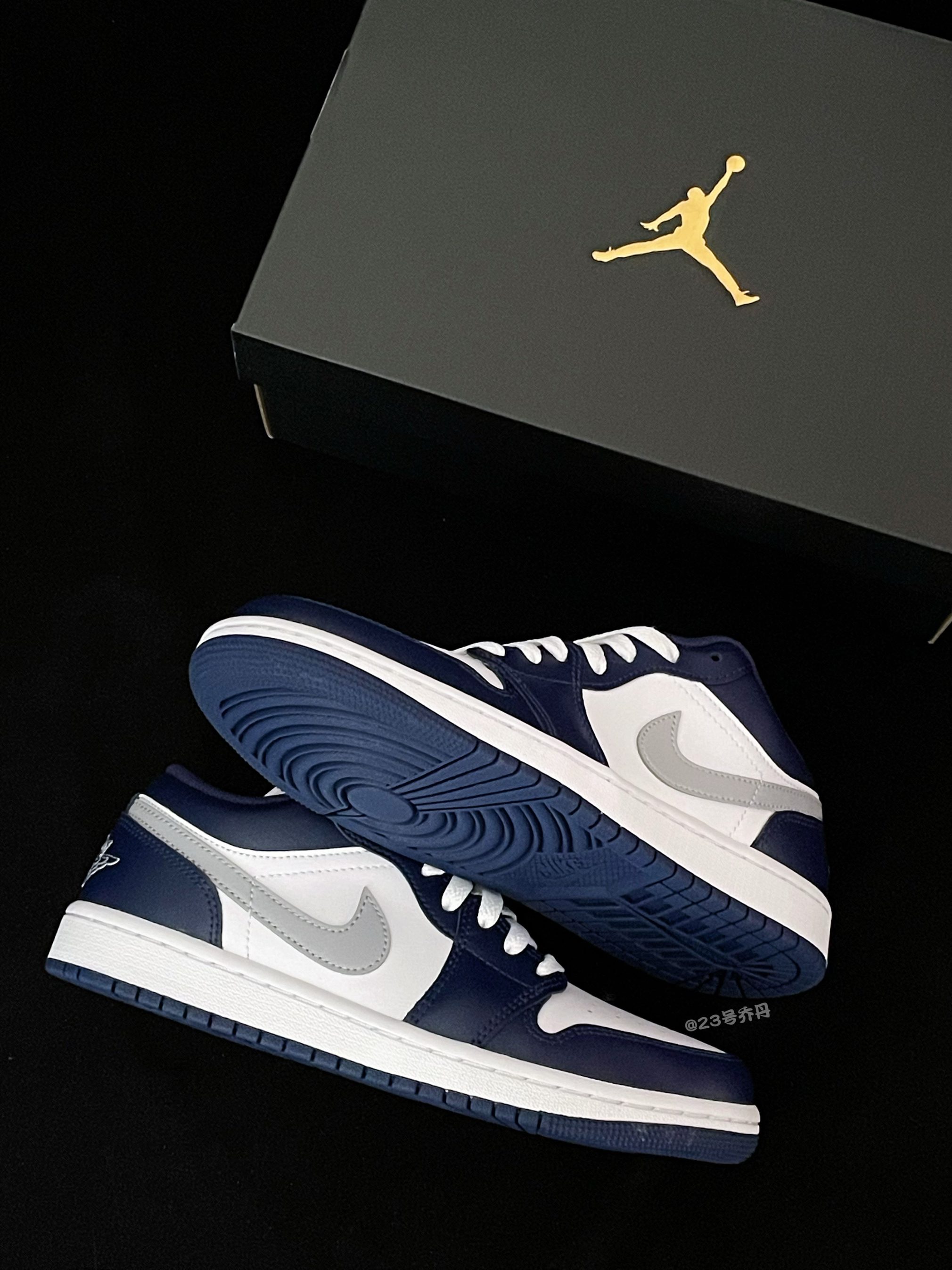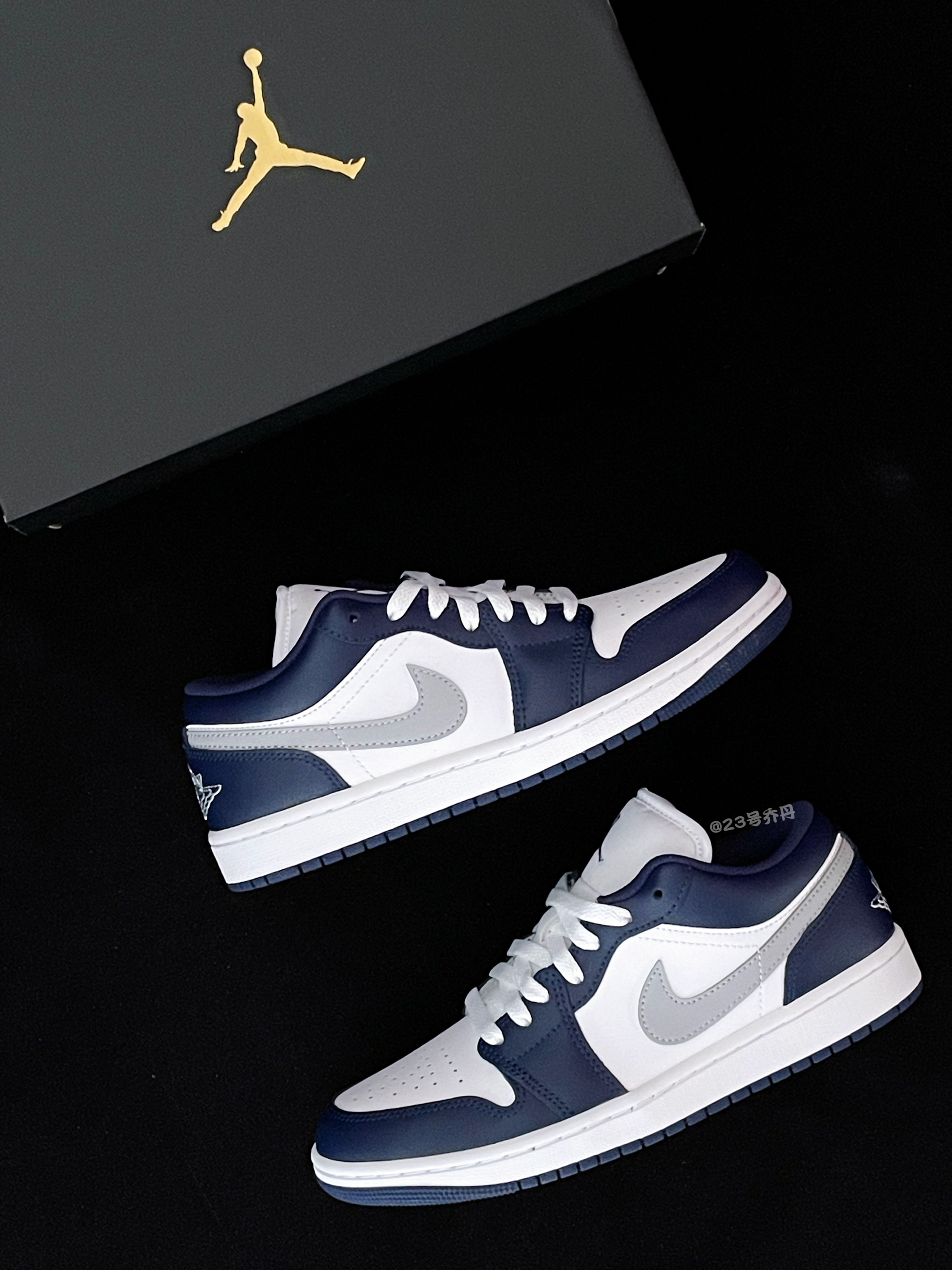 今天给大家分享这双 Jordan Air Jordan 1 Low『海军蓝』白灰蓝 鞋款由白色和海军蓝为主色调 鞋侧Swoosh等细节运用了灰色 整体的配色十分经典百搭 也很清爽适合夏季 鞋面的柔软皮革穿着舒适日常也好打理 中底3️⃣公分的增高可以比较好的修饰腿型 海军蓝多纹路橡胶底收尾 耐磨防滑没有问题 ⚠️尺码方面不偏码 建议正码选择 目前4️⃣0️⃣0️⃣➕的价格还是蛮有性价比的 喜欢的小伙...
