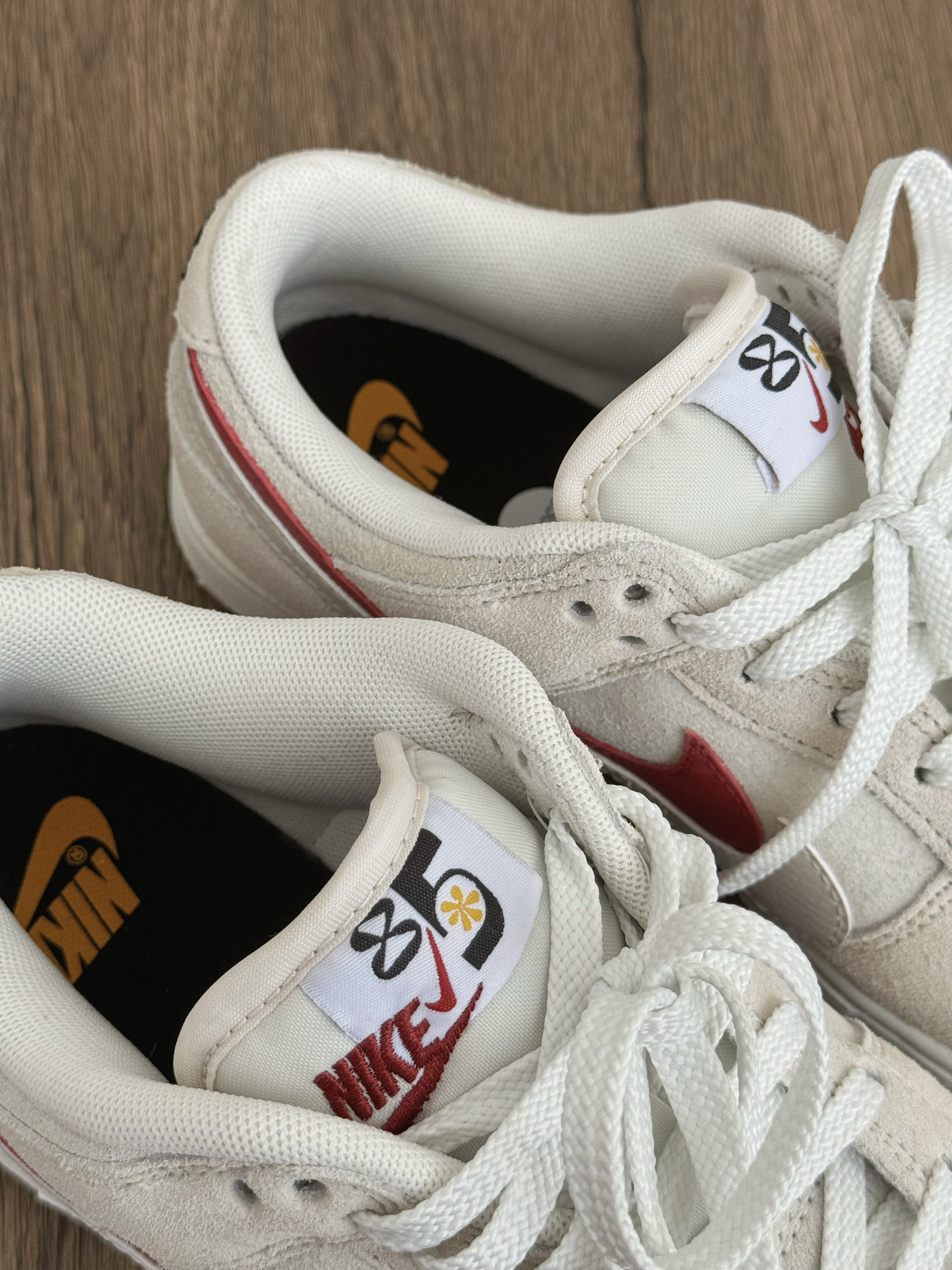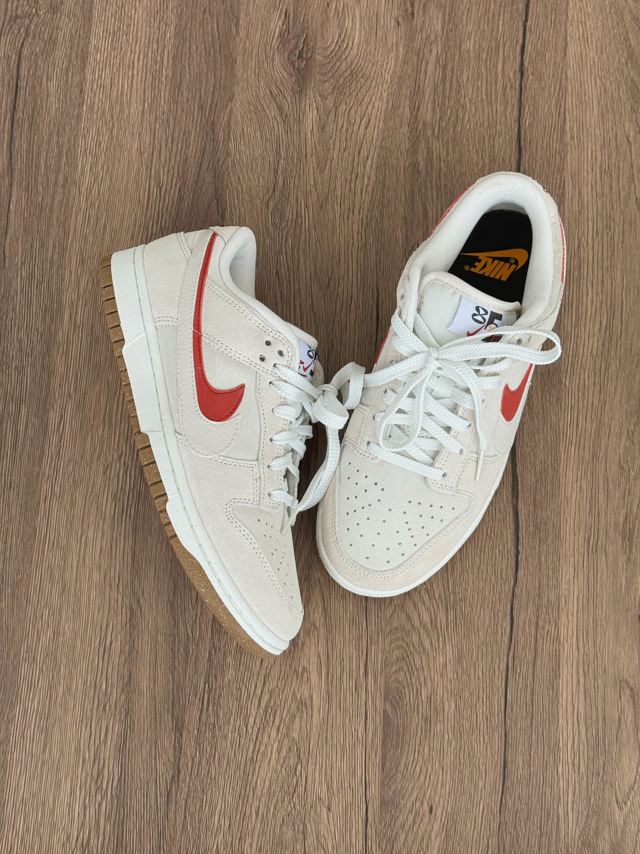 怪特别的!!双勾勾!! 鞋背的nike标也不太一样诶 但是整体米白色百搭不用担心~ 每天踩都踩不烂✌️