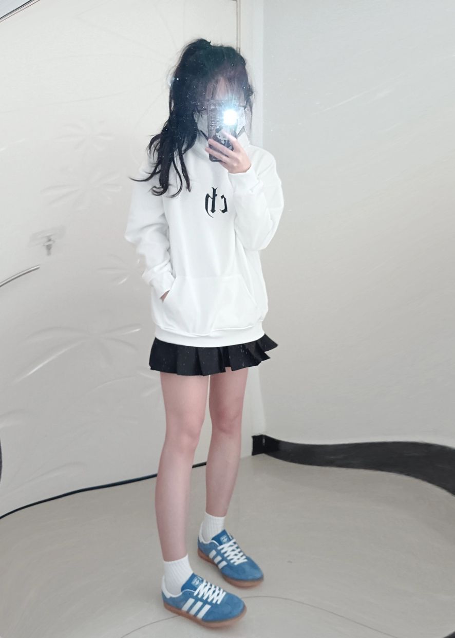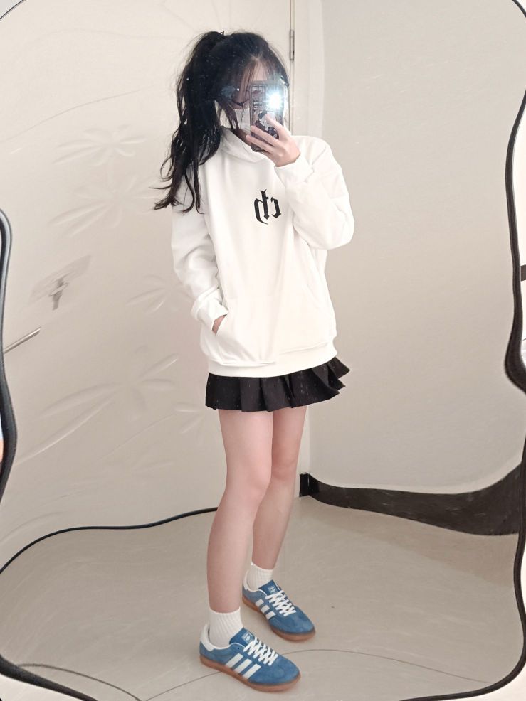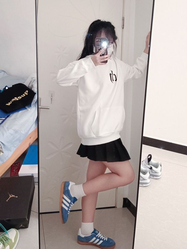 卫衣是 CHINISM 的 这款卫衣的设计简直是oversize的极致 不仅厚实 而且手感超级柔软这样不仅显得慵懒又有型 下身搭配的是百褶裙 学院风减龄又俏皮 高腰设计 拉长腿部线条 👟Adidas Originals 德训鞋 鞋面选用麂皮+皮革材质拼接 质地细腻柔软 高级感十足 穿着不累脚 而且蓝色的配色很有校园的感觉呀 #女孩子的宝藏休闲卫衣