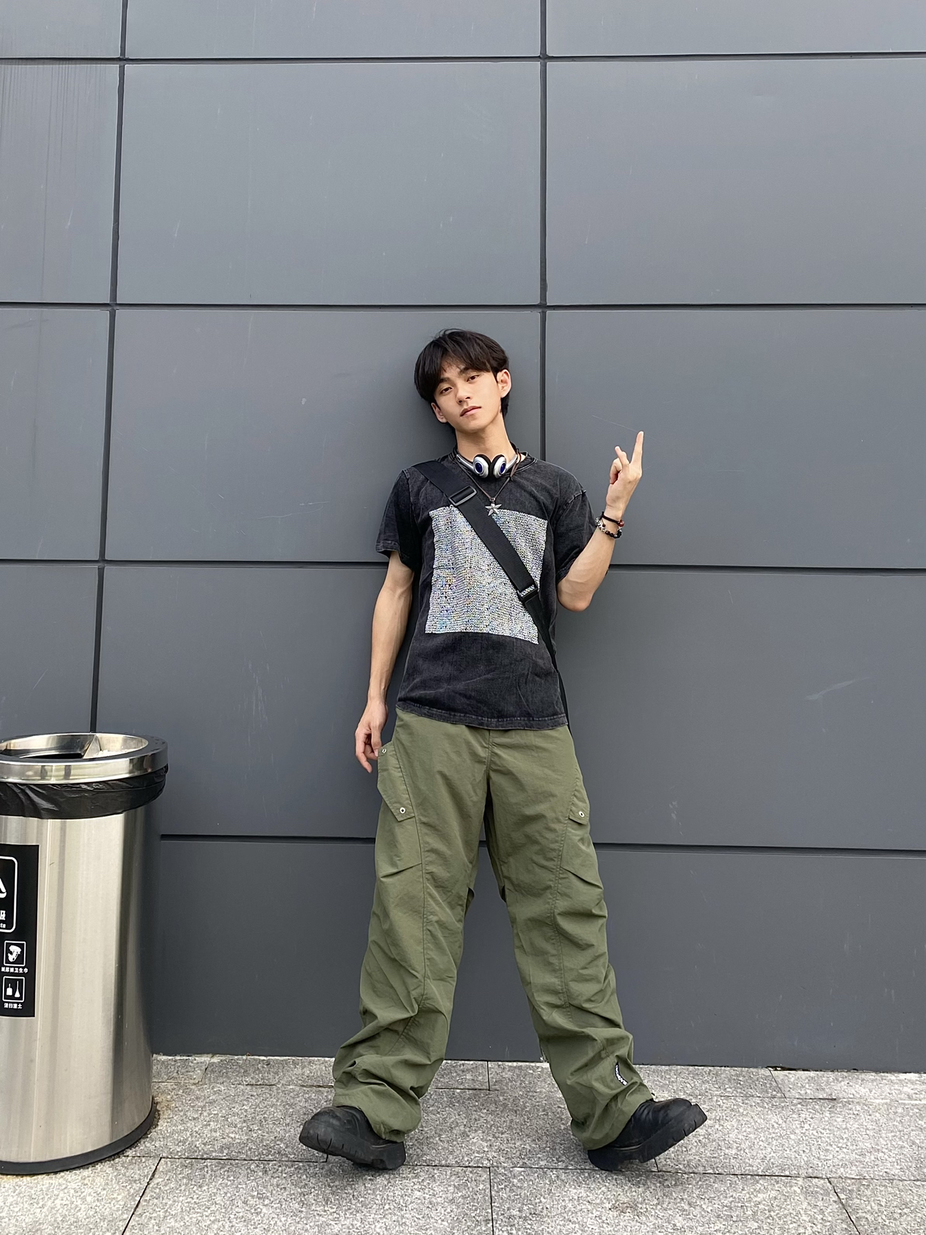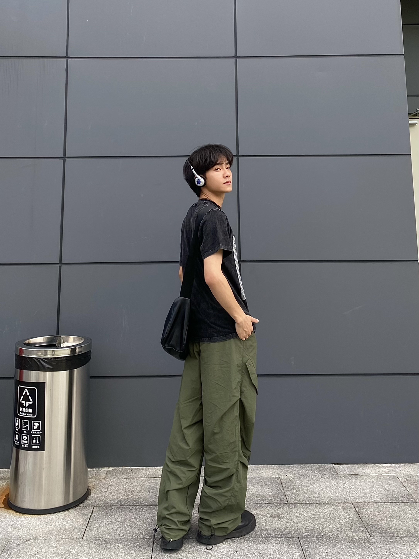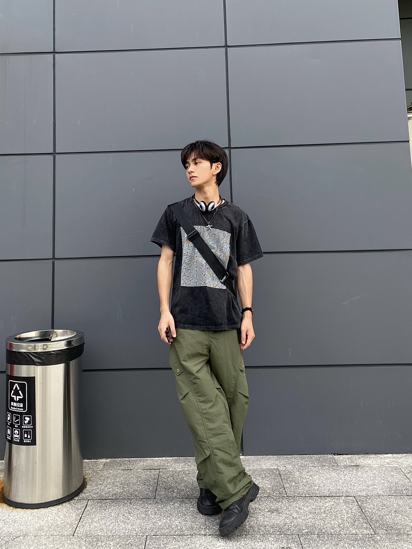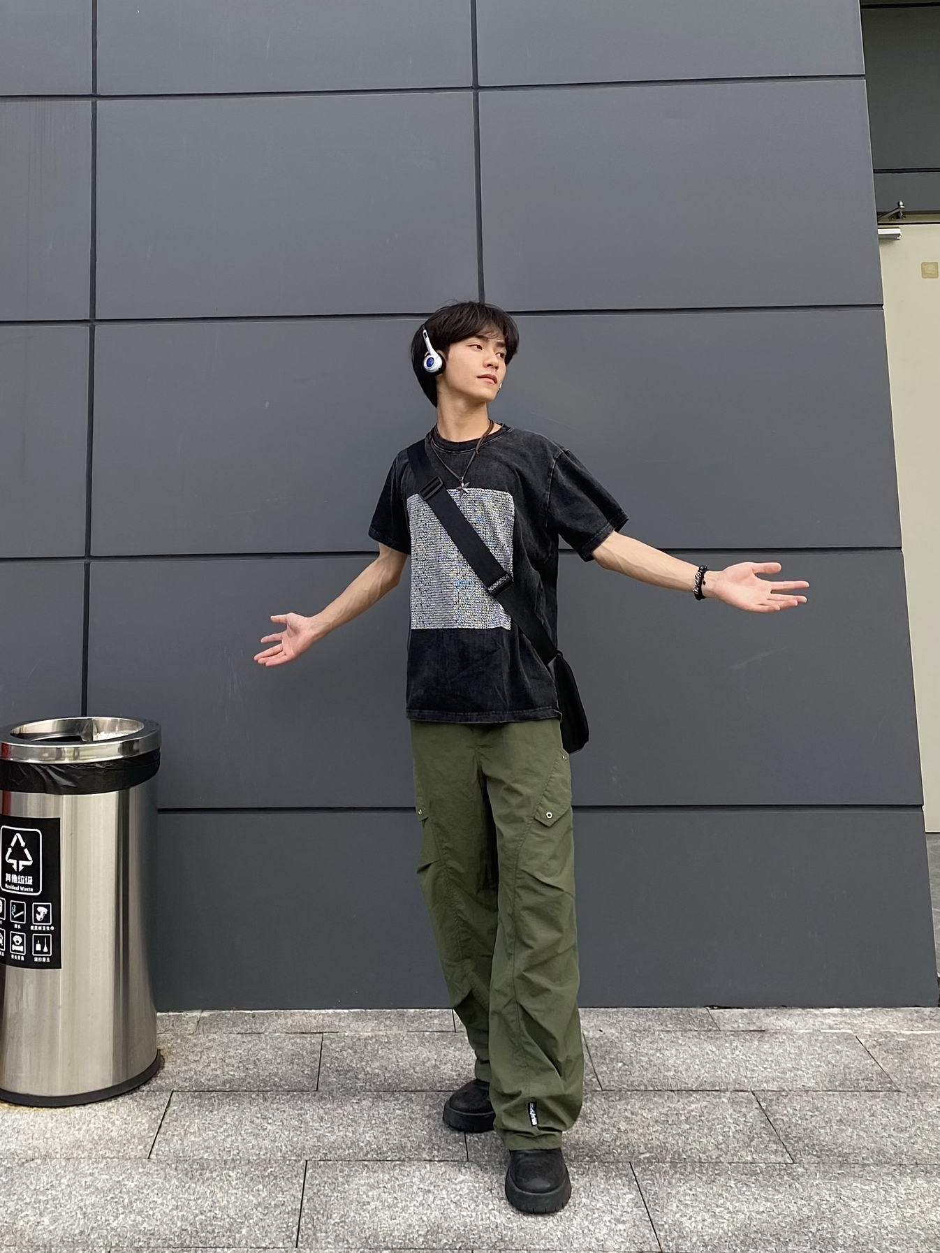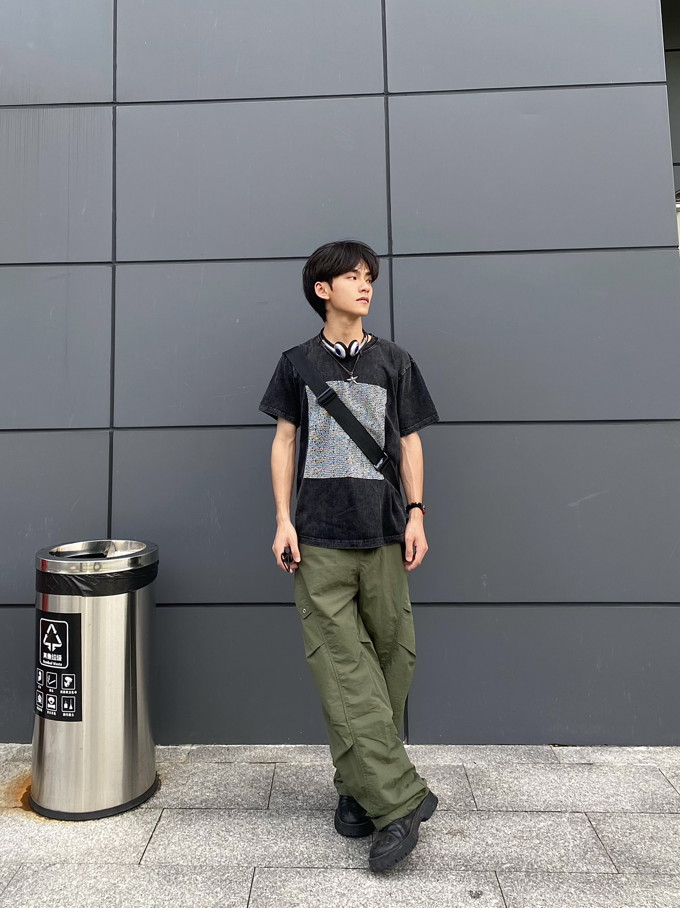 今日穿搭分享: 主打的是一个休闲通勤风! 1⃣️上衣选择的是一款黑色的美式休闲宽松短袖T恤,T恤印花的设计显得更加高级,版型宽松显瘦,上身效果非常的好,颜值高百搭! 2⃣️裤子搭配的是一条军绿色的美式垂感工装裤,裤子版型宽松显高,面料柔软舒适,上身效果非常好,颜值高又百搭!衣服选择完了还要搭配一些小物件点缀一下,这样穿搭显的更加饱满,出门更自信,喜欢的这套的兄弟们,速速来抄作业啦!