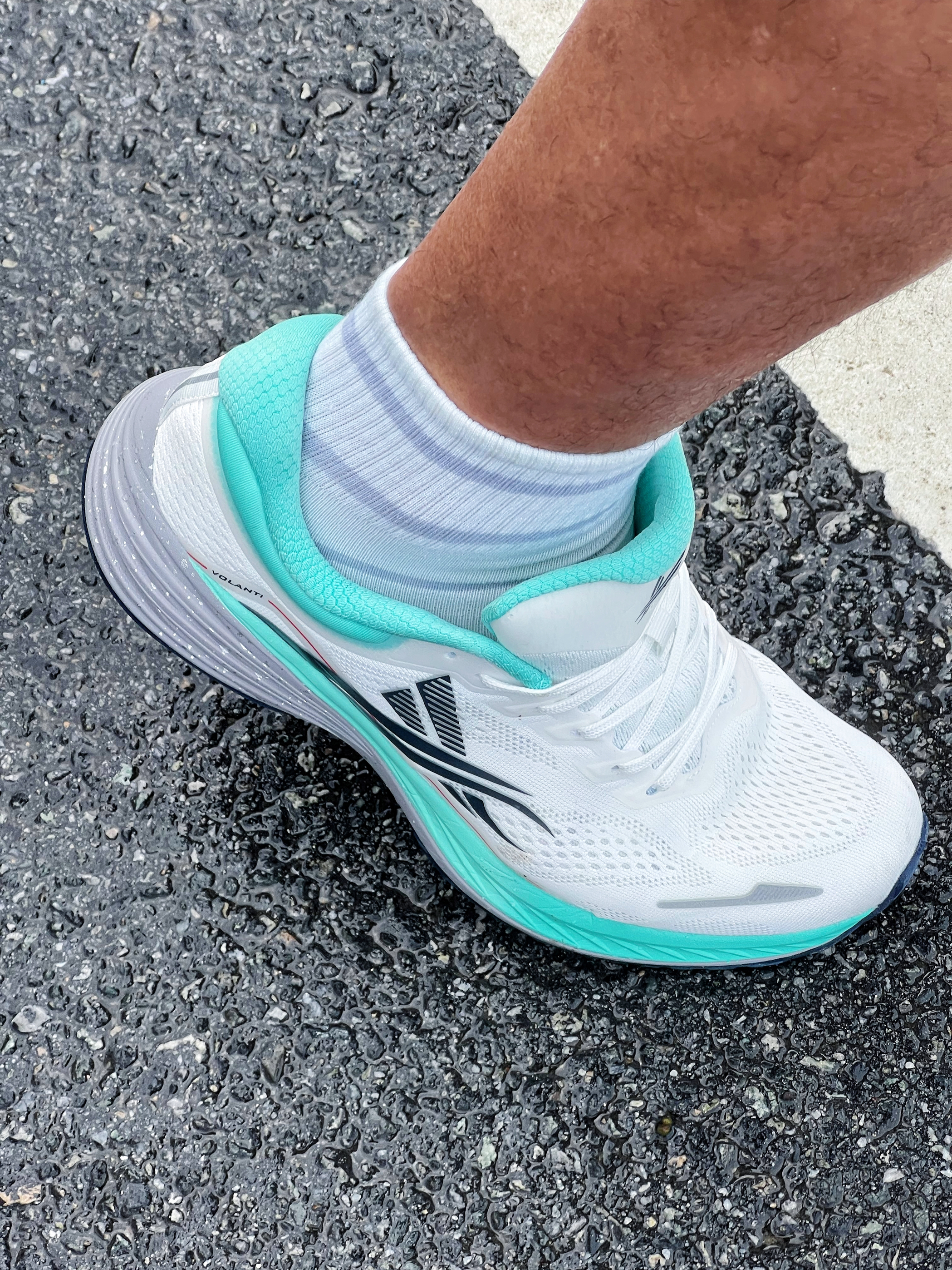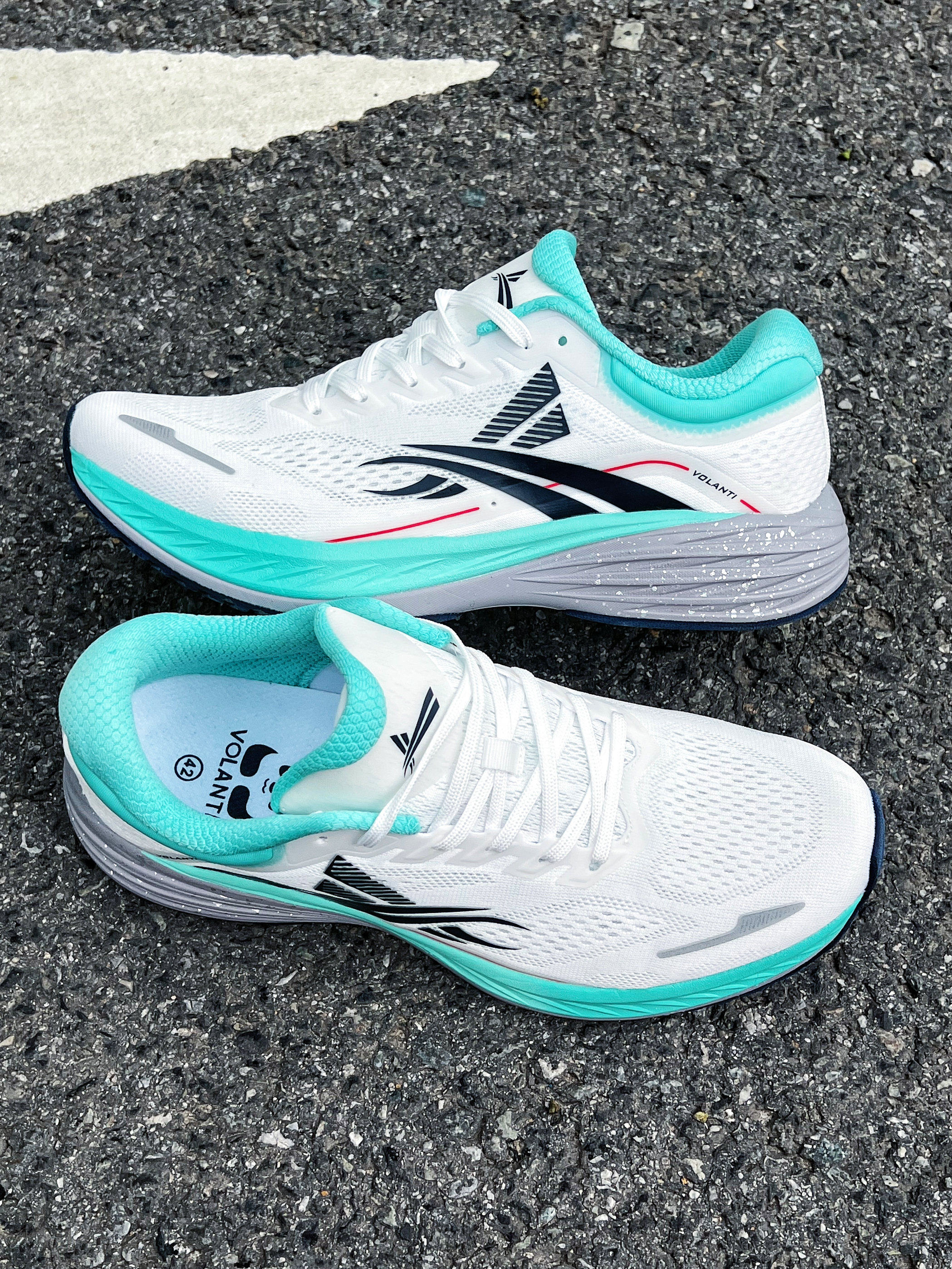 今天和大家带来一款平价高颜跑鞋 沃兰迪 通勤竞训 熊猫跑鞋 实物上脚体验了一段时间还是蛮惊艳的 首先鞋子配色干净清爽,很夏天~ 贾卡鞋面的舒适度和透气性不错 双密度飝轻弹中底脚感很韧弹 取消了碳板,使用门槛也更容易驾驭 对于青少年也可以很好的保护足弓 加宽前后掌,落地稳定性不错,大体重也适用 轻量耐磨橡胶底下雨天也能穿,操场or公路跑道都可 对于日常长短距离慢跑、通勤竞训问题不大 尺码不偏,正码