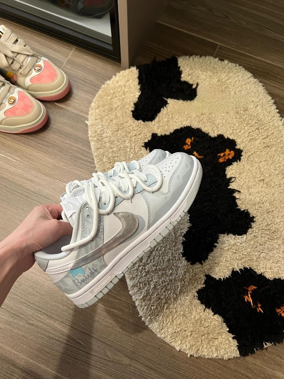 本篇笔记关联了【定制球鞋】 Nike Dunk 板鞋 平跟系带防滑耐磨做旧高街简约百搭潮流复古美式 高街浅灰蓝等商品,为用户提供真实的使用体验和购买参考。