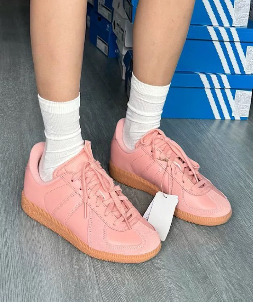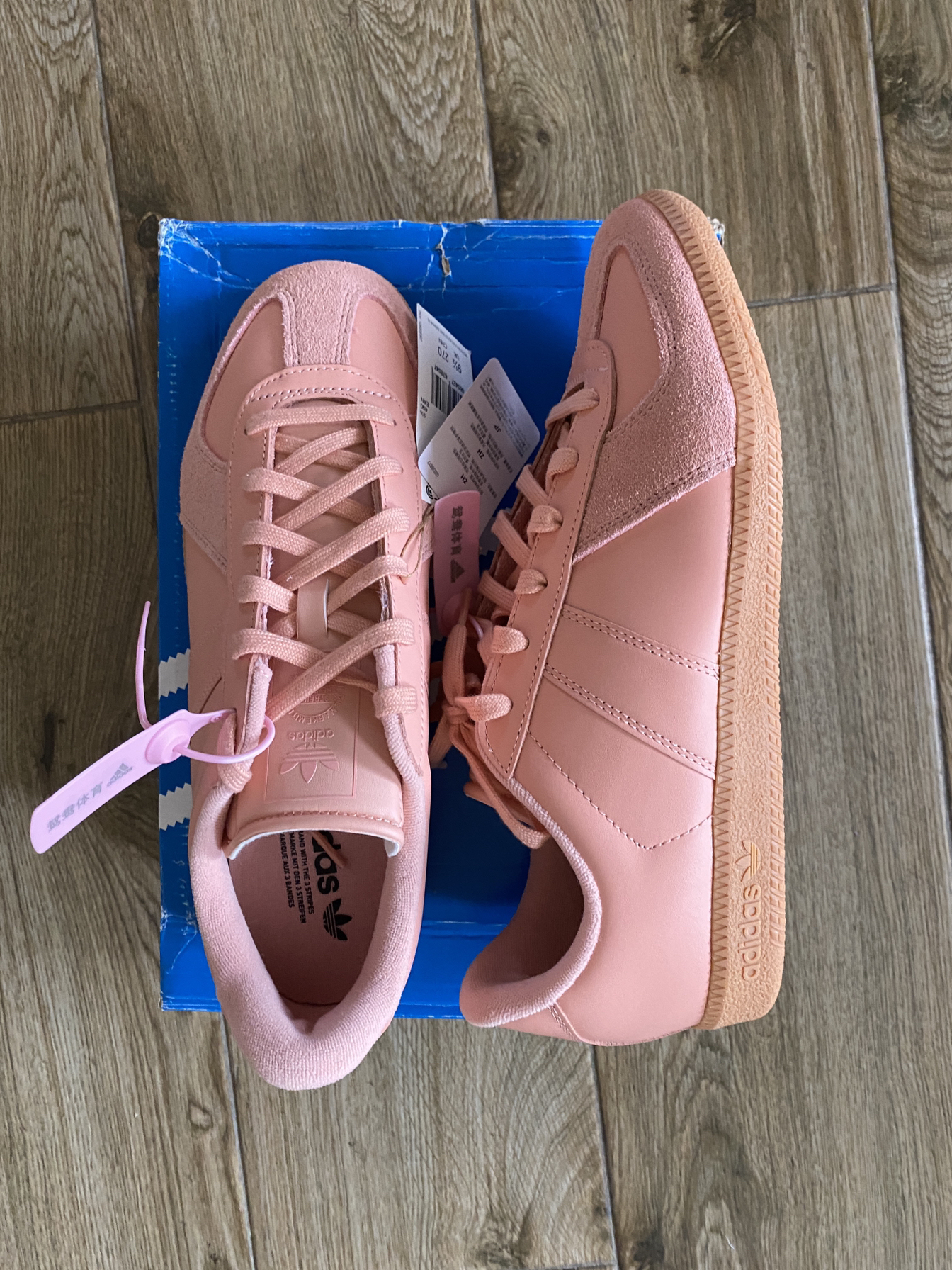简约造型,复古感十足。配色不同于平时的黑白或者白绿,整体粉色调子,更好拿捏色彩感。适合穿搭。 并且!最具性价比的价格,我的尺码只要一百多。阿迪达斯最热的复古鞋型,一百多的价格还能说什么。各位穿搭达人们买就完事了!