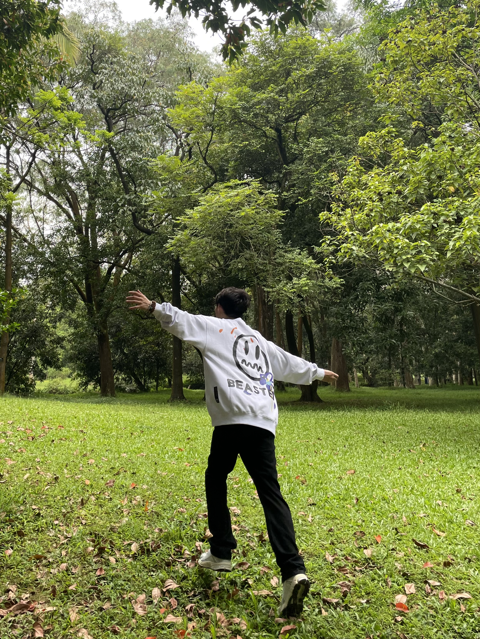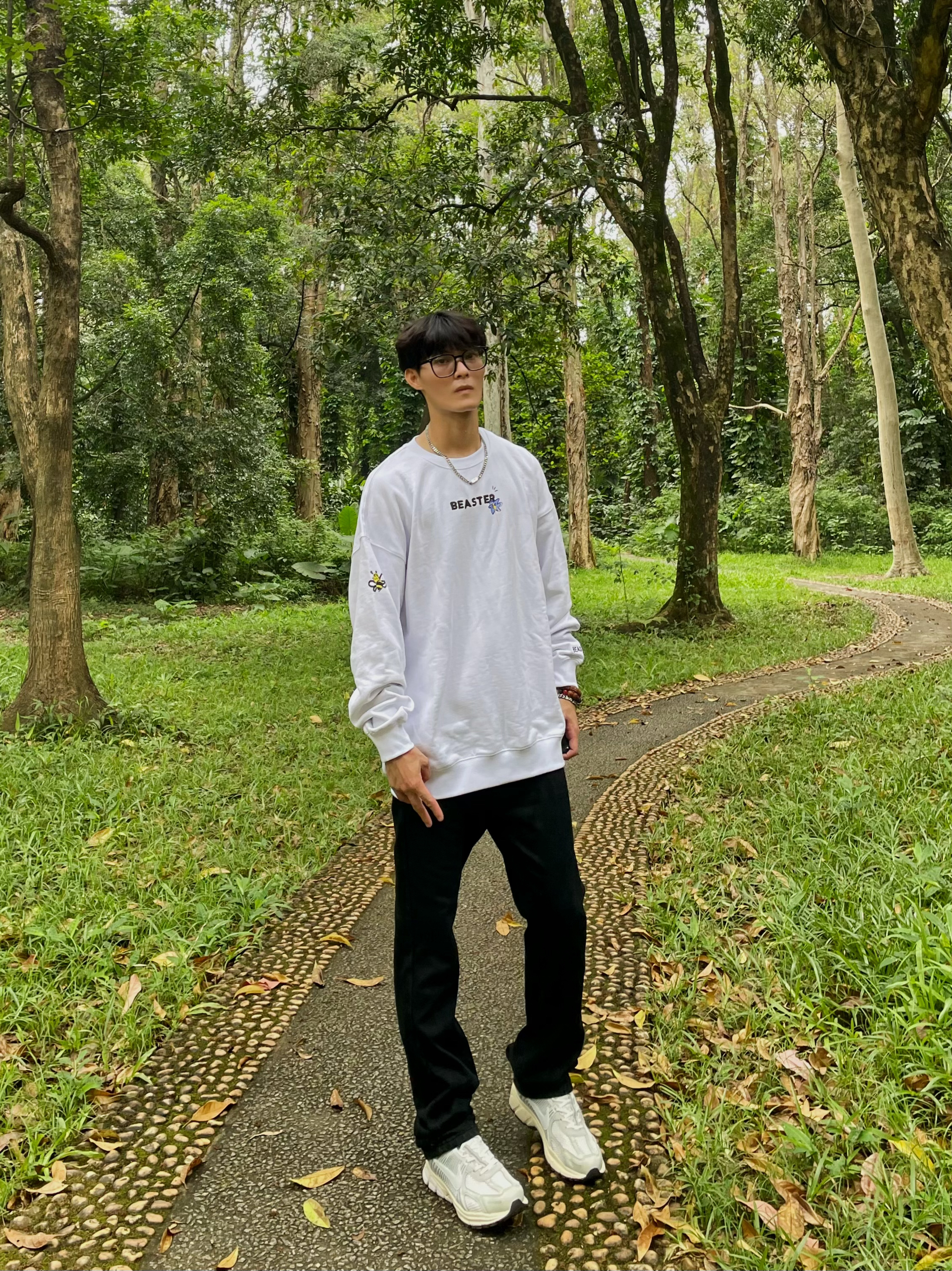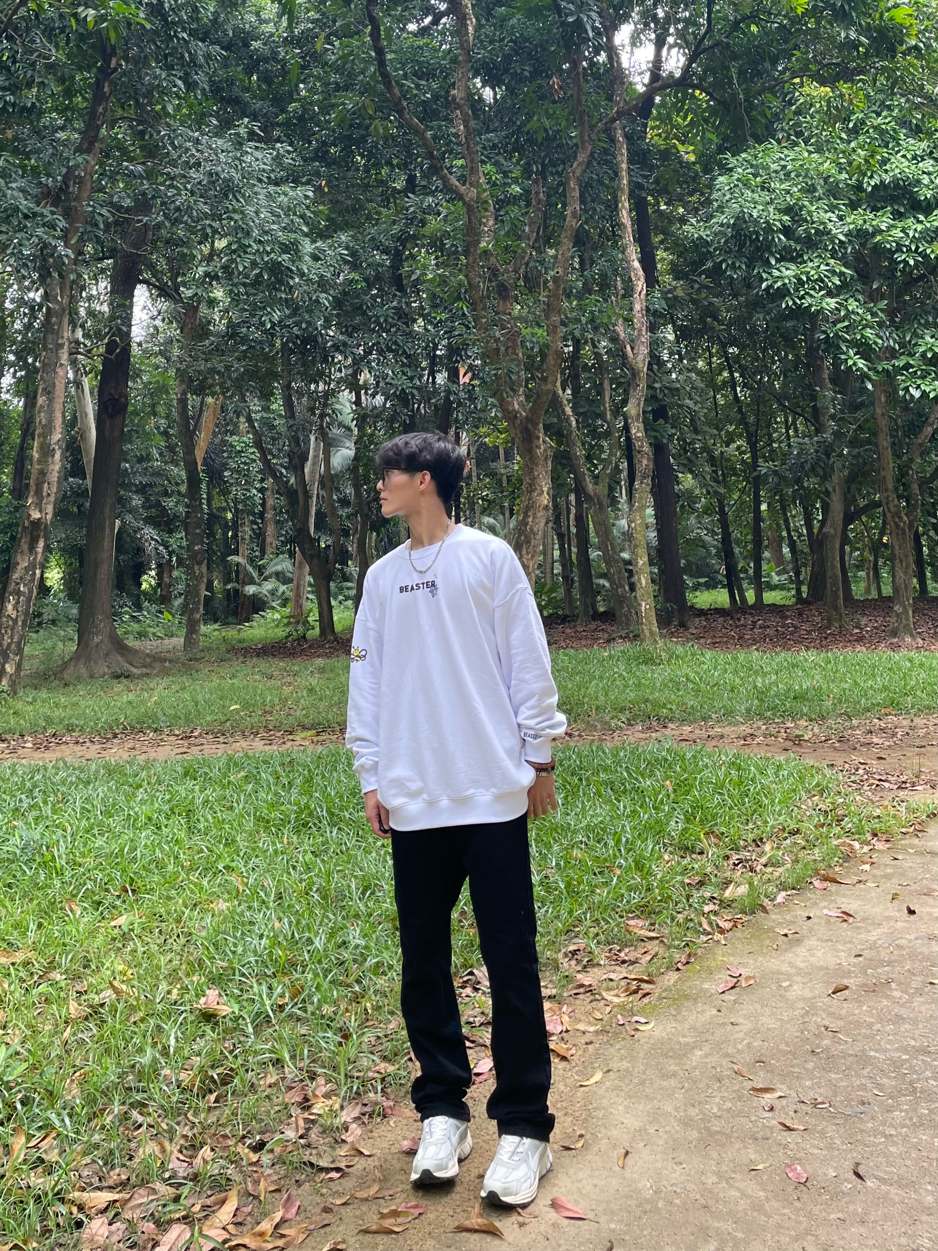 🌤️分享一下今天户外出行穿搭吧[干杯_blue] 🌳总得去一趟森林的沿行,穿秋季白色长袖很显白 — — — — — — — — — — — — — — — ①OOTD 👔小恶魔鬼脸笑脸印花卫衣 ,美式街头潮流风,面料厚实手感非常柔软,上身非常百搭通勤 — 👖黑色美式高街牛仔裤,直筒简约基础微喇款式,非常显瘦显腿长,日常搭配百搭又休闲 — ②tips✨ 秋季上白下黑的搭配,更加舒适自然百搭,万金油...