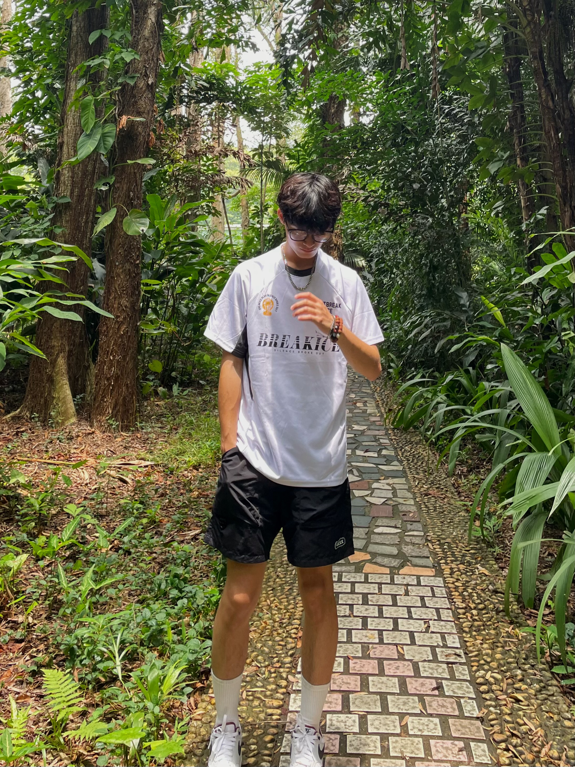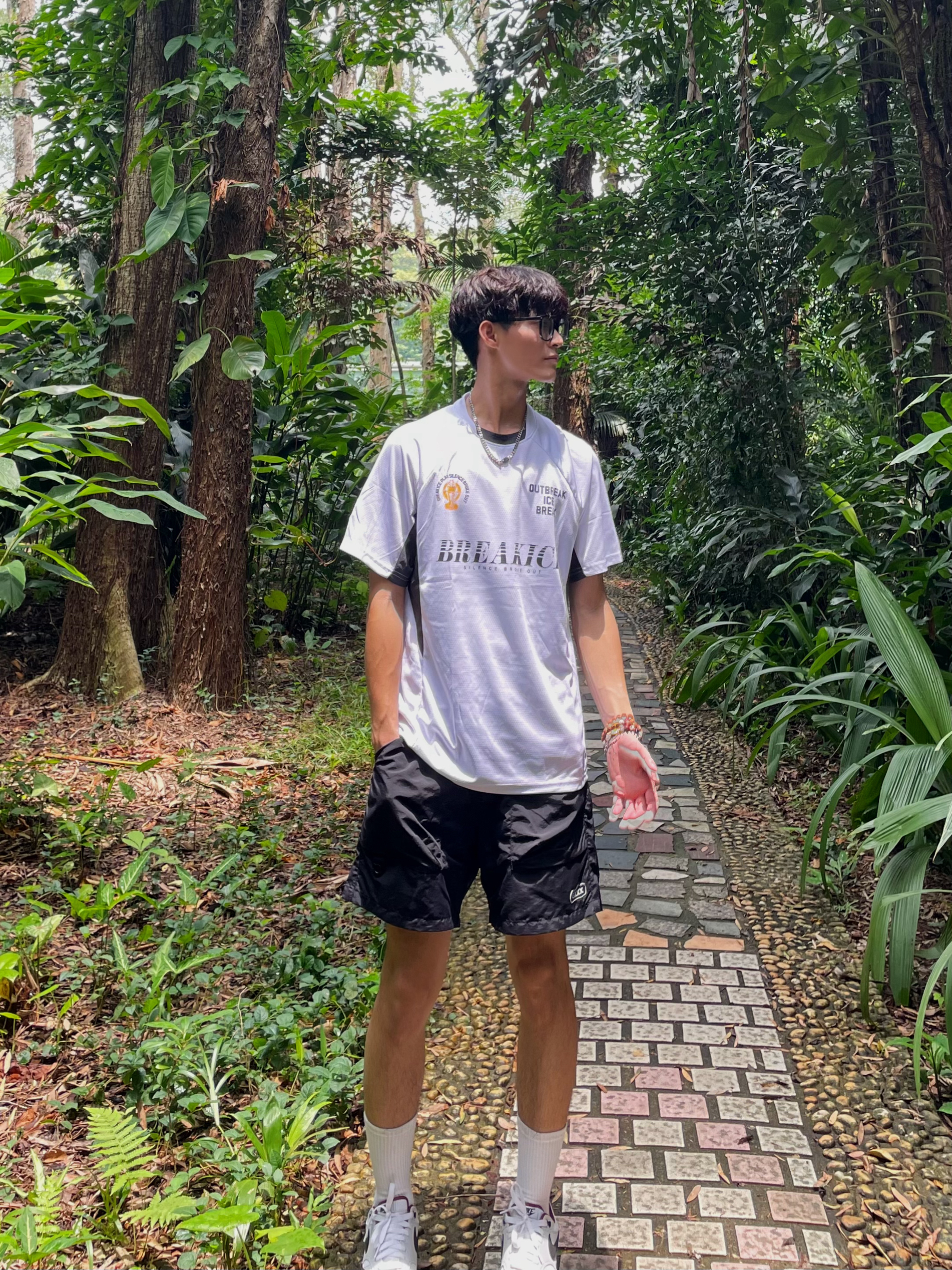 ☀️分享一下今天户外出行穿搭吧[暗中观察_blue] 💨感受森林深处自由,穿美式短袖很绝 — — — — — — — — — — — — — — — ①OOTD 👕破冰美式冠军运动短袖T恤,足球服设计款式,宽松休闲的版型,面料舒适速干透气性强,平时训练健身运动打球都可以穿 — 🩳 美拉德黑色工装裤,面料速干透气性好,宽松系带休闲板型,户外百搭五分裤,男女同款 — ②tips✨ 上白下黑的夏季搭配...