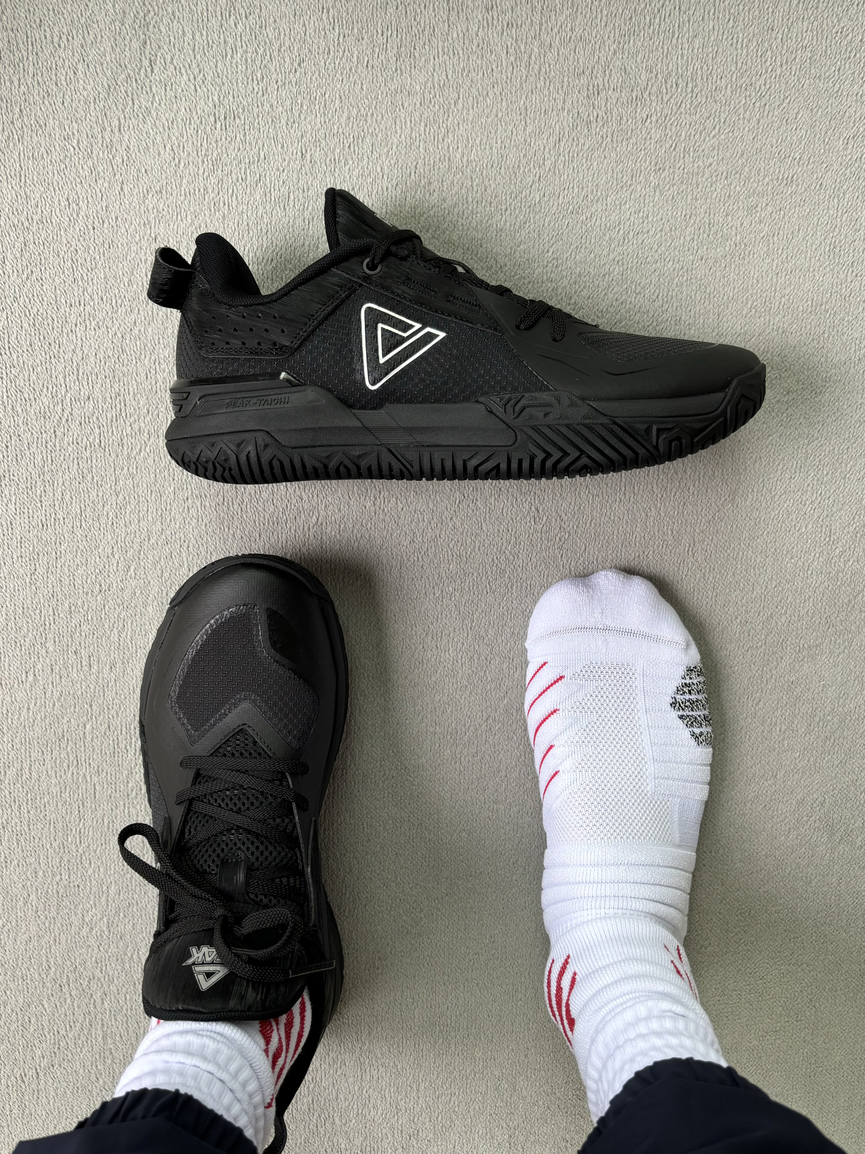 👟球鞋名称:AdidasPro bounce2018 🧍♂️穿搭简介:短袖➕短裤运动风➕白袜 (鞋款上脚感受,穿搭场景分享,风格分享) 🔍分享理由:全黑篮球鞋,非常耐脏,而且适合特殊职业需求,当别人还在穿又硬又难看的黑色胶鞋时,你已穿上了比较舒适而且适合运动的篮球鞋👟,想想就开心,而且这双鞋打球非常合适,属于水桶鞋,没有特点,全能位置都能打。耐磨性也还可以。 🤔整体感受:200党首选