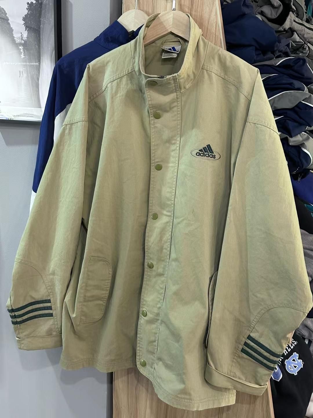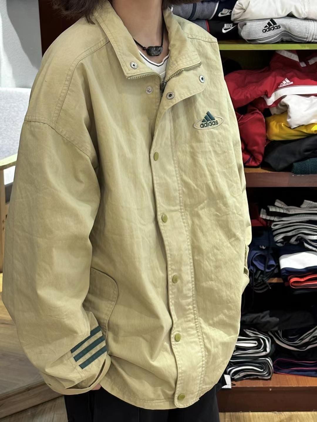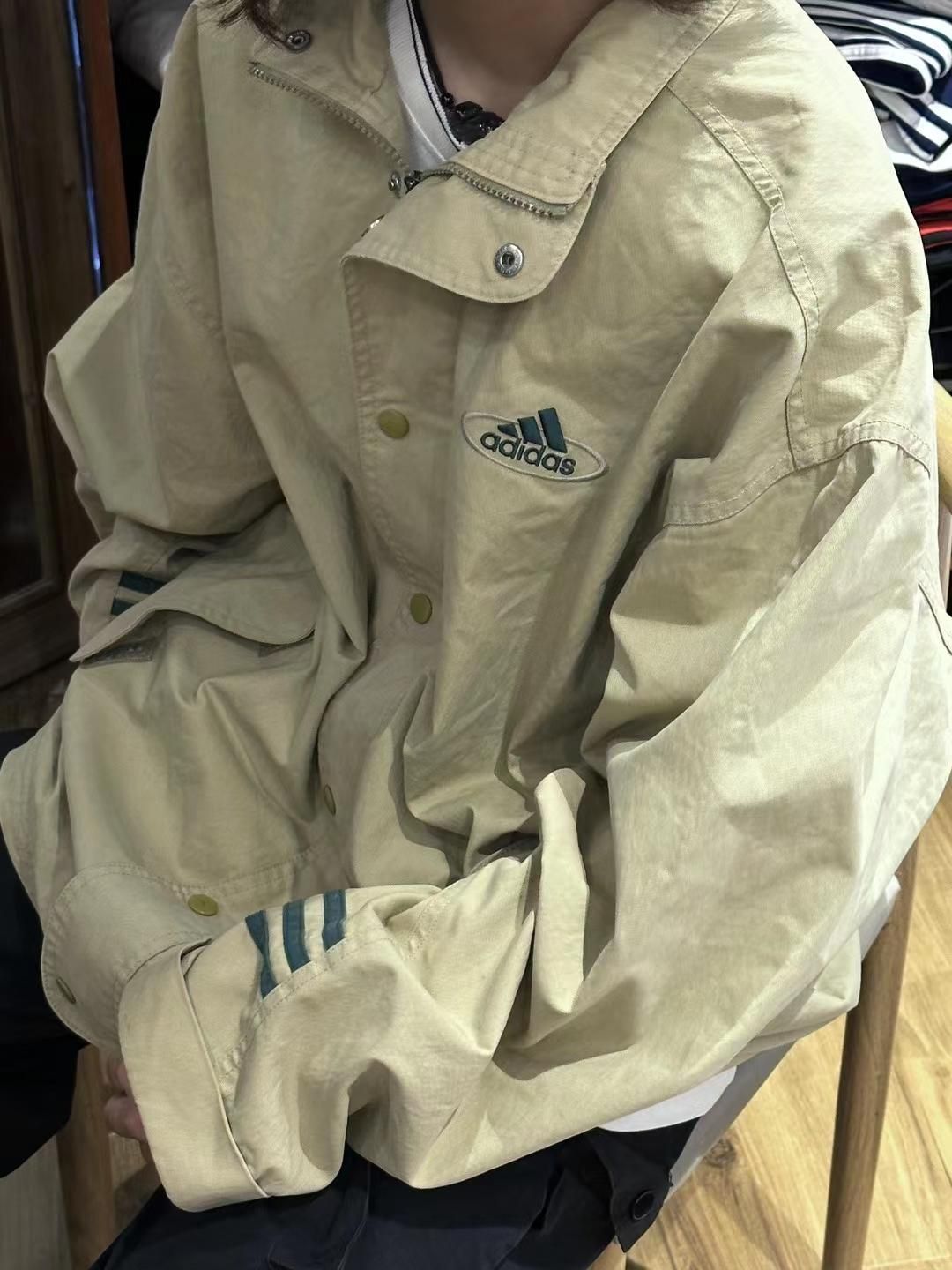 这款韩版古着夹克真的超显型啊!古着孤品,有点小帅啊,可惜没找到很多古着外套,更显小众了啊,真的特别爱这种无帽的夹克外套哎,古着外套真的超高回头率哎!真的超级推荐早秋穿搭!