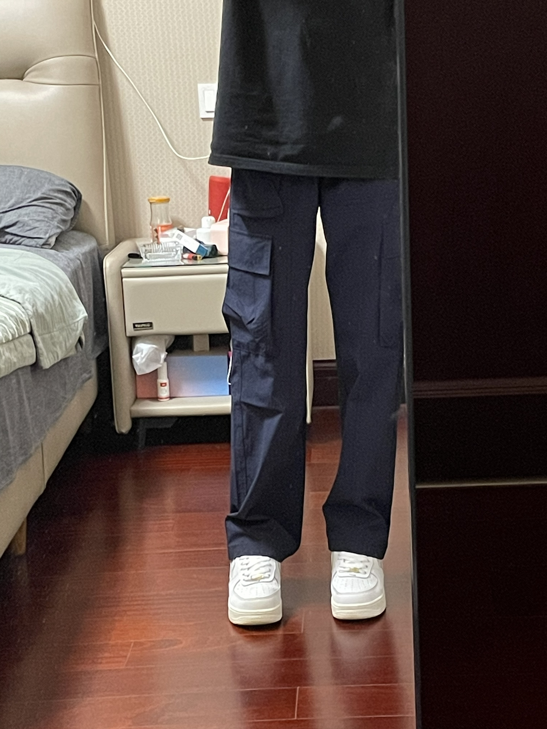 啊啊啊啊好喜欢这一身,藏蓝色工装裤真的太顶了!直筒的版型,上身好帅!穿着显瘦还显高显腿长的,日常随便搭配一个板鞋就很好看了,最近疯狂种草!爱上了!