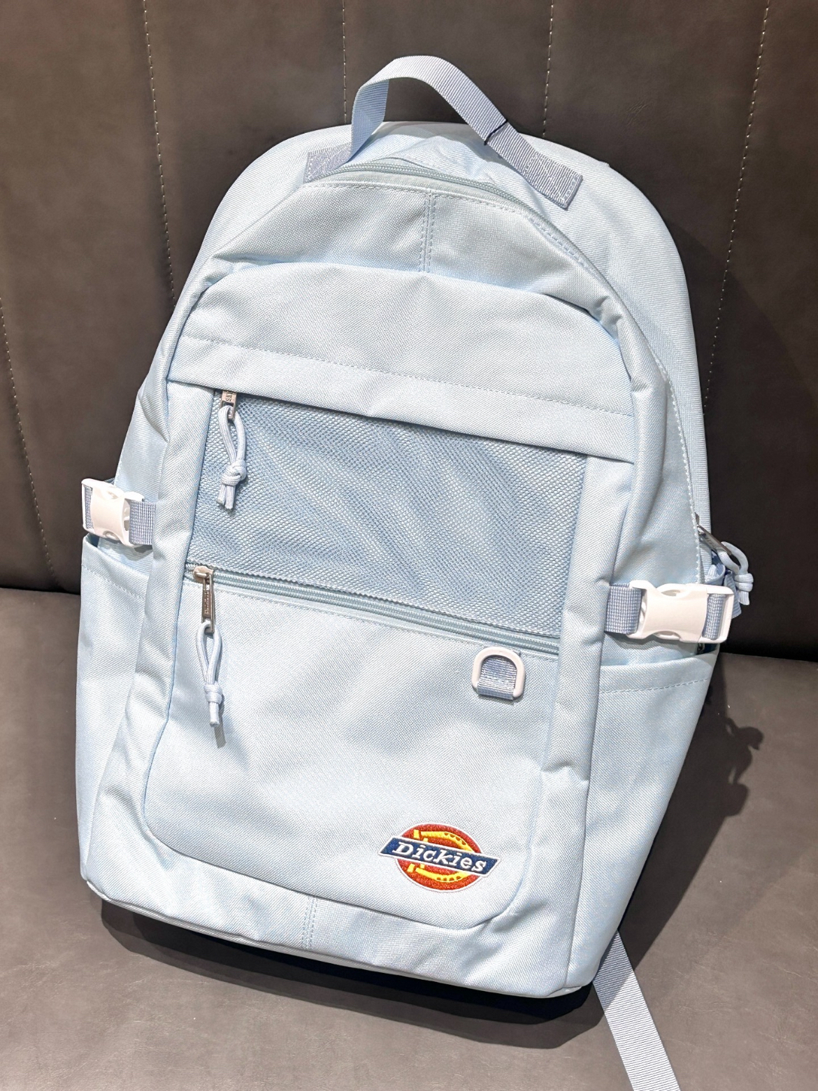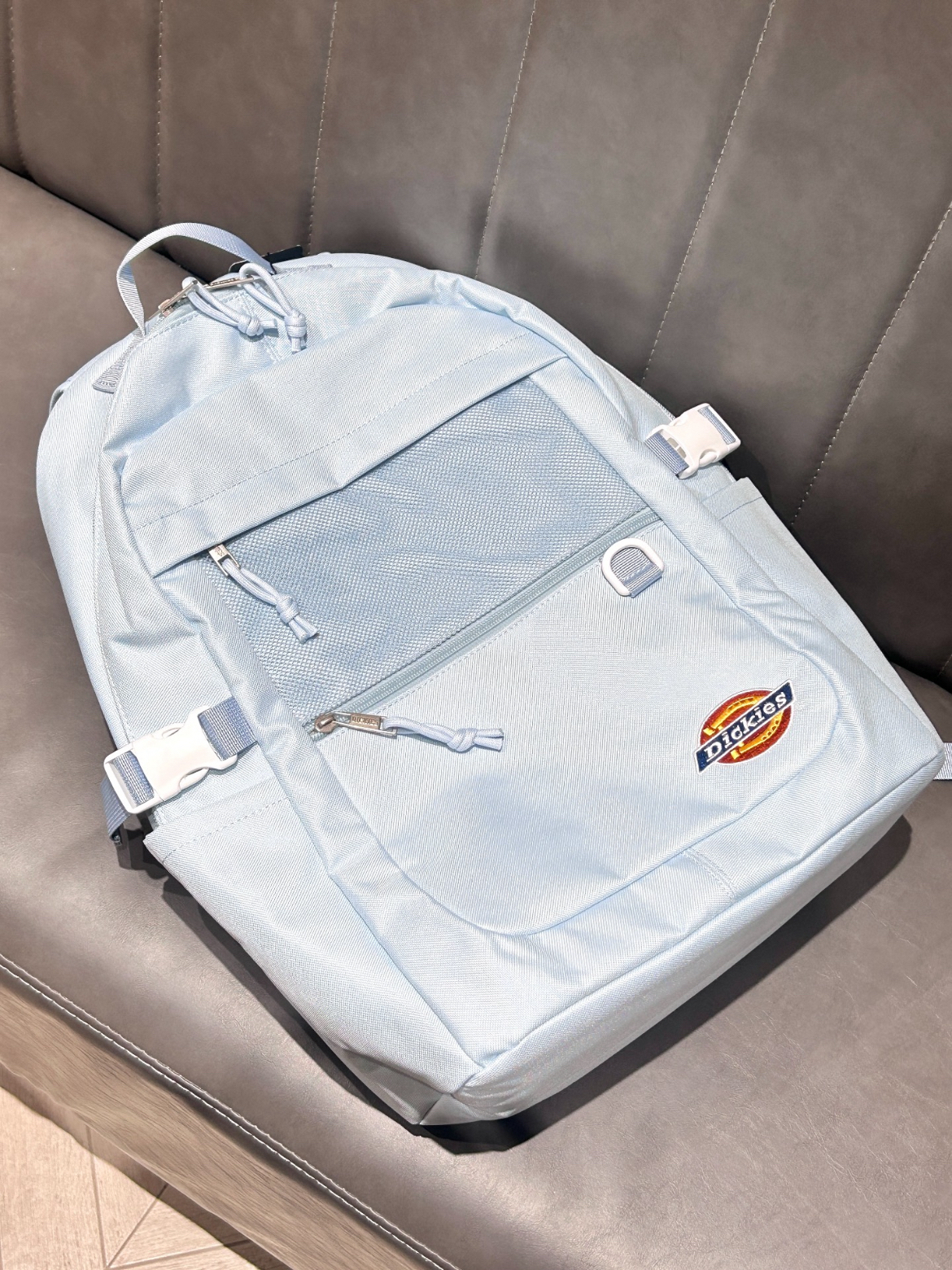 开学季马上要来噜当然少不了新书包啦 Dickies双肩包的配色真的好懂女孩子奶呼呼的baby蓝真的好元气少女我觉得容量对于学生党来说足够了放下课本笔袋ipad啥的还有蛮多余量侧兜可以装下我的水杯或者雨伞背带也是加宽设计不会勒肩膀 我觉得搭配短袖或者校服啥的好青春!
