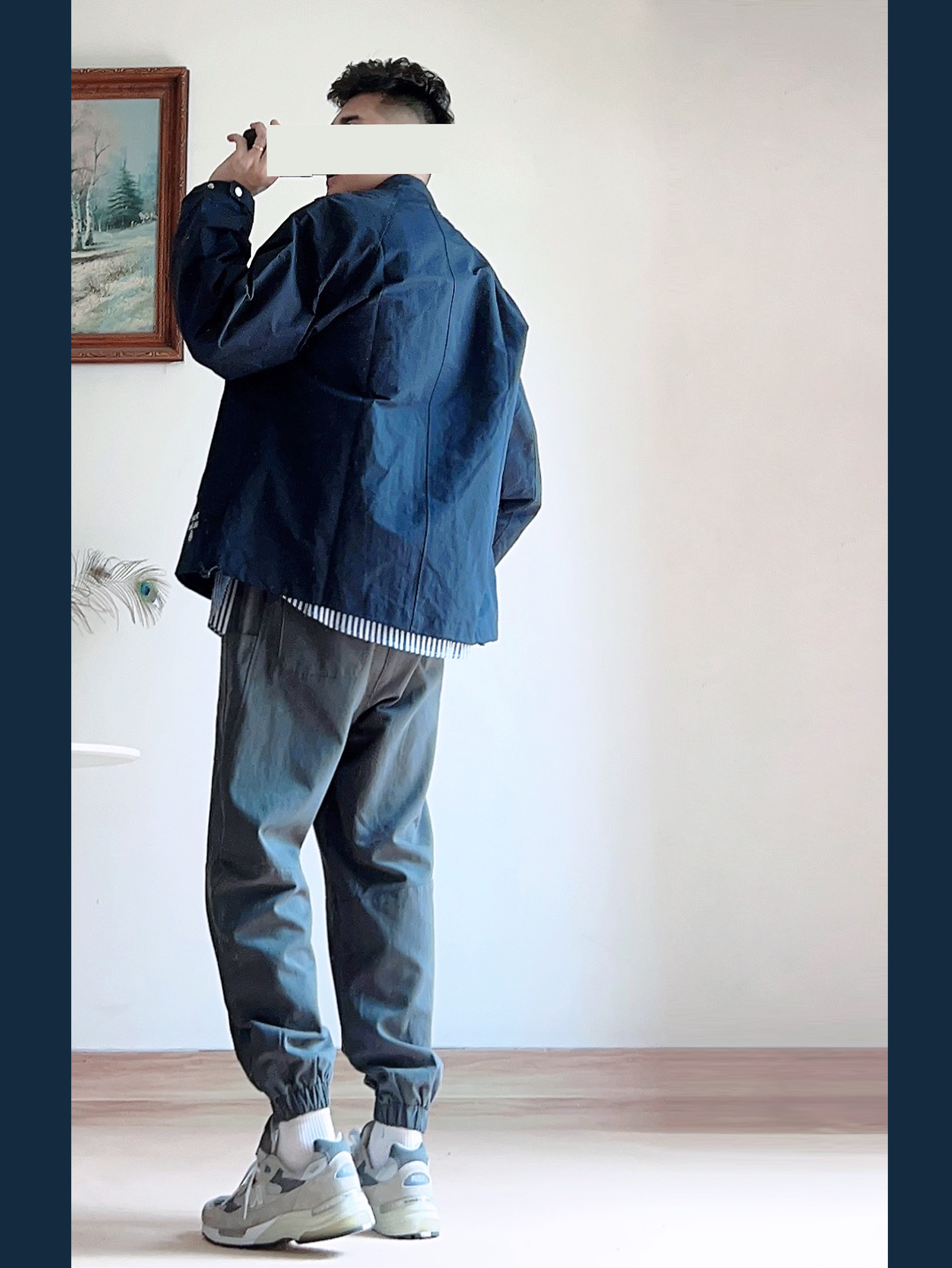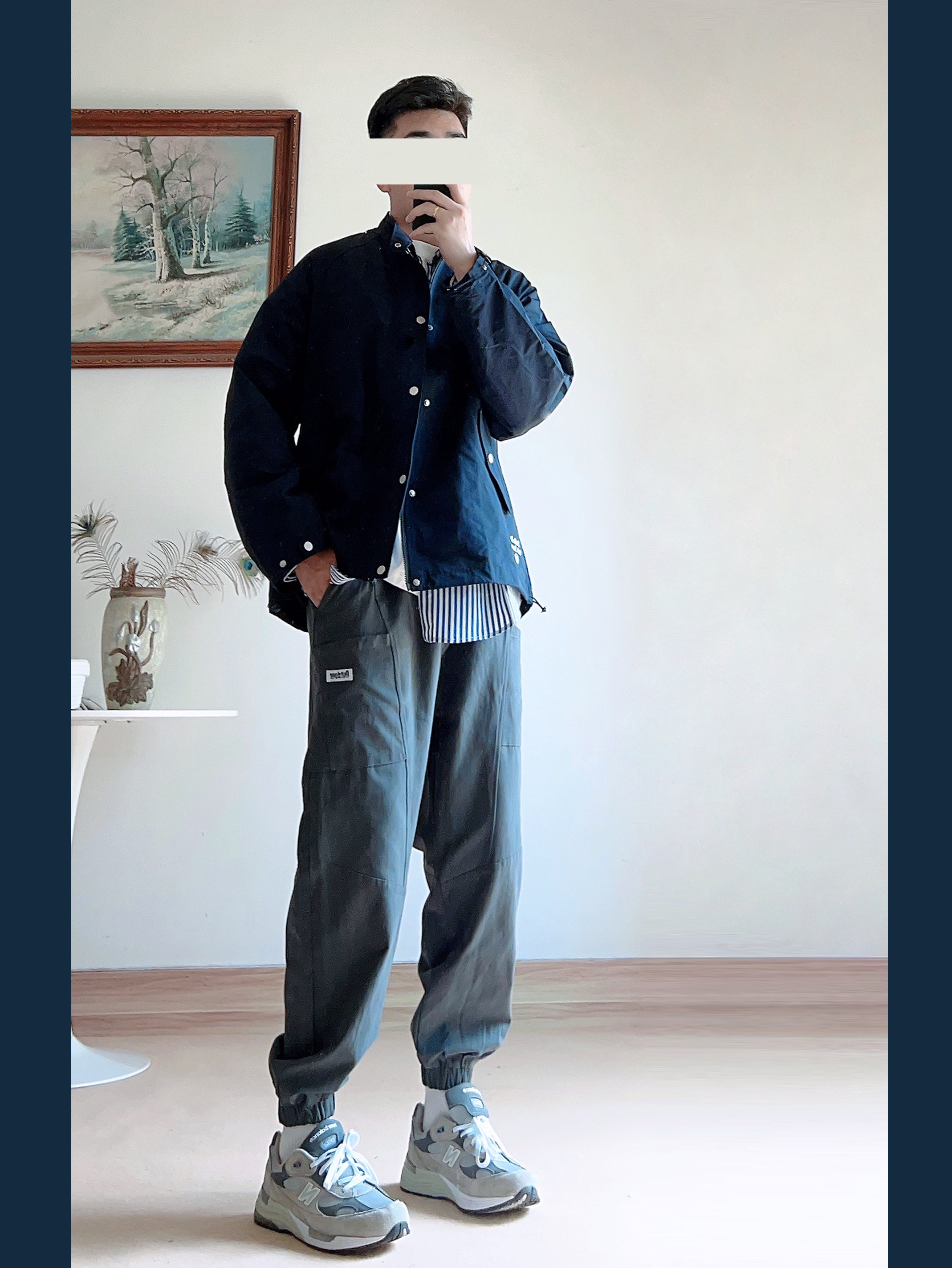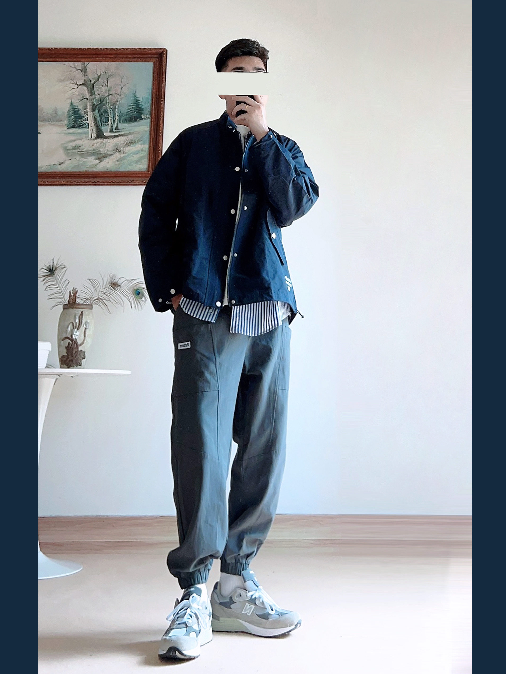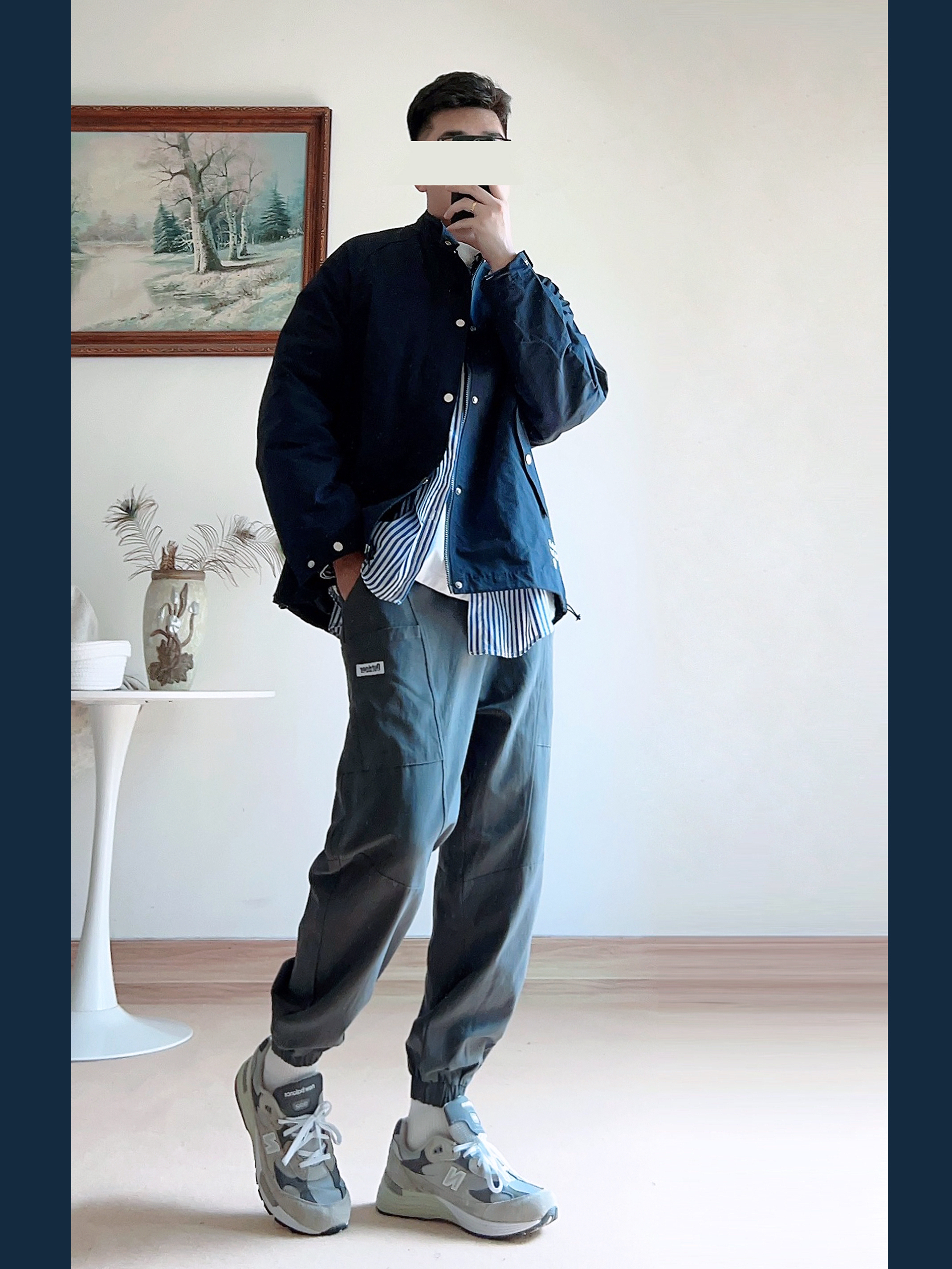 降温穿搭来了! 20度的天气穿这套舒服又帅气 无论是日常通勤、还是约会穿搭都🉑️驾驭! 藏青色立领工装夹克、干净利落显精神~ 叠穿薄款条纹衬衫做点缀👔 丰富层次感的同时又显精致👍🏻 最后选择一条工装束脚工装裤搭配复古运动鞋👟 Cityboy的痞帅感与工装硬汉感融合起来 秒变帅气、运动、干净阳光大男孩😁 -