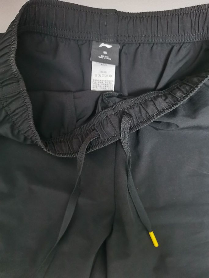 这款运动短裤穿起来清清凉凉的,梭织面料非常透气,没有束缚感,随性休闲,非常透气,运动后不用担心闷热,透气速干。这款裤子的抽绳在里面,裤腰是松紧腰,不用担心掉落;裤兜是网眼的但比较结实,而且外面带拉链,妈妈再也不用担心掉落钥匙了。纯黑的颜色,随便一件衣服就很百搭,日常通勤或者户外运动都很👌的。