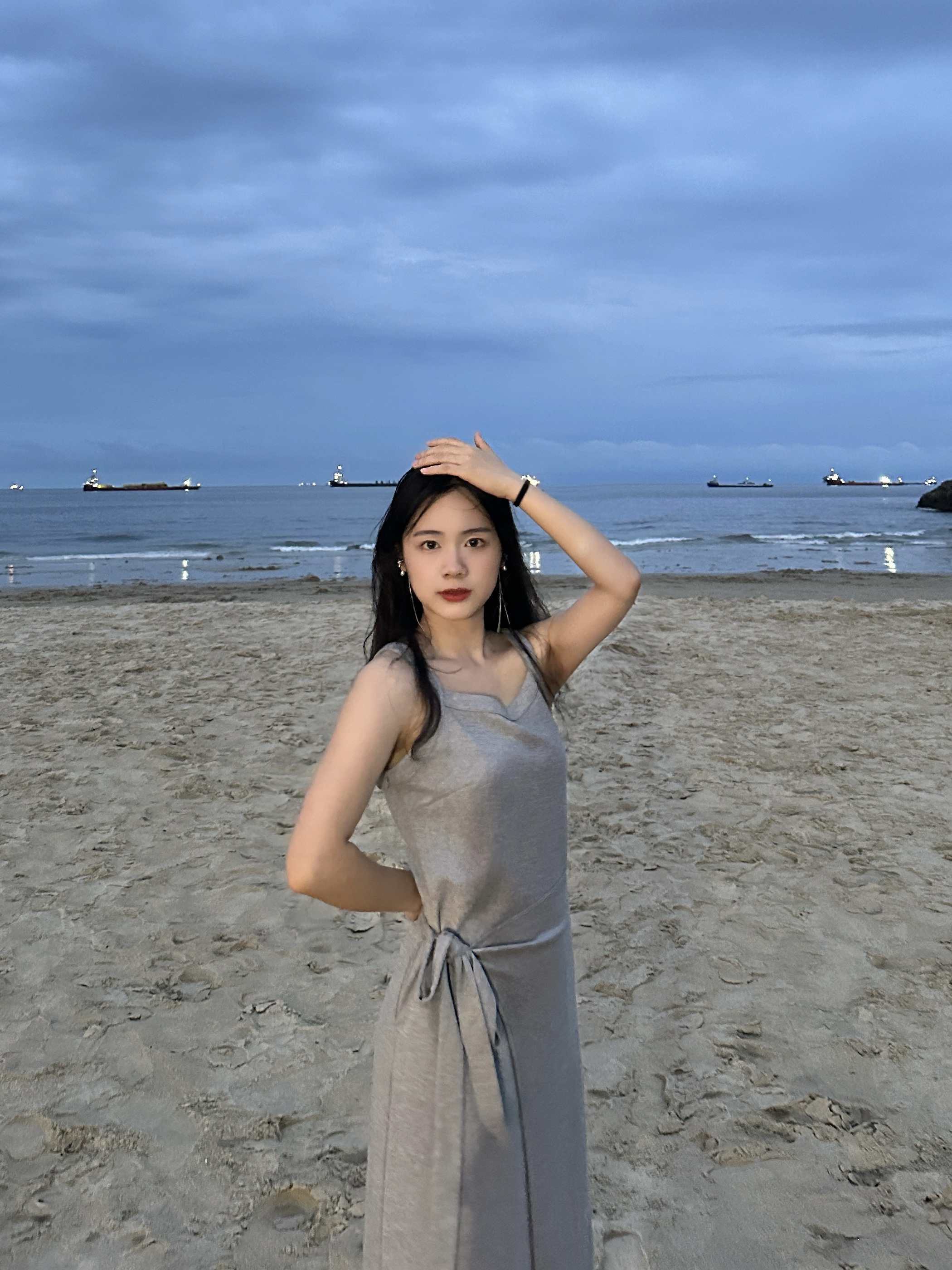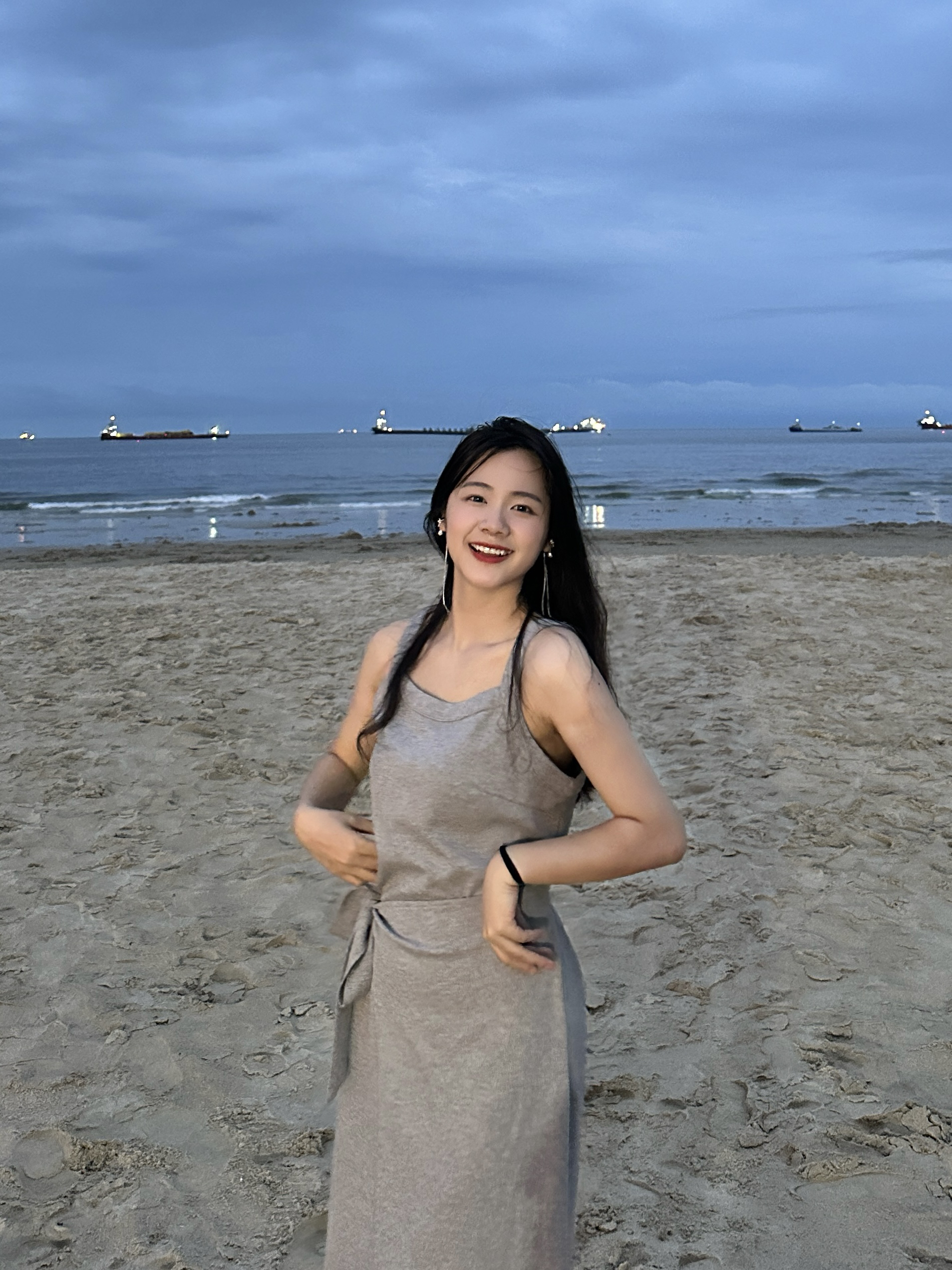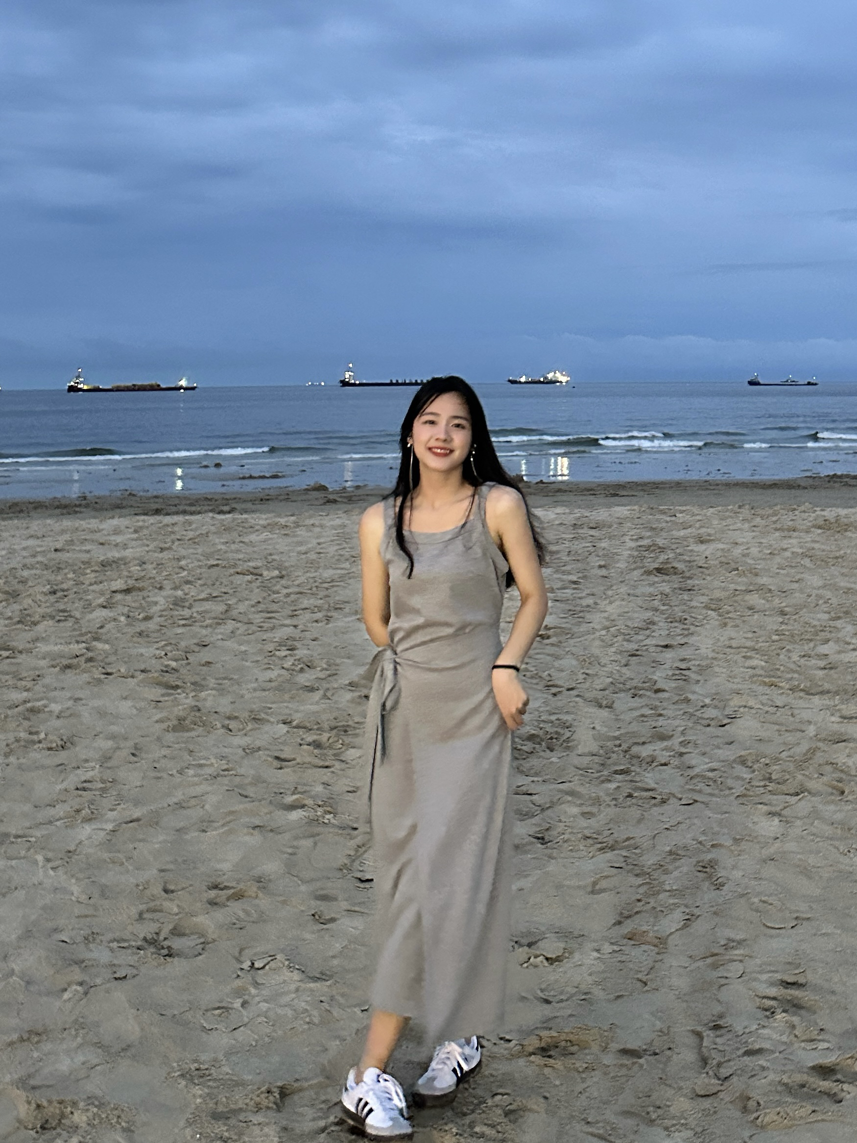 海边好适合穿连衣裙的说,好喜欢这件灰色连衣裙,日常穿也很ok~