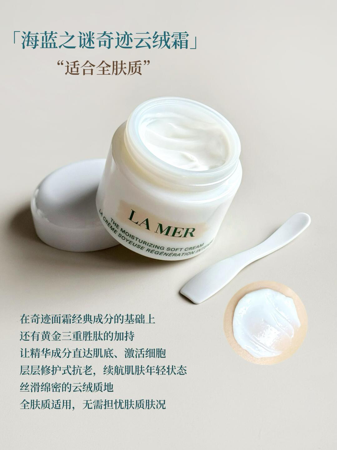 本篇笔记关联了LA MER/海蓝之谜 奇迹面霜 淡纹抗老紧致焕颜舒缓保湿滋润修护 经典面霜等商品,为用户提供真实的使用体验和购买参考。