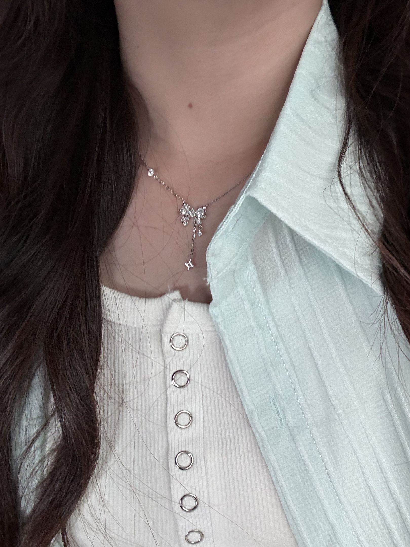 女孩子就是要有很多漂亮的小首饰!! 没想到男朋友这次送的项链这么美~ 一整个白开水的感觉 清冷感十足! 真的跟它的名字一样一见钟情了🥰 外圈的玫瑰花瓣包裹着一颗闪闪的锆石 超有设计感✨ 配低领的衣服 夏天的小裙裙👗 冬天的毛衣真的太有氛围感了!! 听我的!恋爱戴范琦 !
