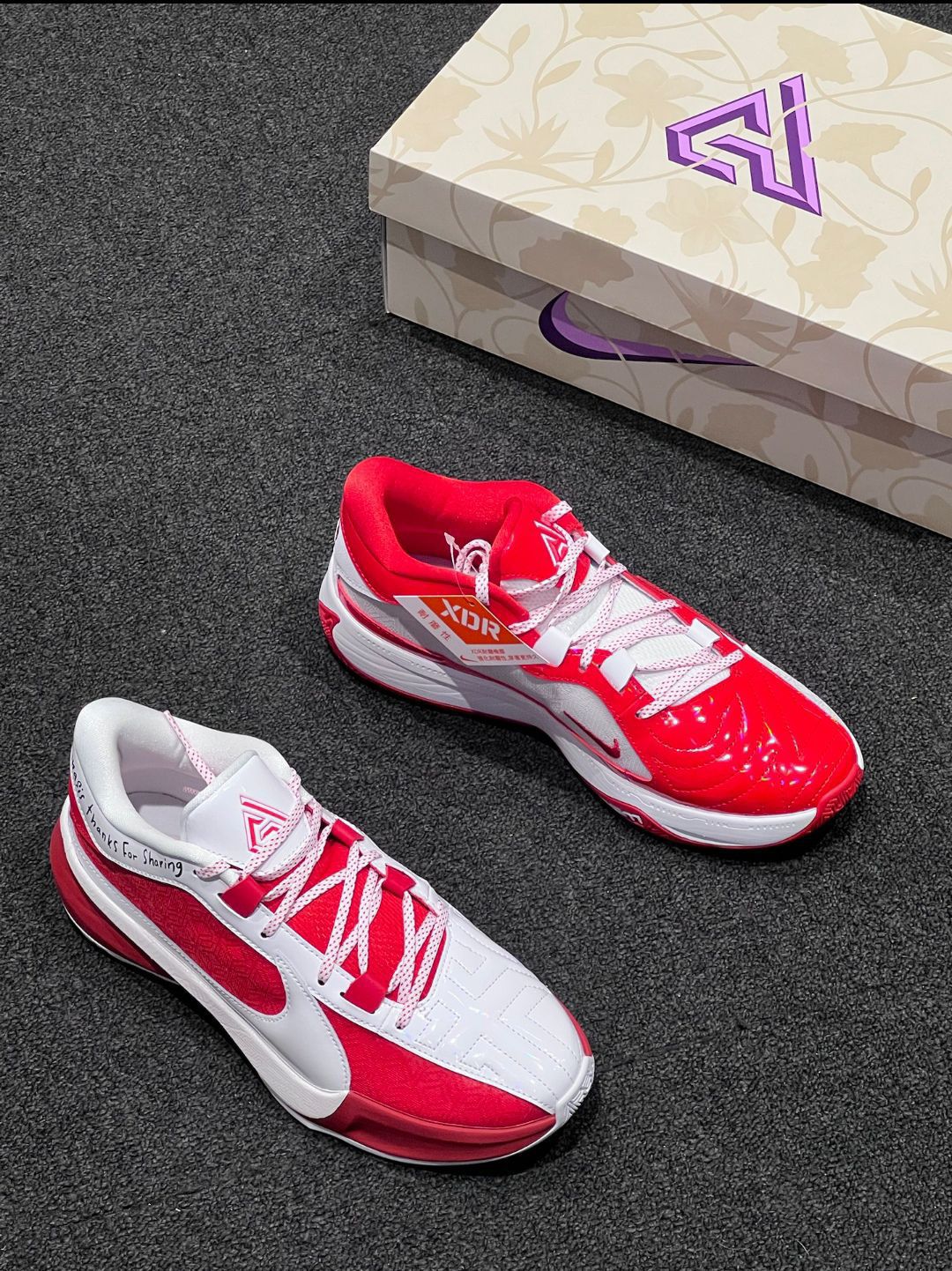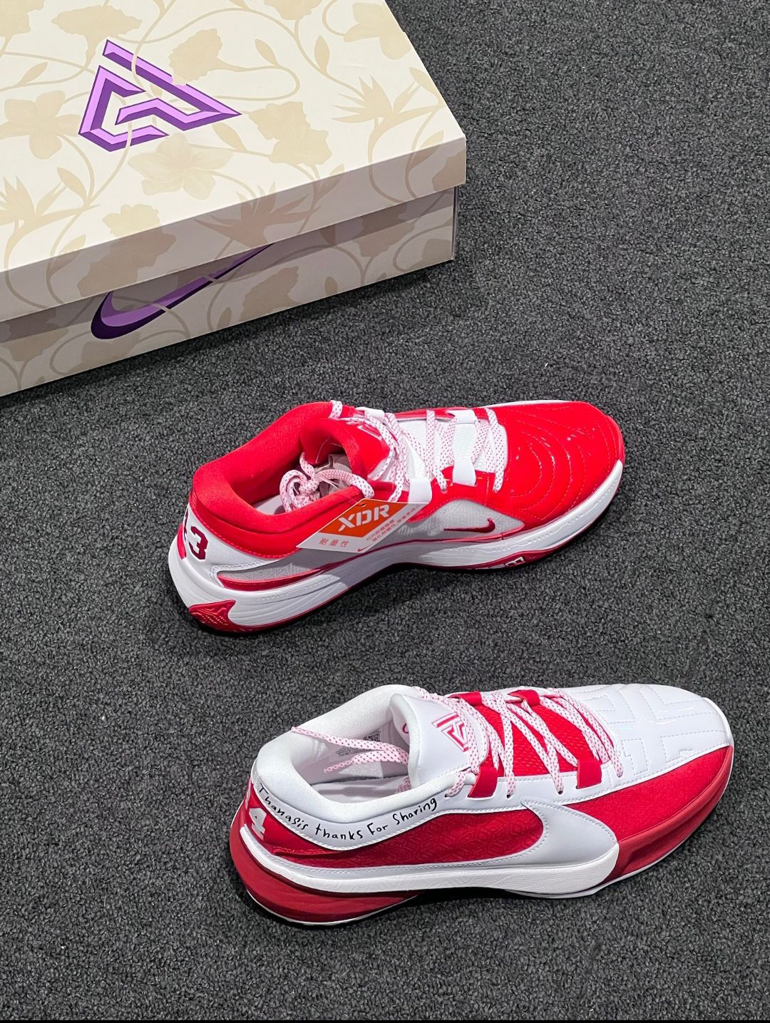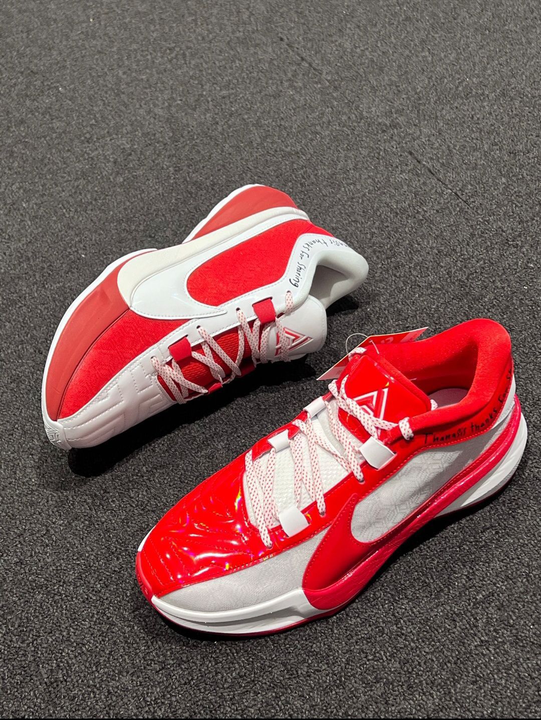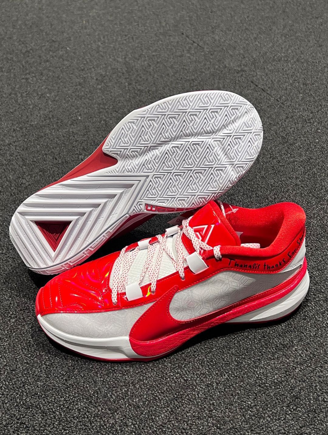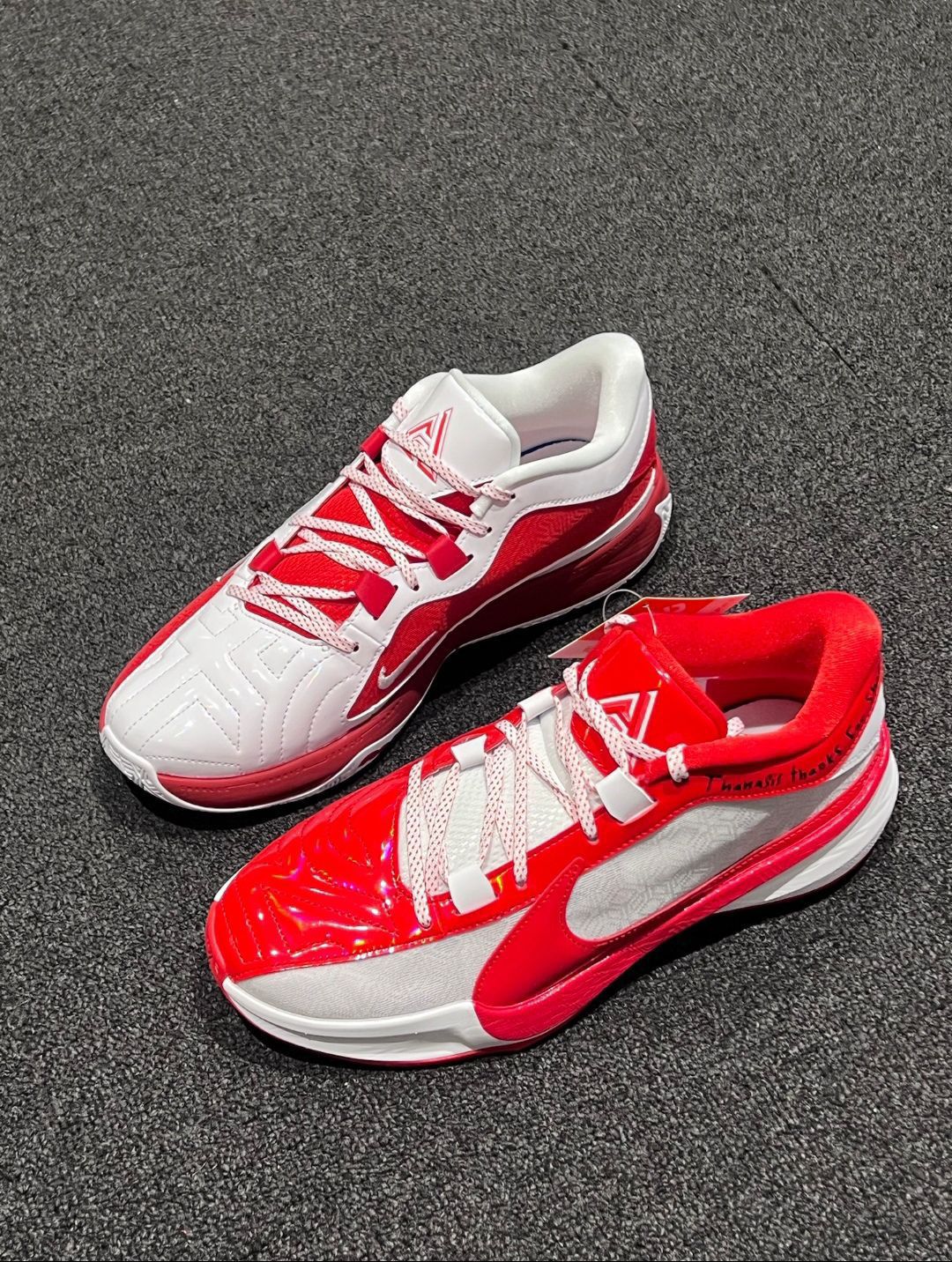 ⭐️Nike Zoom Freak 5" All - Star " 采用白红色鸳鸯设计,后跟处有字母给哥哥塔纳西斯的手写标语 " Thanasis thanks for sharing ",后跟分别有塔纳西斯的球衣号码"43"和字母哥的球衣号码"34" 前掌 ZOOM AIR 气垫配置 CUSHLON 中底泡棉 鞋底 SMERA 科技加持提升抓地力表现内置动态贴合系统,提供轻质包裹 ...
