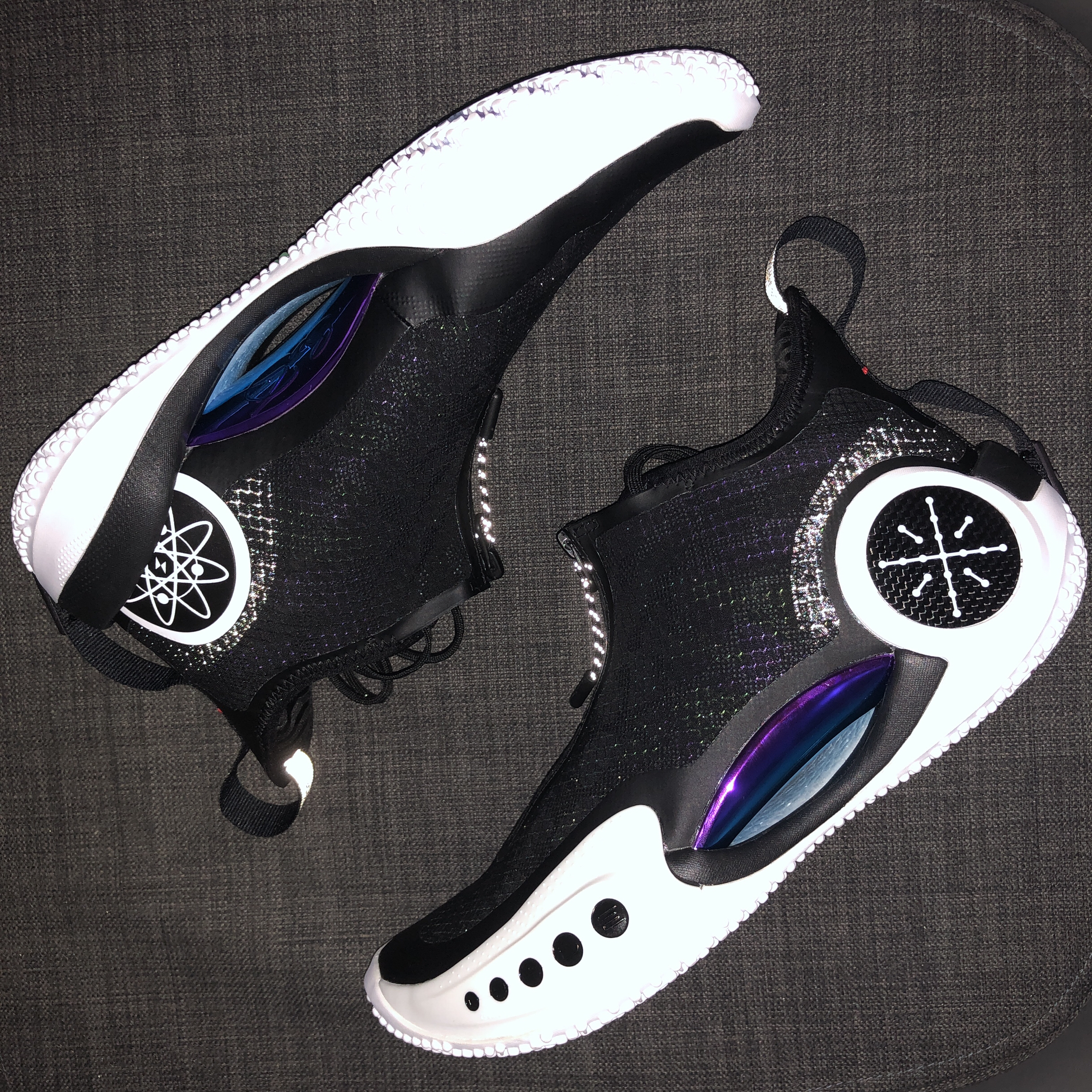 滚动感,非常强烈,稍微有启动的意图,球鞋就会推着你往前冲,会省不少的力量,防滑表现优秀,在室外有灰的浮空地板也能稳稳的,给你满满的安全感,外底前掌的磨损还可以,没有想象的那么差,我是宽脚高脚背,刚穿的时候会有压脚面的感觉,打了一会以后,这个感觉会越来约小,前掌缓震够用,鞋垫的前掌那个凸起设计,我觉得会有点硌脚,换了一副鞋垫,即解决了硌脚也稍微加强了一下前掌的缓震脚感,是一双突破党的好鞋