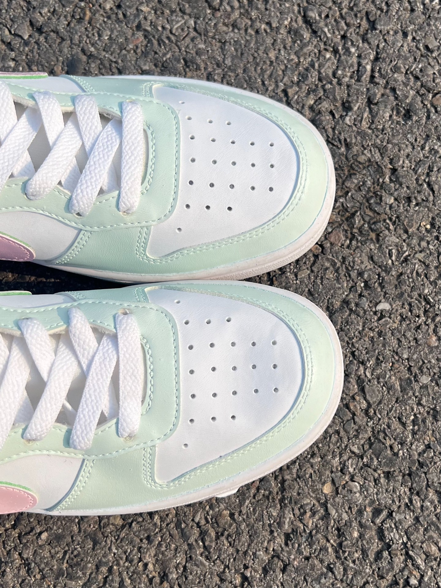又是为court板鞋心动的一天 鞋身很干净,白色主色调 薄荷绿和粉色点缀 我觉得平日里配上牛仔裤、裙子就很好看 鞋型蛮秀气的,显脚小 立秋就喜欢穿这种浅浅的低饱和色系 #七夕穿这双去约会 #穿这双鞋做回小公主 #硬控我的百搭好鞋 #穿这双去巴黎 #穿这双才显高显瘦 #搭遍所有裙子的鞋