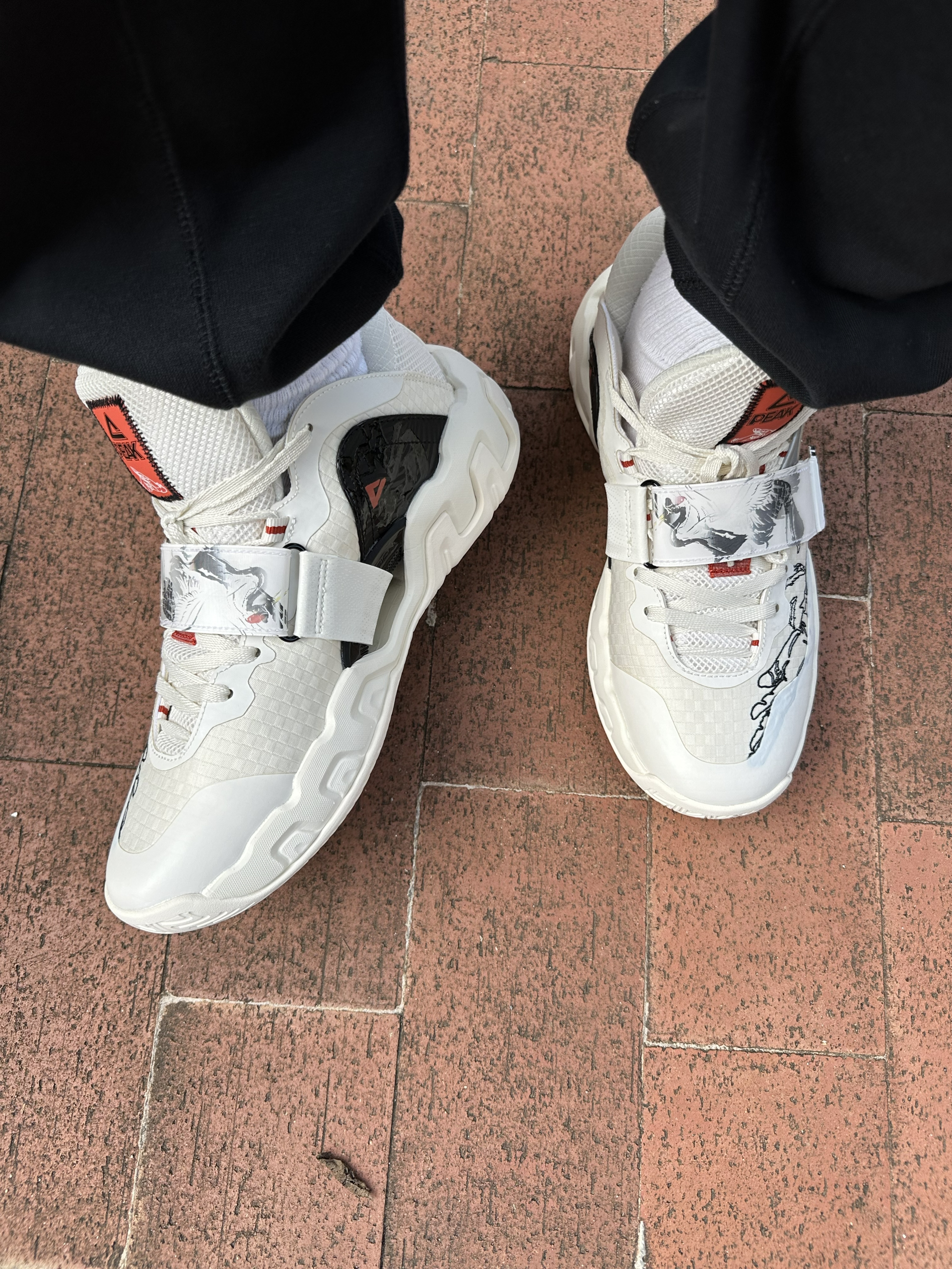 最近上脚了这双岩武1.0v2 虎鹤双行,这个魔术贴可以说是最大的亮点了,不仅有点题的水墨画设计,而且还是这种环绕式的魔术贴。通常魔术贴有两种,一种是一头缝在鞋面的,另一种就是这种环绕式的,我个人脚背略高,更喜欢这种环绕式的,穿起来更舒适贴合,那种一头缝在鞋面的魔术贴,经常出现贴不全,或者是贴的不服帖的问题。 尺码的话不偏码,按其实穿的匹克球鞋尺码选择就行。脚背特别高的话还是建议买大一...