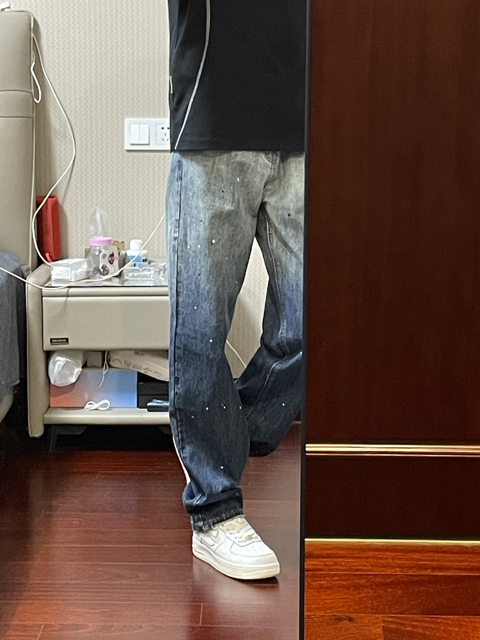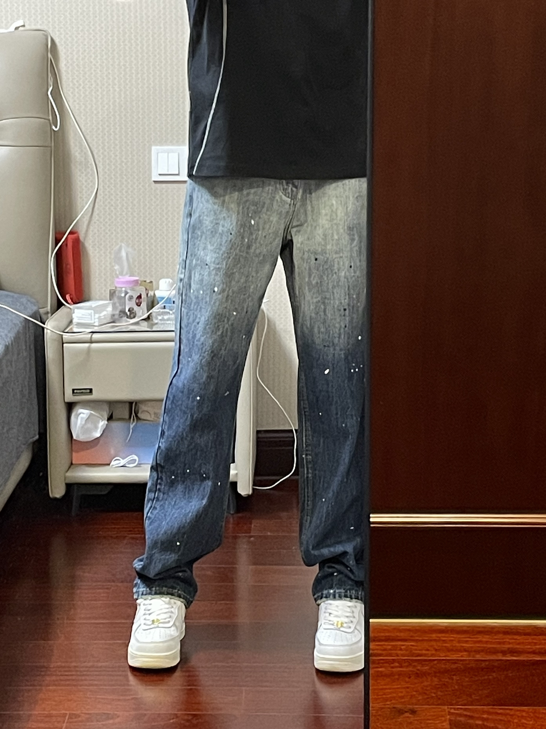啊啊啊今天这款泼墨渐变蓝牛仔裤也太帅了吧,穿着真的很好看,这个颜色真的很有设计感,直筒版型上身显高显腿长,对高个子小个子都友好,版型好有点修身显瘦,谁穿谁帅,我真的太爱这条牛仔裤了!