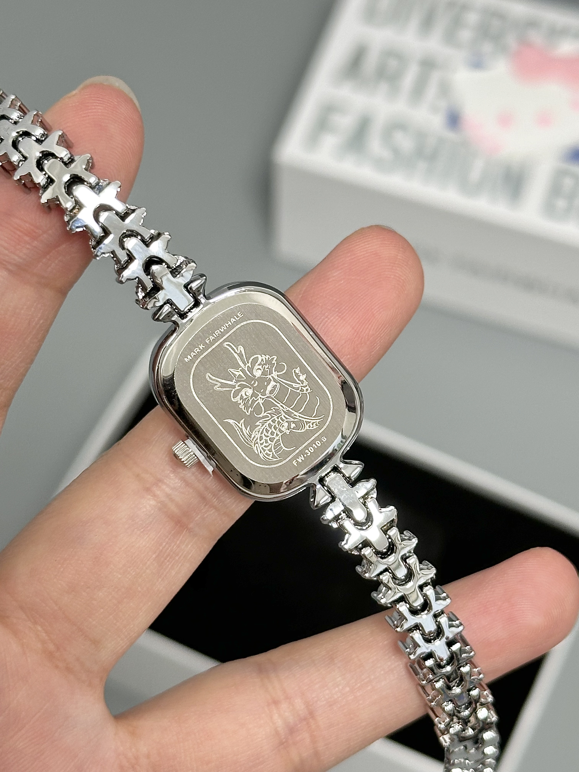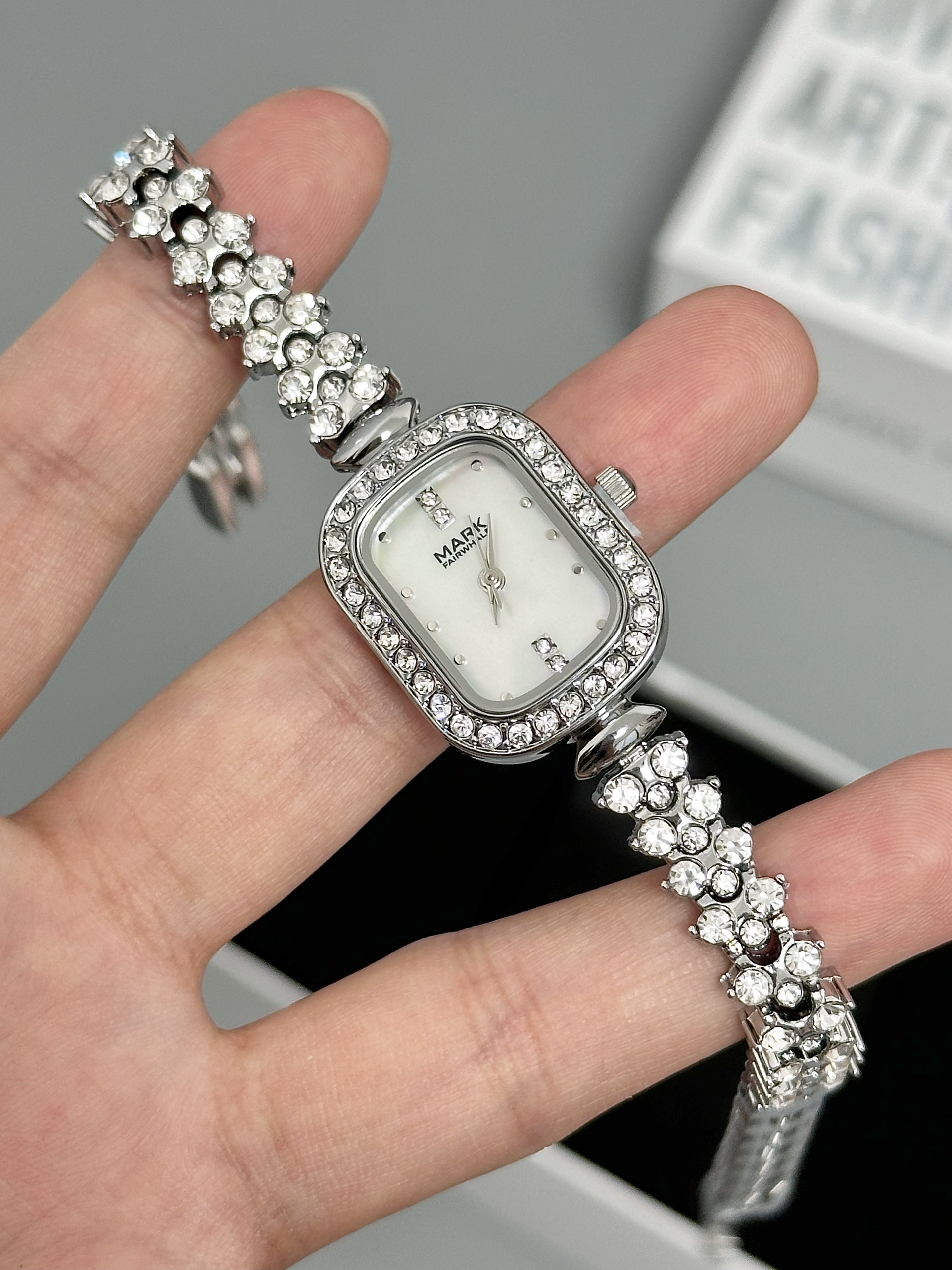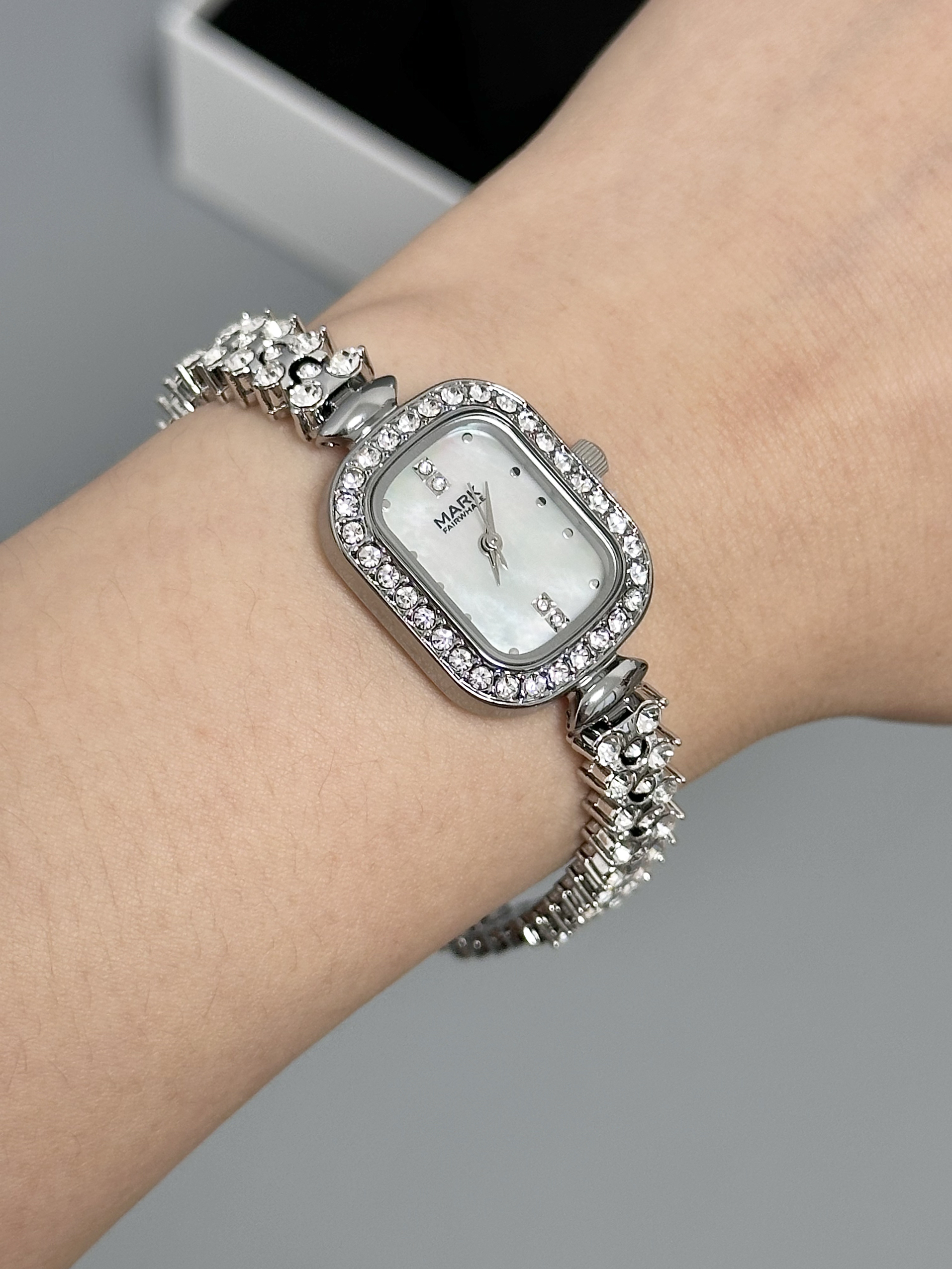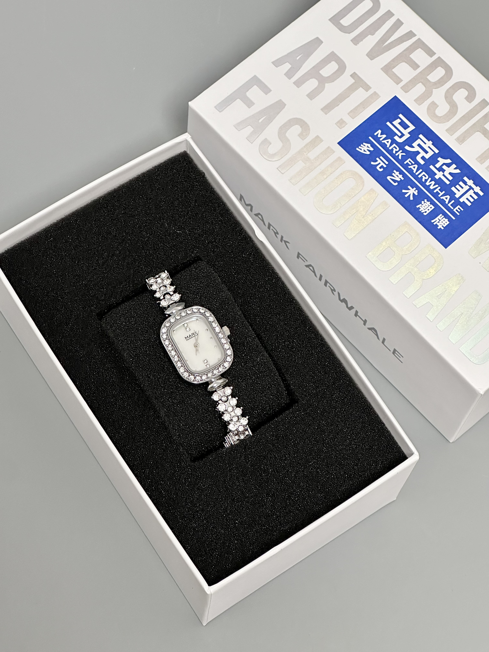本篇笔记关联了Mark Fairwhale/马克华菲 小龙女系列 防水美人鱼方形小巧时尚轻奢镶钻石英女士手表 银壳白面银钢带等商品,为用户提供真实的使用体验和购买参考。